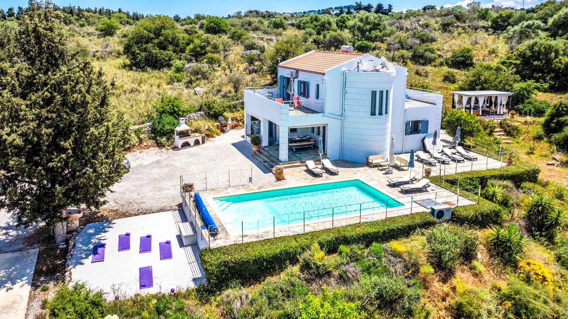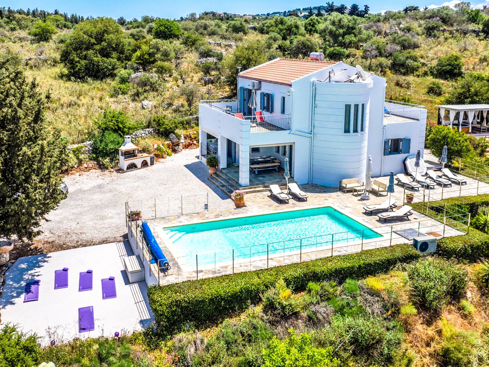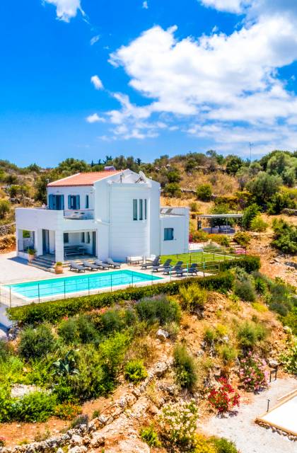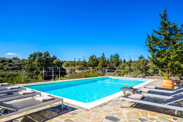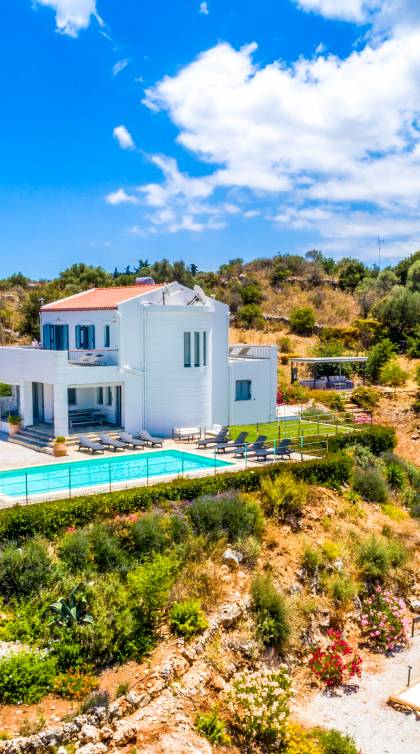Villa Amante Chania - This unique and impressive villa is situated on the hillside just 2 km outside the historic town of Vamos, in the Apokoronas area, on a 3000 sq. meters field. With its privileged location, for everyone who is seeking stunning views, high levels of privacy, and luxury, not to mention the convenience of being a short drive from the center of Chania.