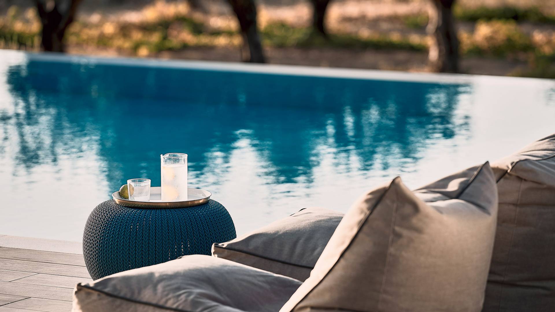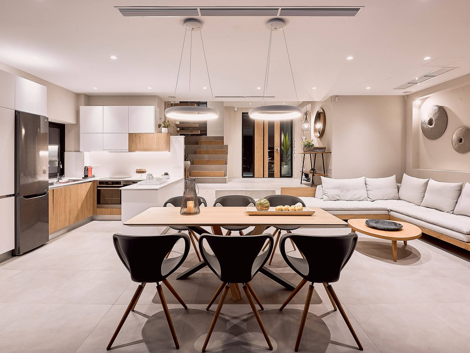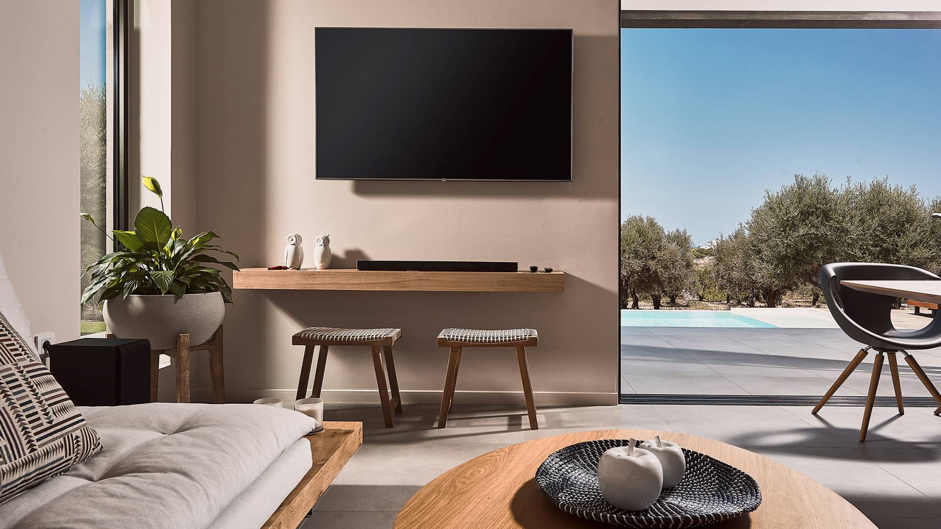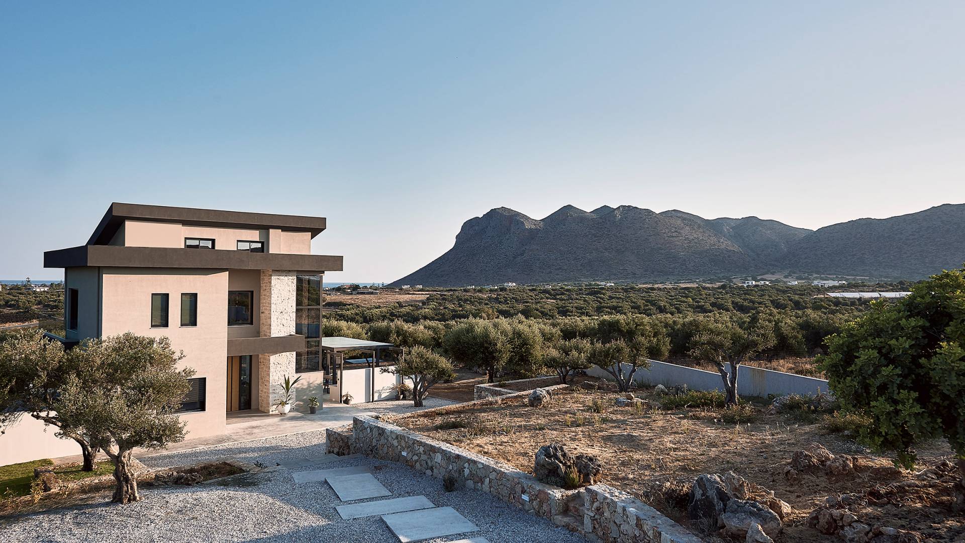 Al ingresar a la Villa, se encontrarán en un área espaciosa y diáfana que consta de la sala de estar y la cocina. La sala de estar cuenta con un cómodo sofá esquinero, un televisor de alta definición de 65 pulgadas con Netflix, cine en casa y un altavoz Bluetooth, así como un área de comedor interior, que disfruta de hermosas vistas de la naturaleza de los olivos, mientras que la cocina totalmente equipada ofrece todo lo esencial para una vida independiente. -vacaciones atendidas. Las grandes ventanas y puertas del piso al techo brindan una amplia iluminación y un fácil acceso a la terraza, así como a las áreas de la piscina y la barbacoa.