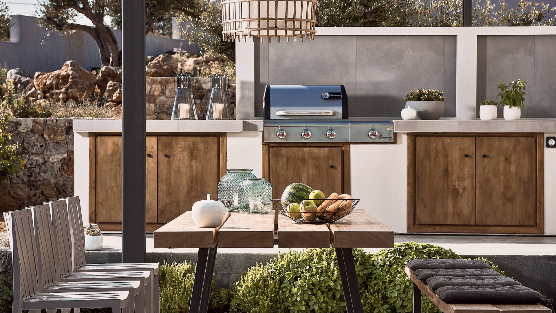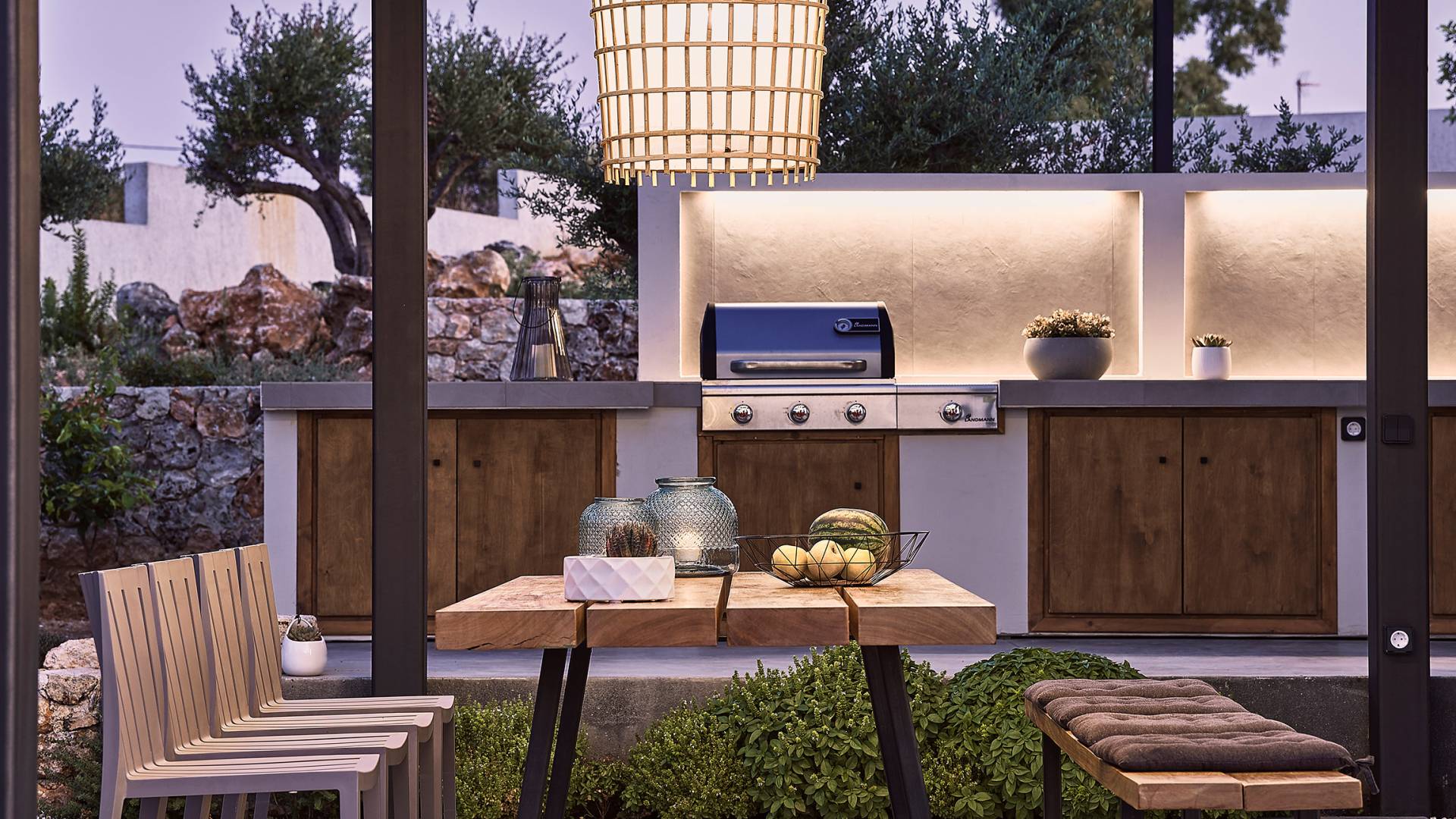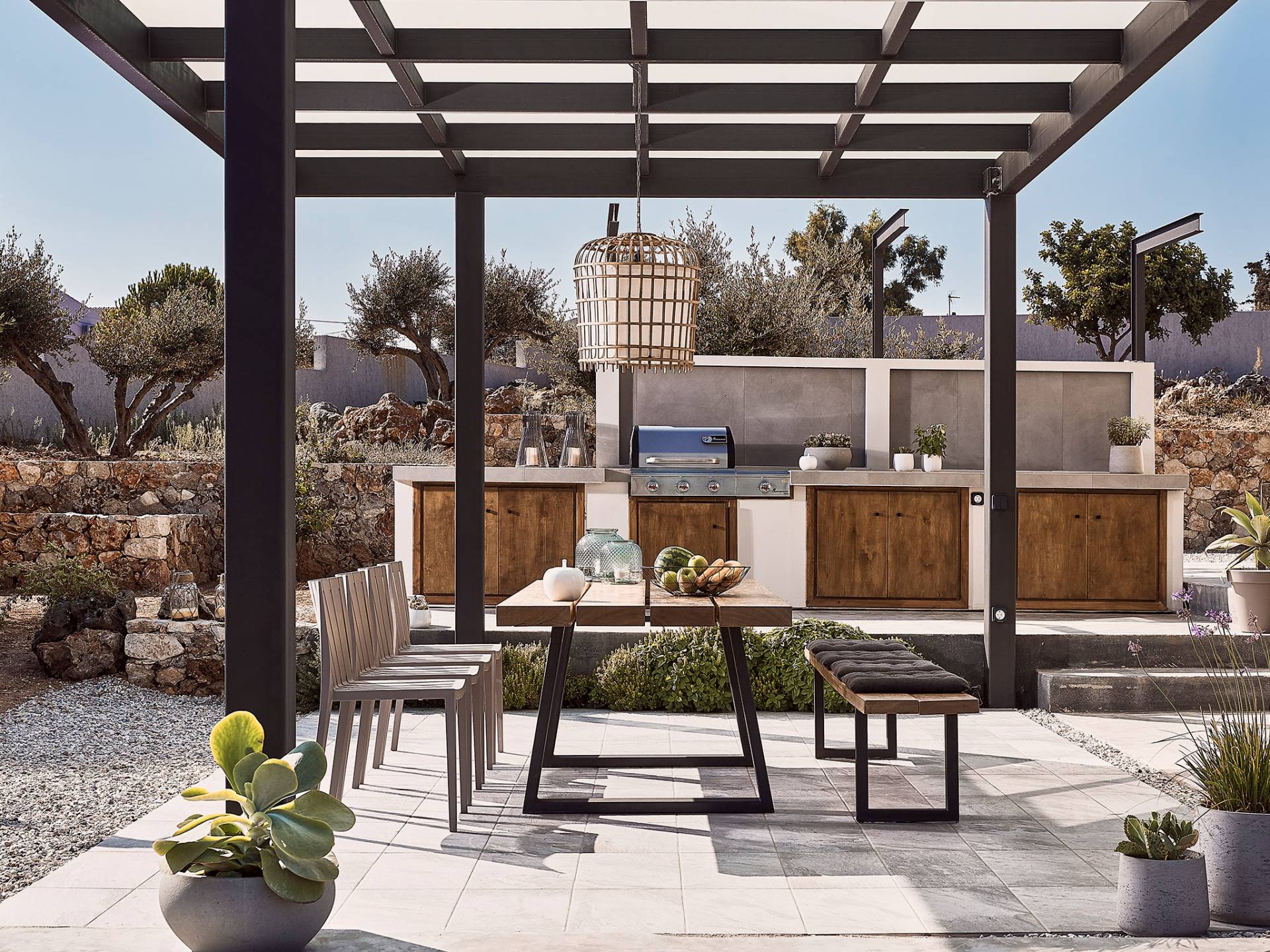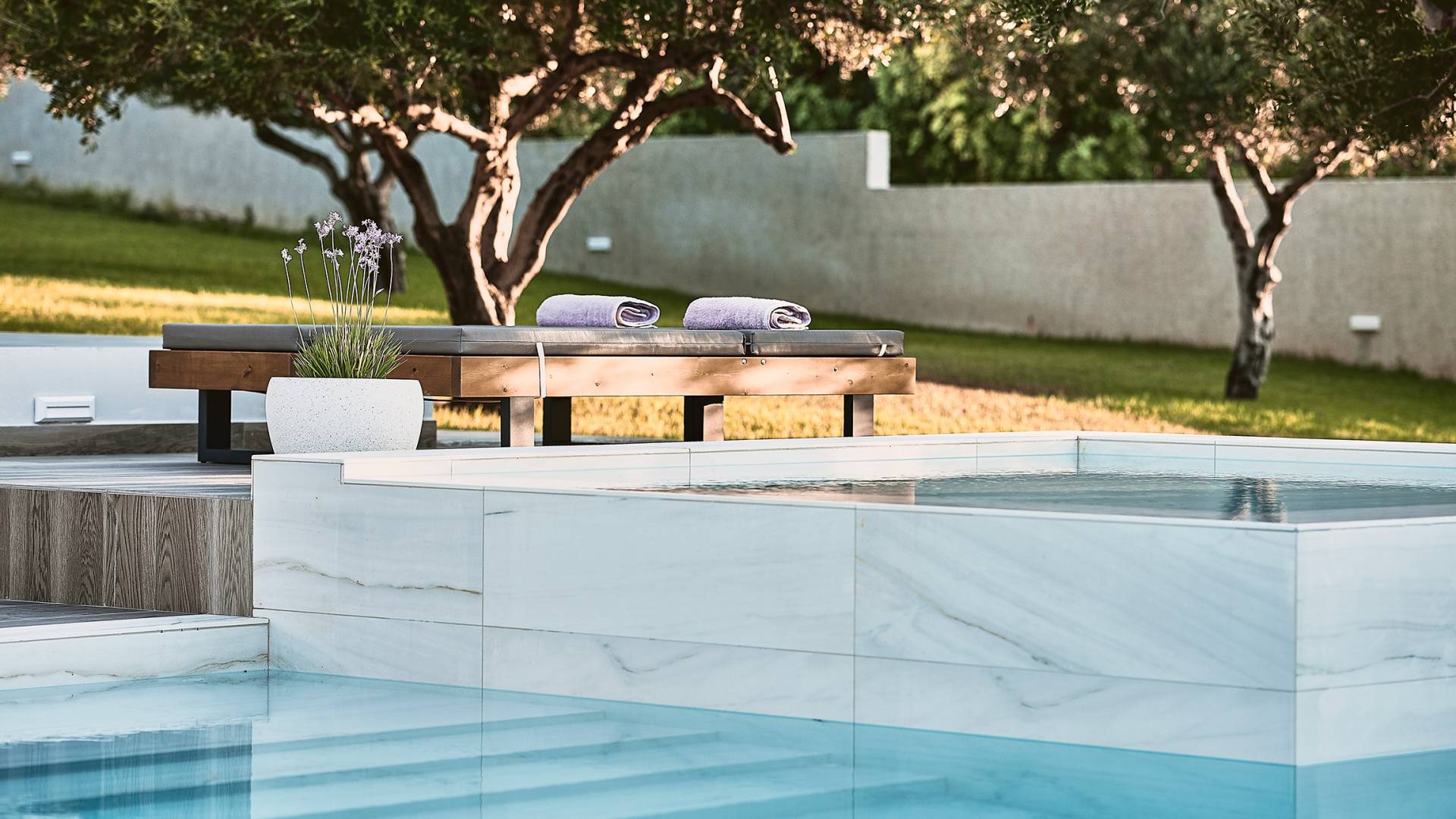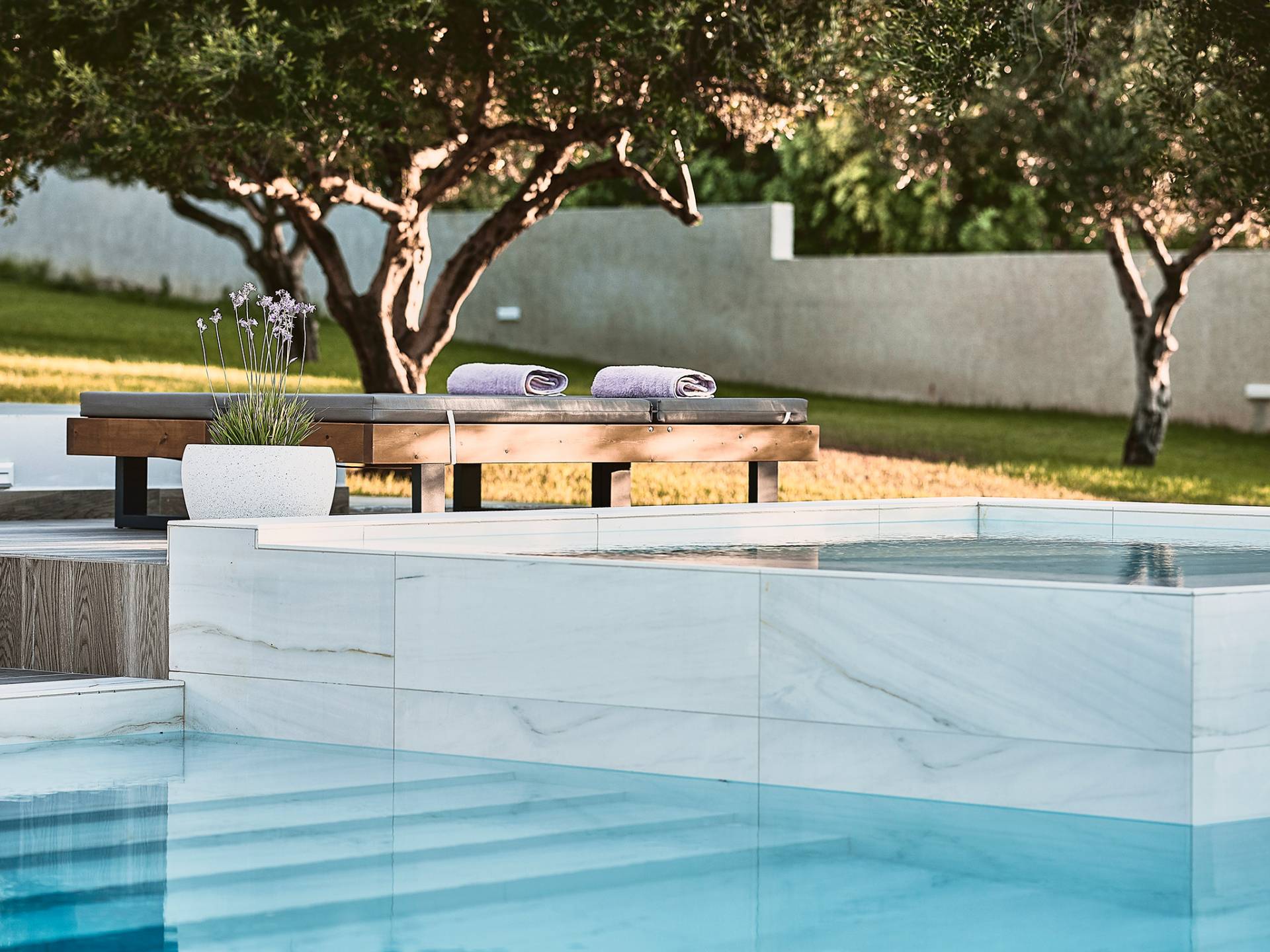 Al ingresar a la Villa, se encontrarán en un área espaciosa y diáfana que consta de la sala de estar y la cocina. La sala de estar cuenta con un cómodo sofá esquinero, un televisor de alta definición de 65 pulgadas con Netflix, cine en casa y un altavoz Bluetooth, así como un área de comedor interior, que disfruta de hermosas vistas de la naturaleza de los olivos, mientras que la cocina totalmente equipada ofrece todo lo esencial para una vida independiente. -vacaciones atendidas. Las grandes ventanas y puertas del piso al techo brindan una amplia iluminación y un fácil acceso a la terraza, así como a las áreas de la piscina y la barbacoa.