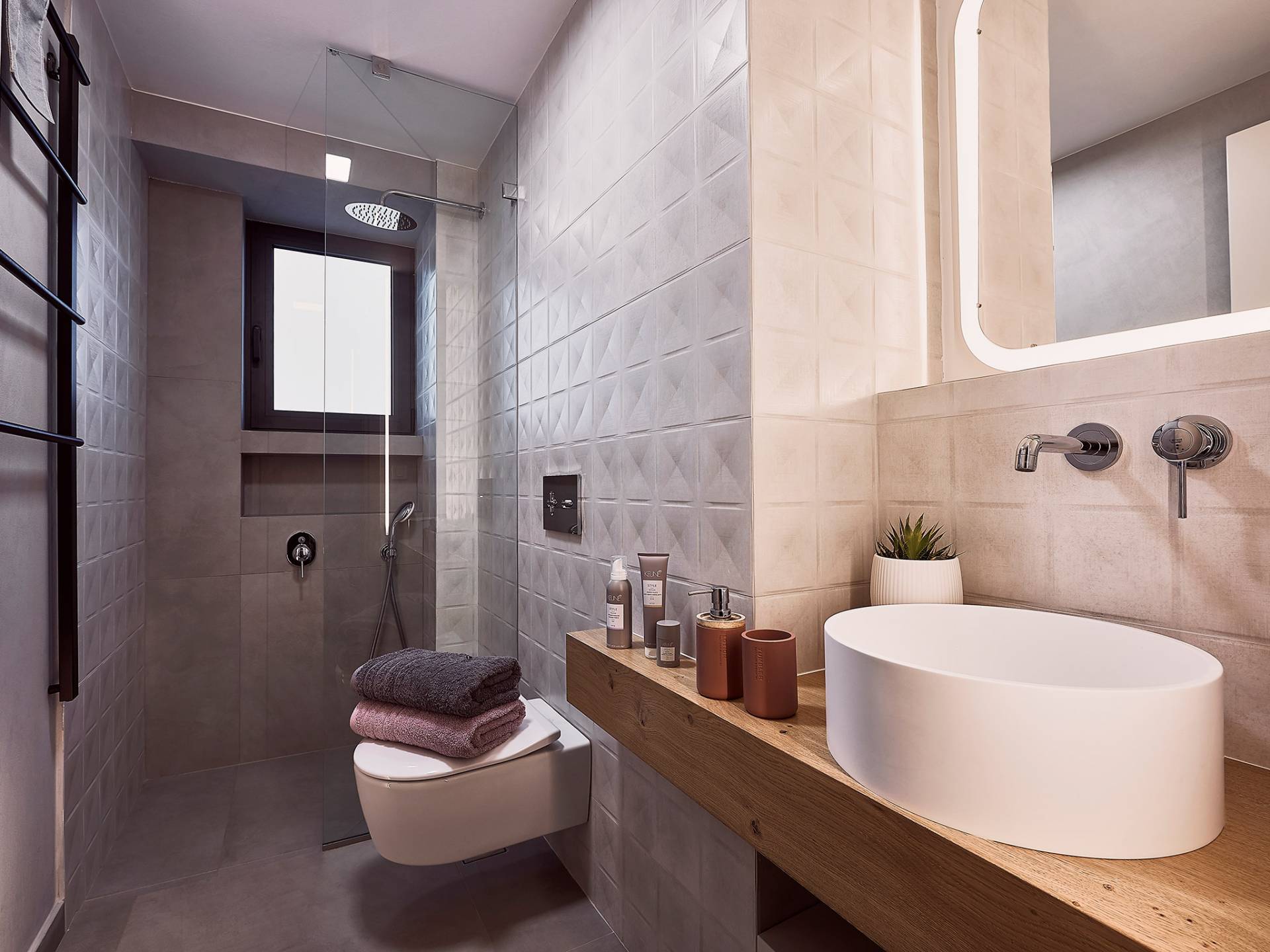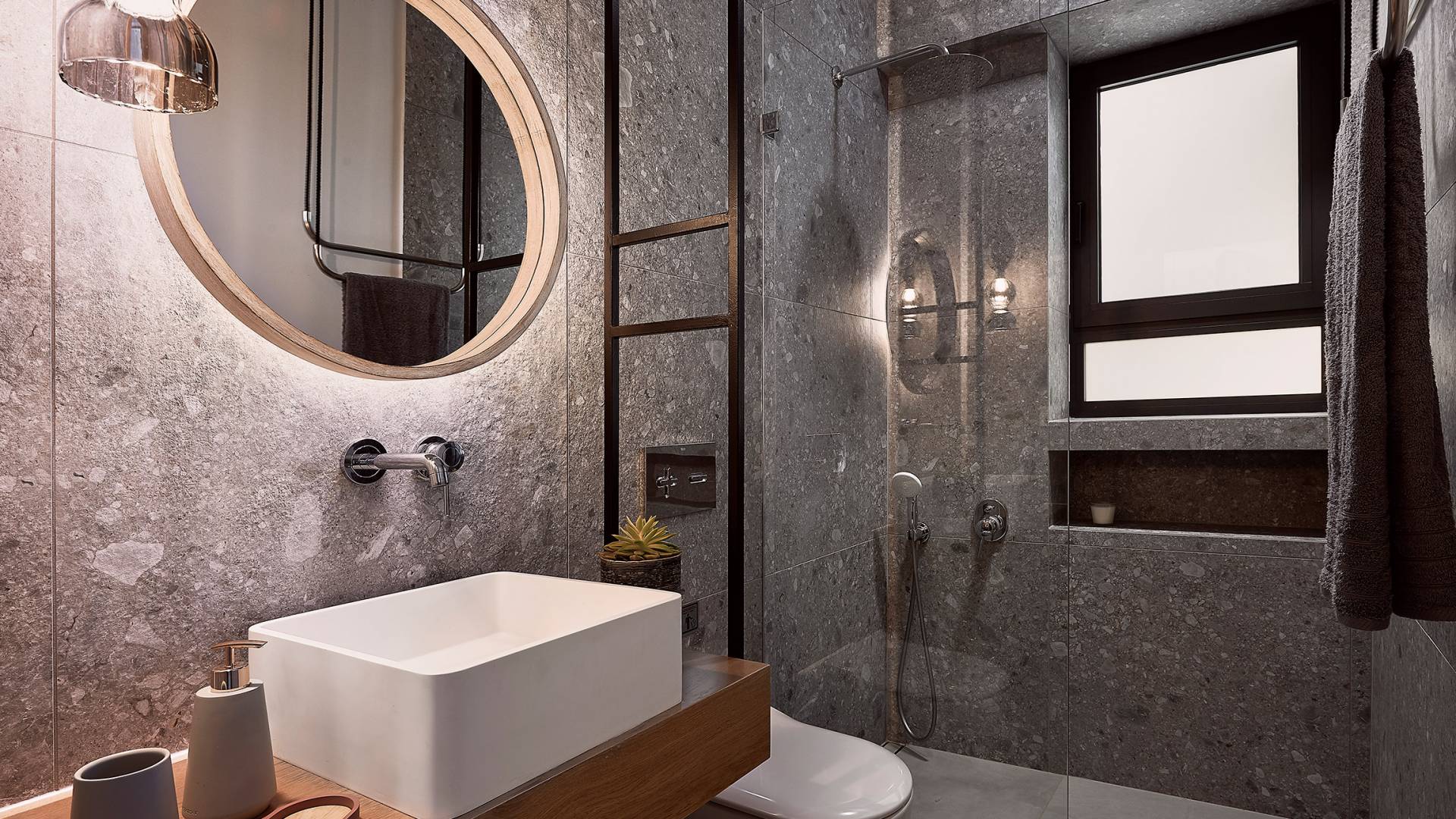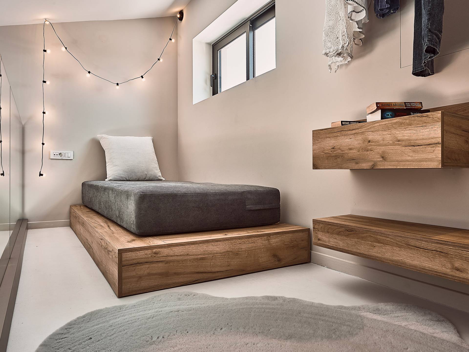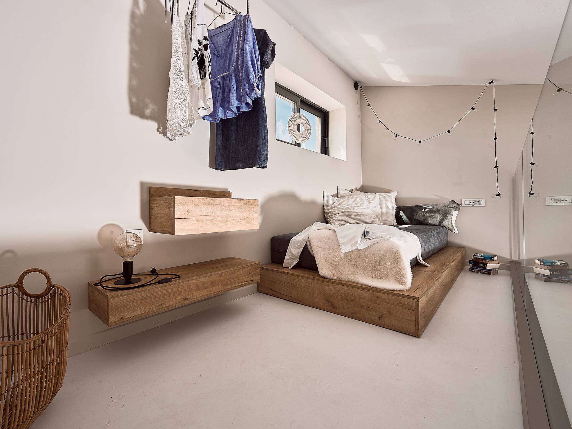Los otros dos dormitorios cuentan con dos camas individuales cada uno (0,90 X 2,00), que también se pueden configurar como una cama doble tamaño king (1,80 X 2,00) a pedido. Ambas cuentan con baño privado con cabina de ducha y escaleras que conducen a un altillo, con una cama supletoria (1,00 X 2,00), por lo que son ideales para parejas con niños. Además, estos dos dormitorios ofrecen acceso al balcón, con maravillosas vistas de los olivares de los alrededores, el mar y la ciudad de Chania.