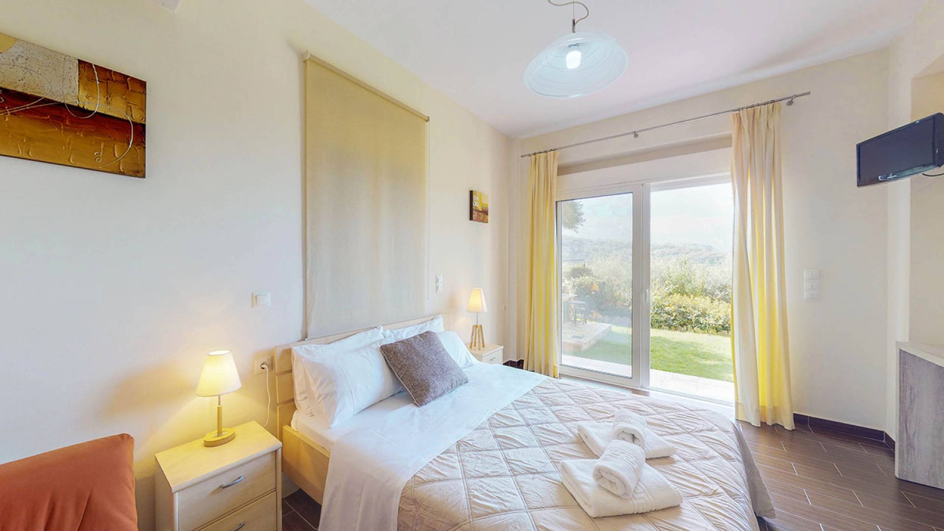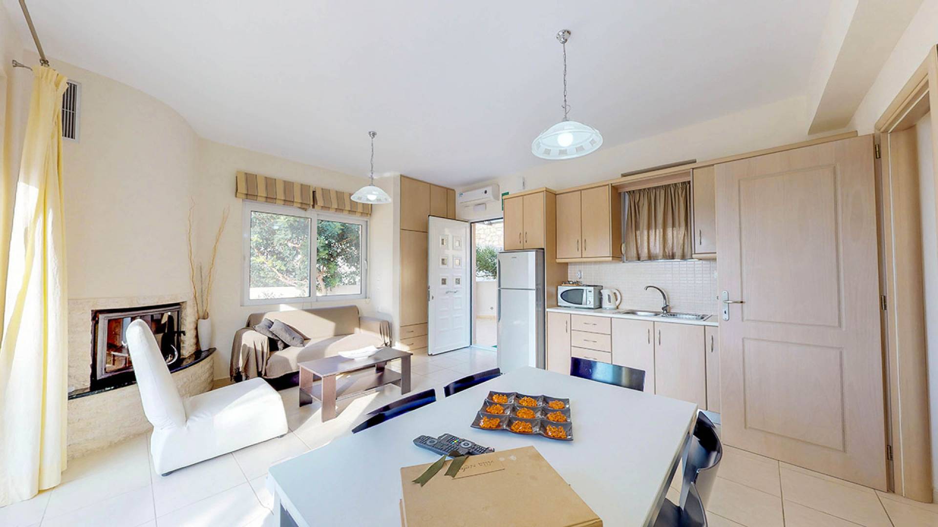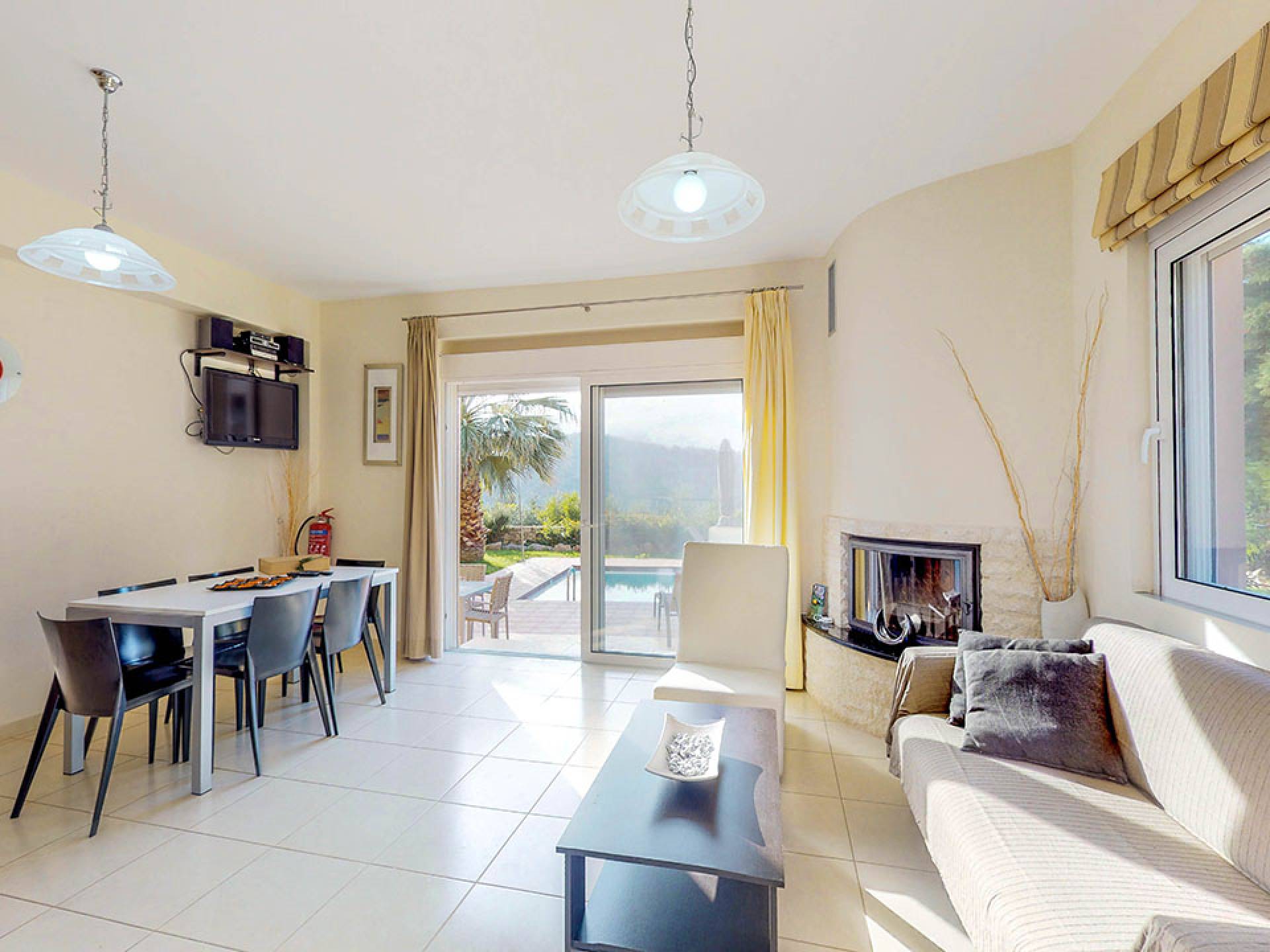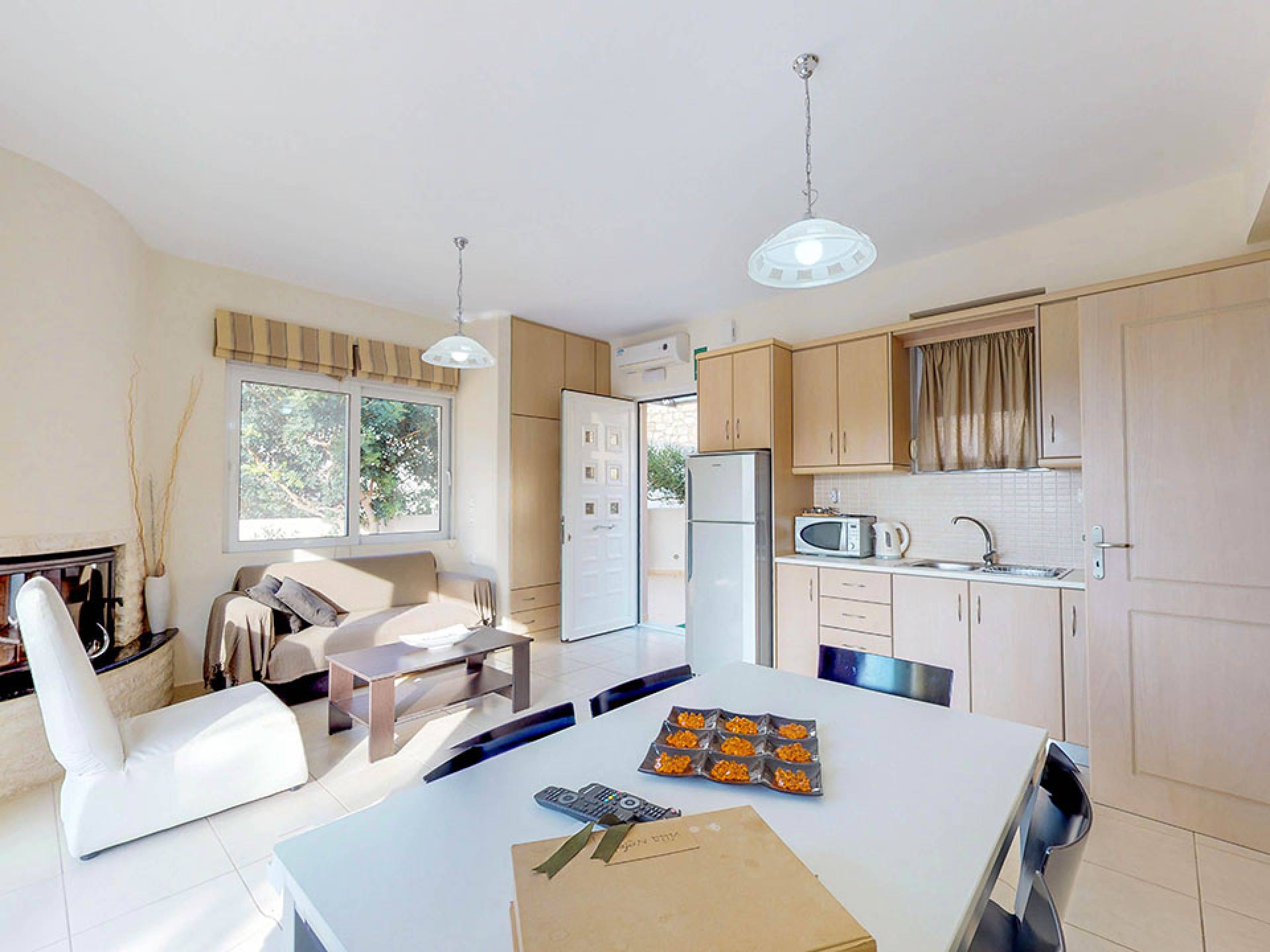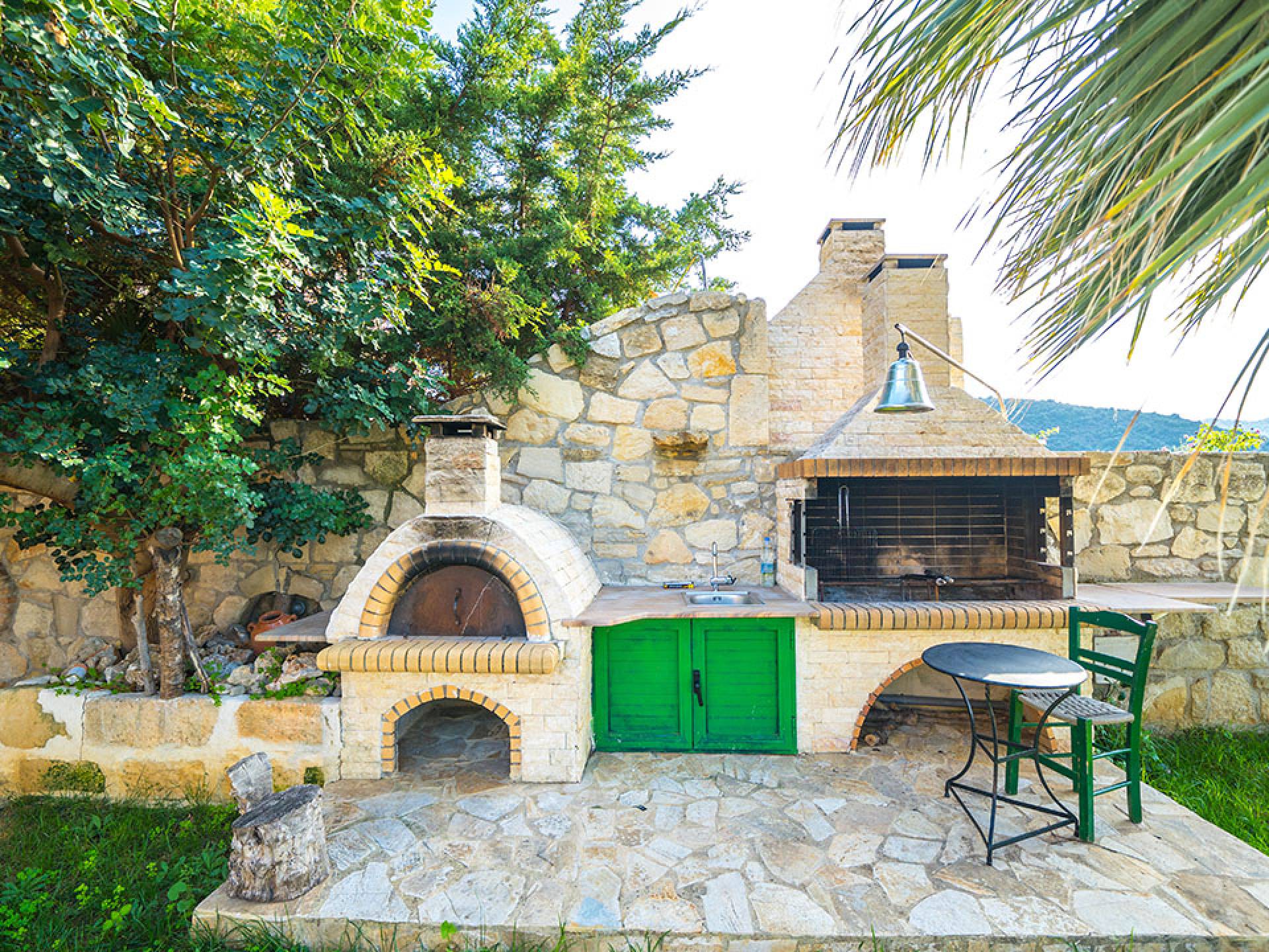 La villa Nefeli cuenta con dos dormitorios, un baño y un aseo, sala, cocina totalmente equipada, comedor, balcón con vista al mar, amplio jardín con parrilla, piscina privada, piscina para niños, estacionamiento privado, muebles de exterior y más . En el primer piso, hay un dormitorio con una cama doble y un sofá cama, un baño completo y dos balcones con vista al mar. En la planta baja se encuentran el salón, la cocina, un dormitorio con dos camas individuales y el aseo. La villa tiene un amplio jardín con muebles de exterior, una gran piscina privada para niños y una barbacoa.
