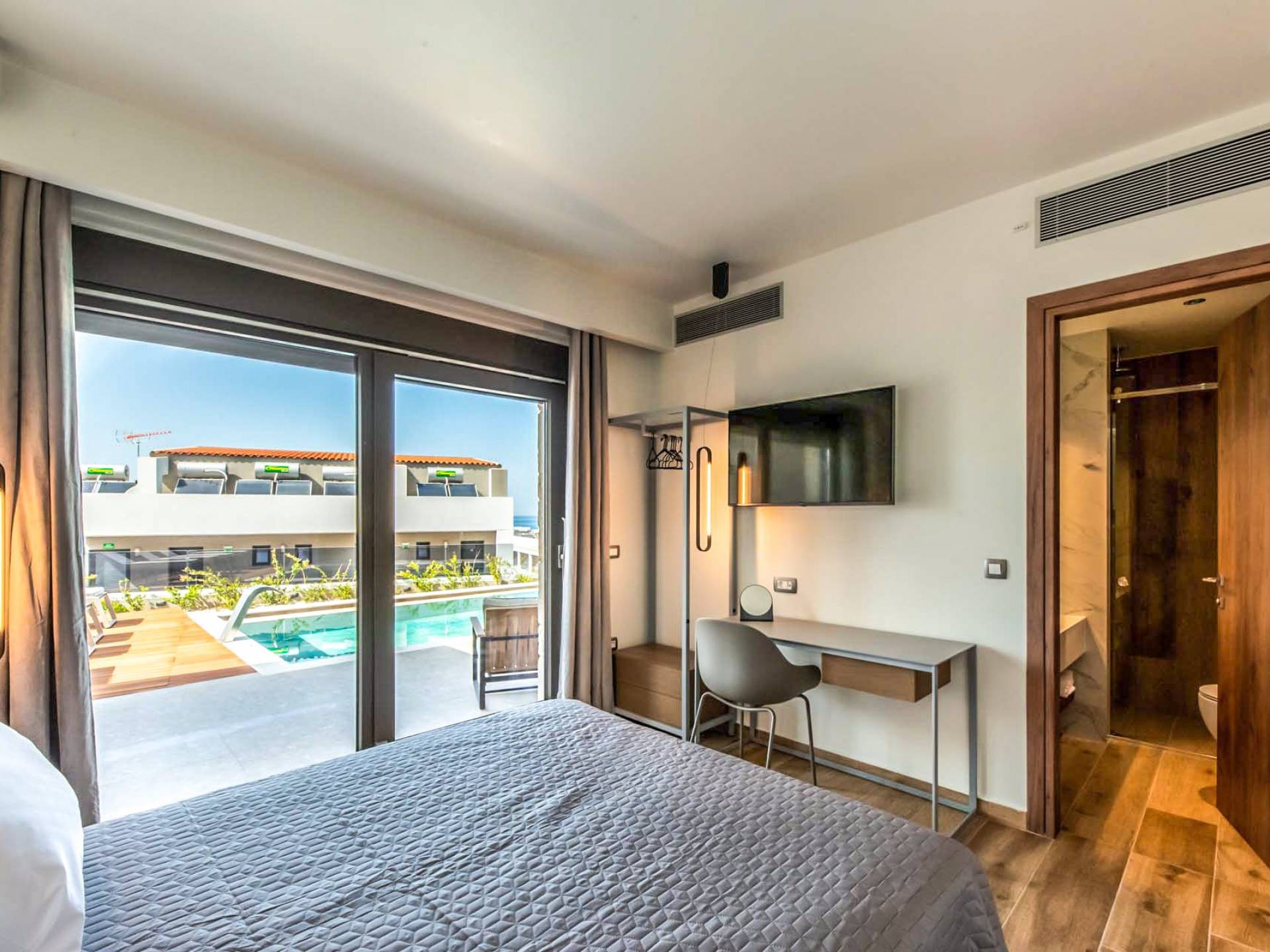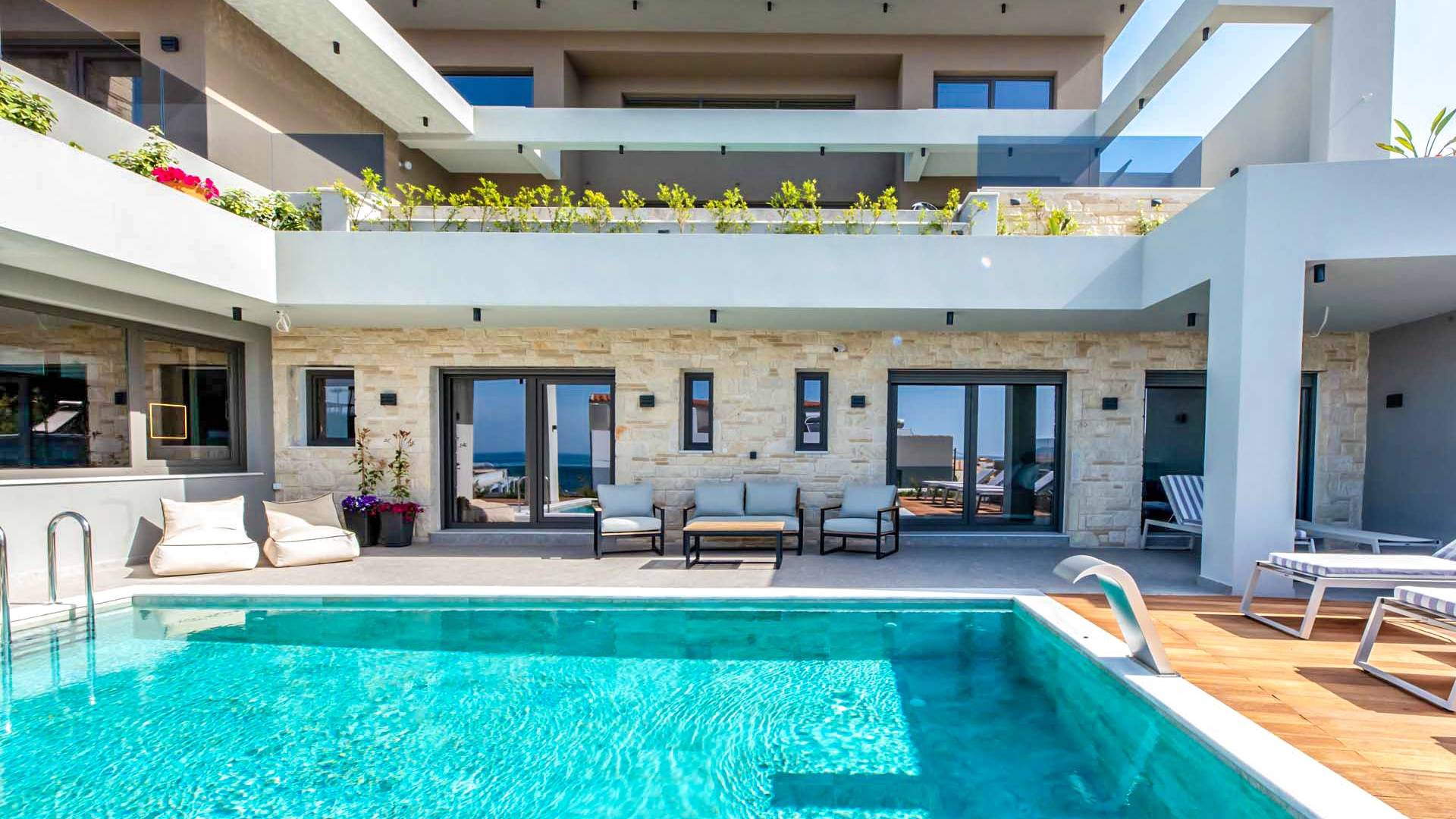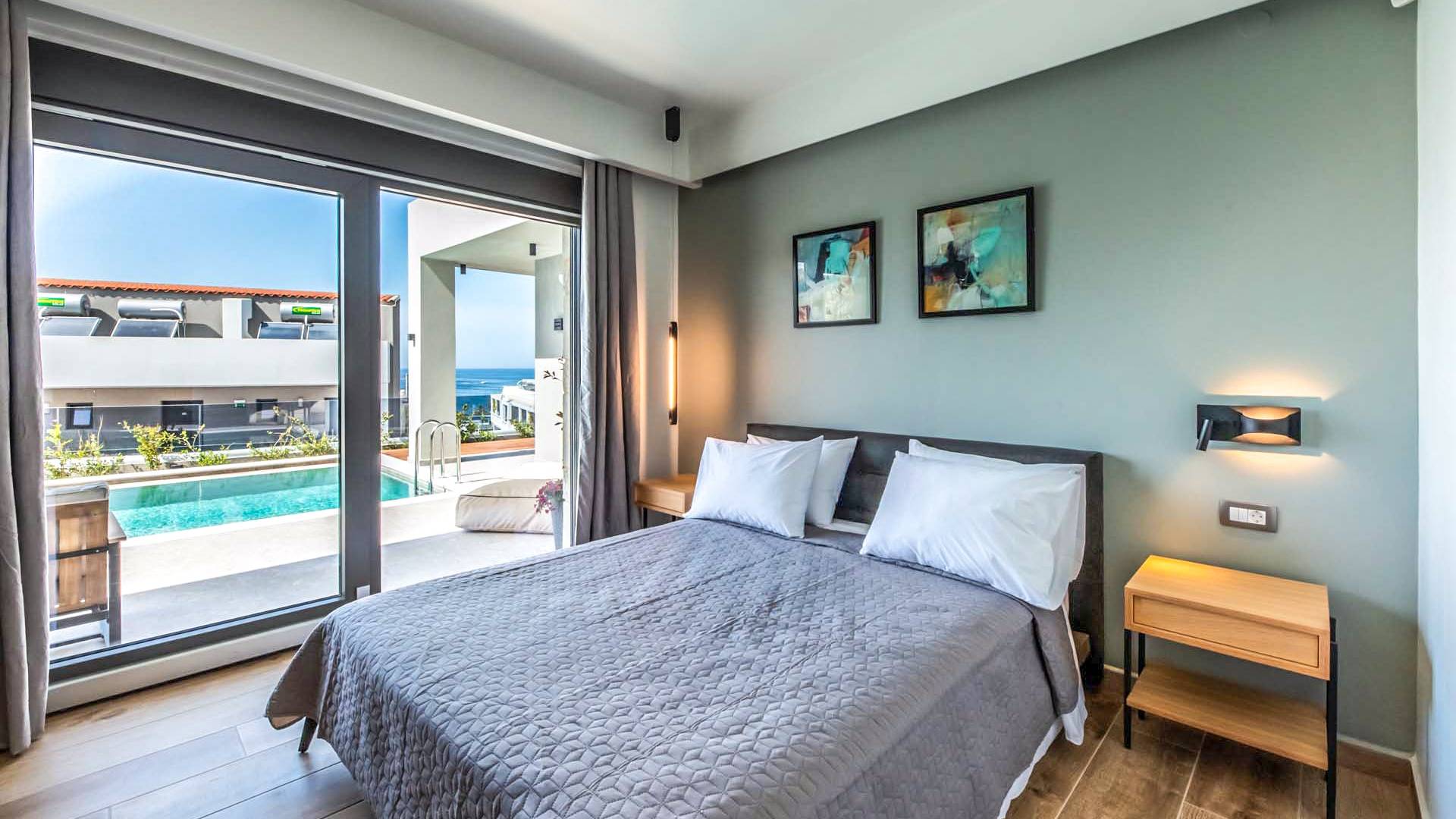 Alojarse en una villa en Kalamaki significa despertar con el suave sonido del mar y disfrutar el café de la mañana con vistas panorámicas al mar Egeo. Con piscinas privadas, terrazas soleadas y la libertad de ir a tu propio ritmo, tu villa se convierte en una parte esencial de la experiencia, no solo un lugar donde dormir.