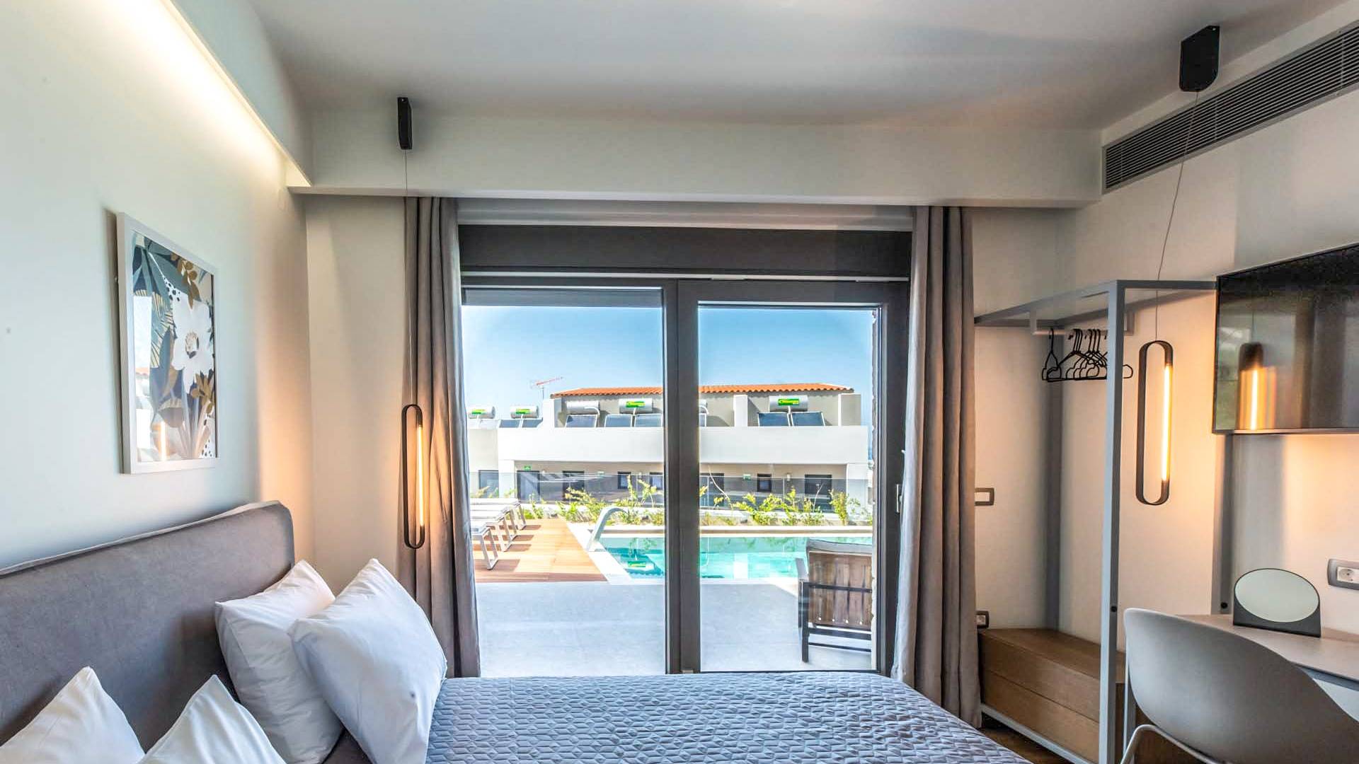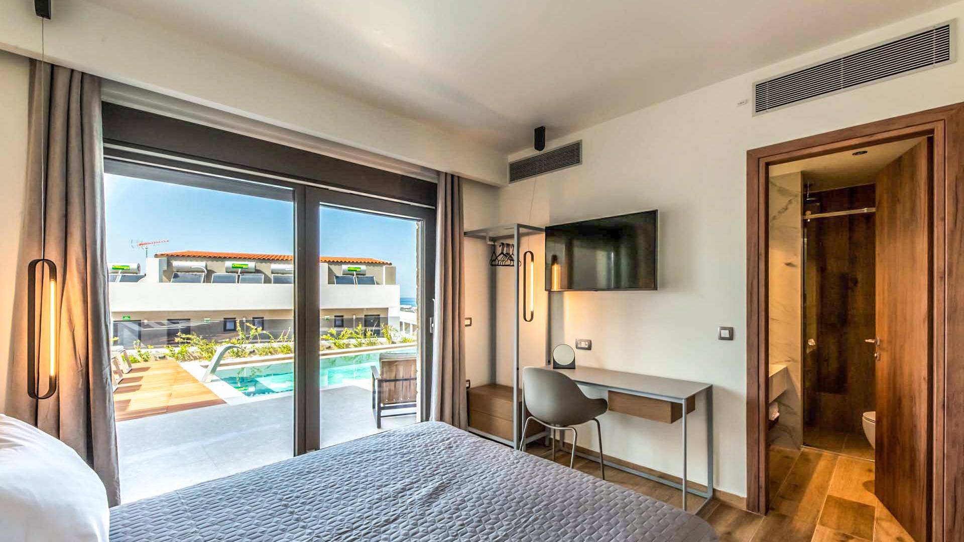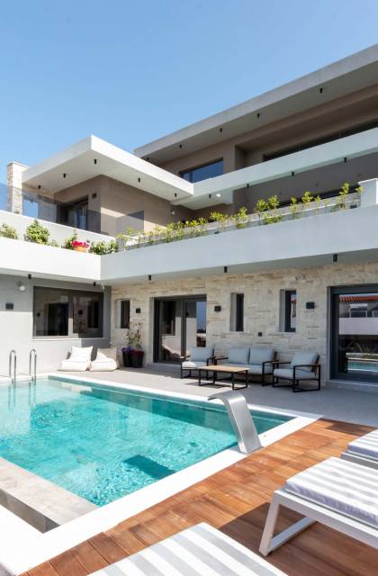Alojarse en una villa en Kalamaki significa despertar con el suave sonido del mar y disfrutar el café de la mañana con vistas panorámicas al mar Egeo. Con piscinas privadas, terrazas soleadas y la libertad de ir a tu propio ritmo, tu villa se convierte en una parte esencial de la experiencia, no solo un lugar donde dormir.