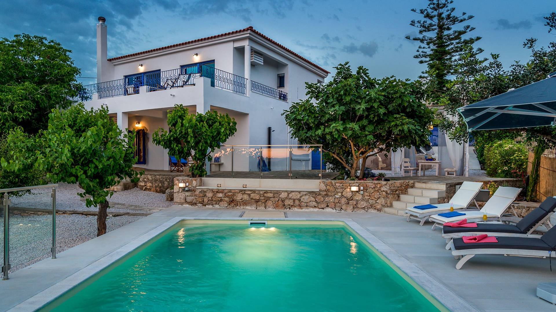 Villa Myrina Chania es una villa de lujo en alquiler con 5 dormitorios y una piscina privada. Villa Myrina está ubicada en Plaka y ofrece ese algo extra especial que busca en una villa de vacaciones y es ideal para aquellos que desean vivir una verdadera experiencia cretense.