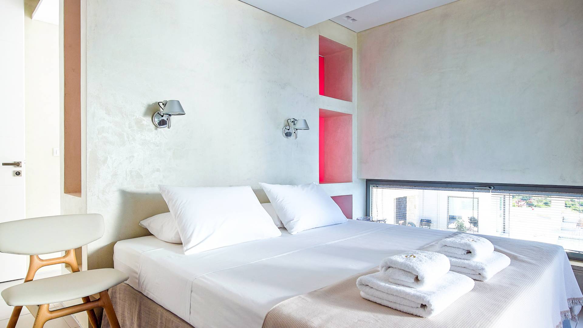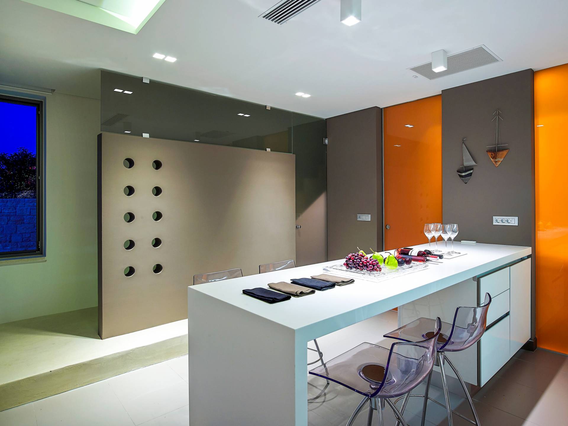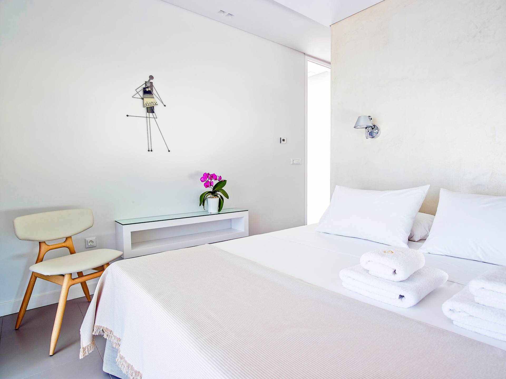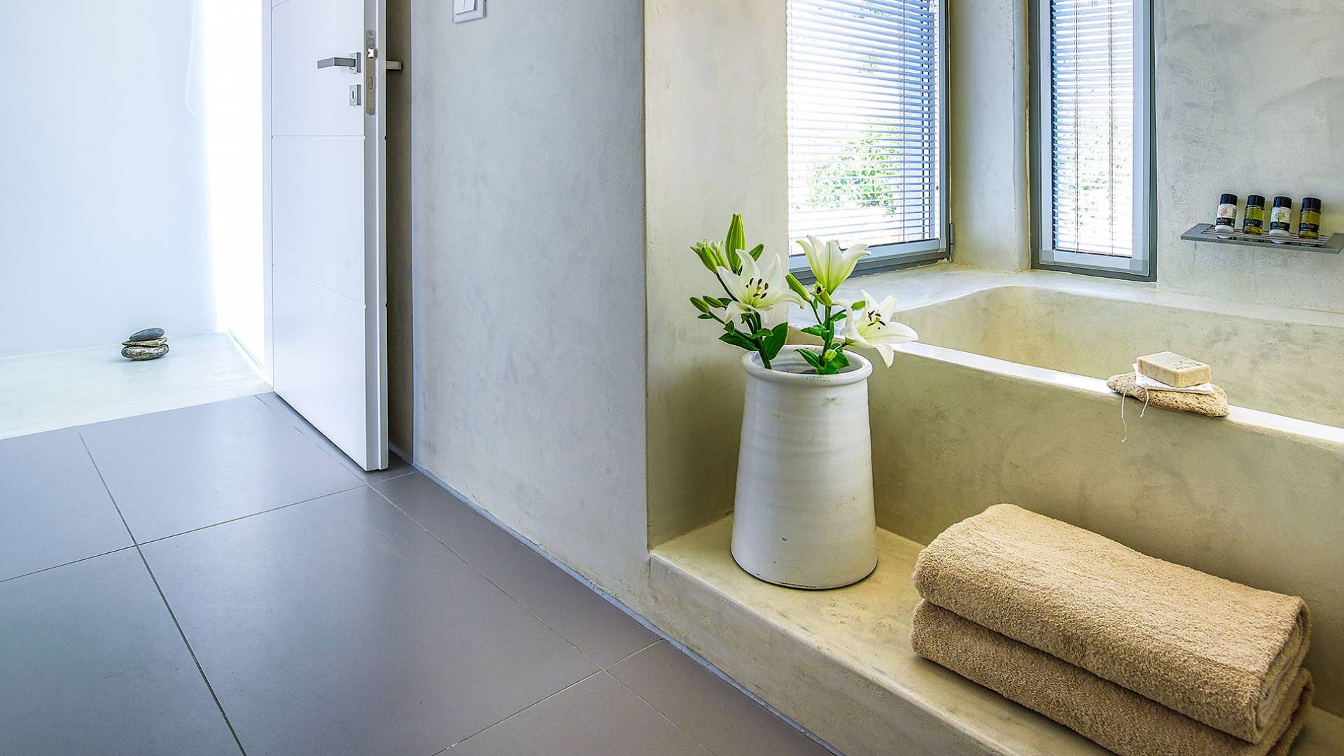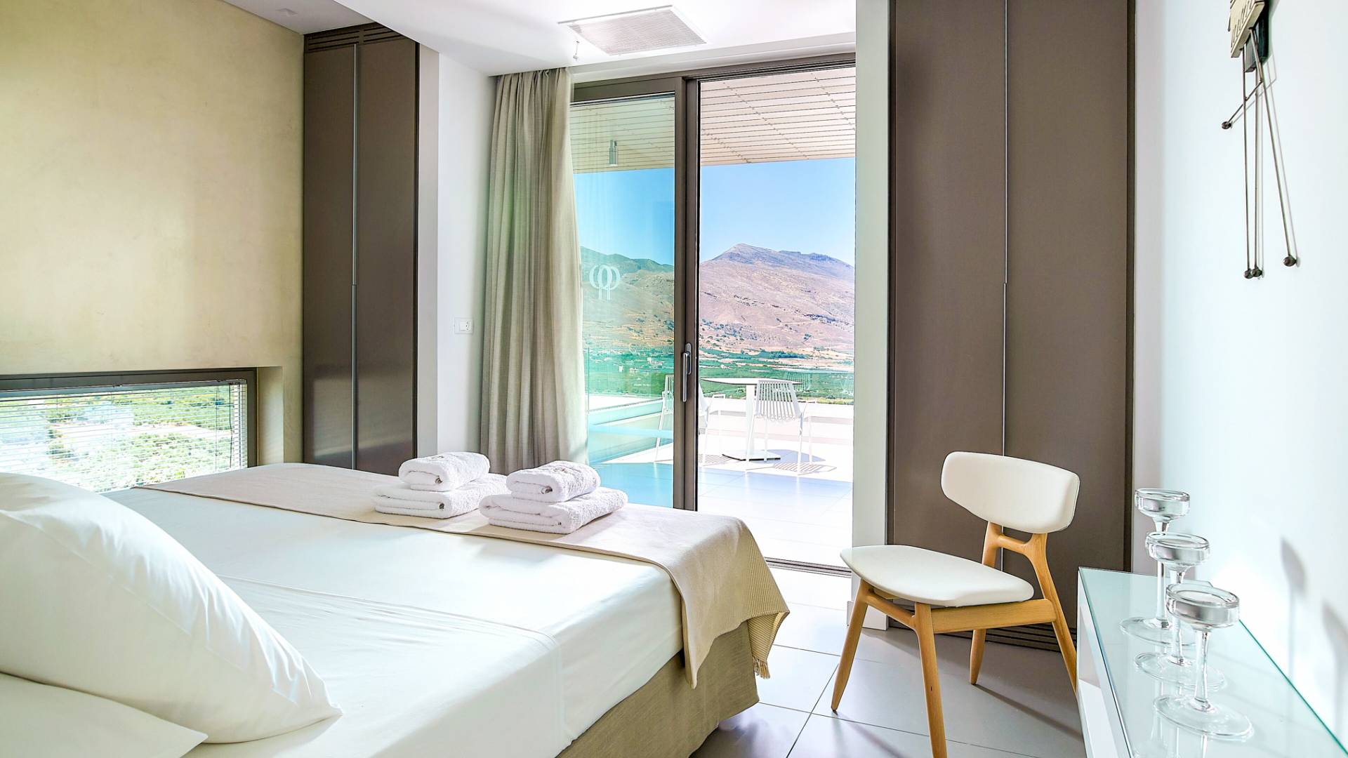 Villa Theseus Kissamos is split over two floors, with many windows that let in the sunlight offering panoramic views from any room. The ground floor opens up to a spacious, modern living room with an open plan kitchen equipped with state of the art appliances and including stylish Corian work surfaces and an informal dining area. The ground floor double/twin bedroom offers the luxury of an en-suite bathroom with a walk-in Spa shower. A staircase leads to a first-floor master bedroom with a large front-facing private balcony which offers an unblocked view of the Aegean Sea and an en-suite open-plan bathroom with a charming garden view.