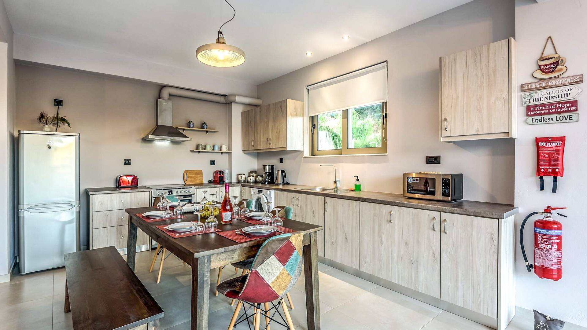 Las amenidades de la villa de lujo cubren hasta al visitante más exigente, contando con todas las comodidades que uno esperaría encontrar en una lujosa residencia moderna. Desde la cocina totalmente equipada hasta las habitaciones amplias y climatizadas, todo ha sido diseñado y creado para ofrecerle una experiencia de estancia inolvidable. ¡Deja las puertas y ventanas abiertas para disfrutar del glorioso sol mediterráneo que inunda la casa y la magia de la hermosa puesta de sol!