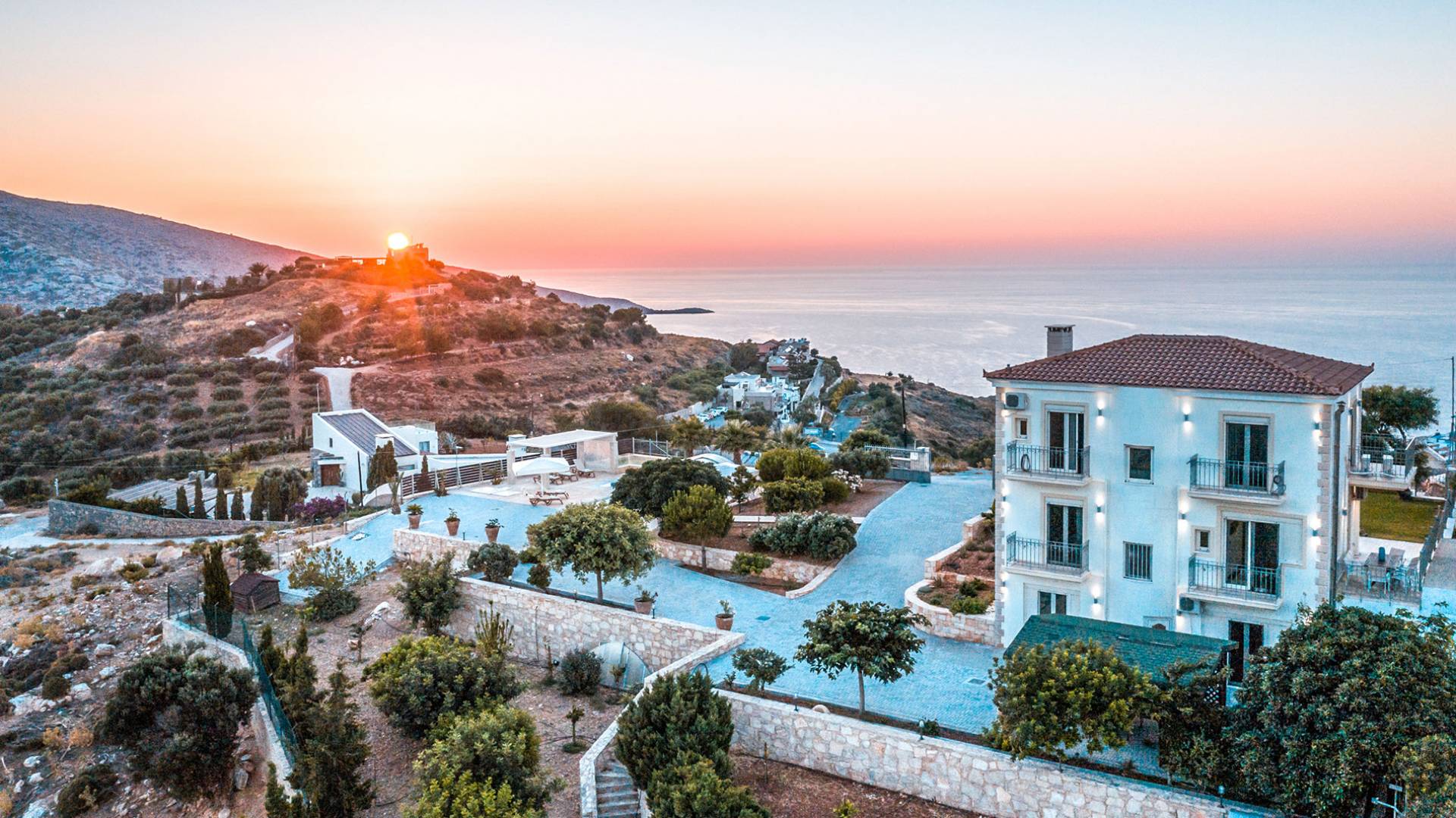 Las villas en Agia Pelagia van desde acogedoras casas para dos personas hasta propiedades espaciosas para familias numerosas, con jardines privados, piscinas, vistas al mar y servicios exclusivos como chef privado, masajes o asistencia personalizada.