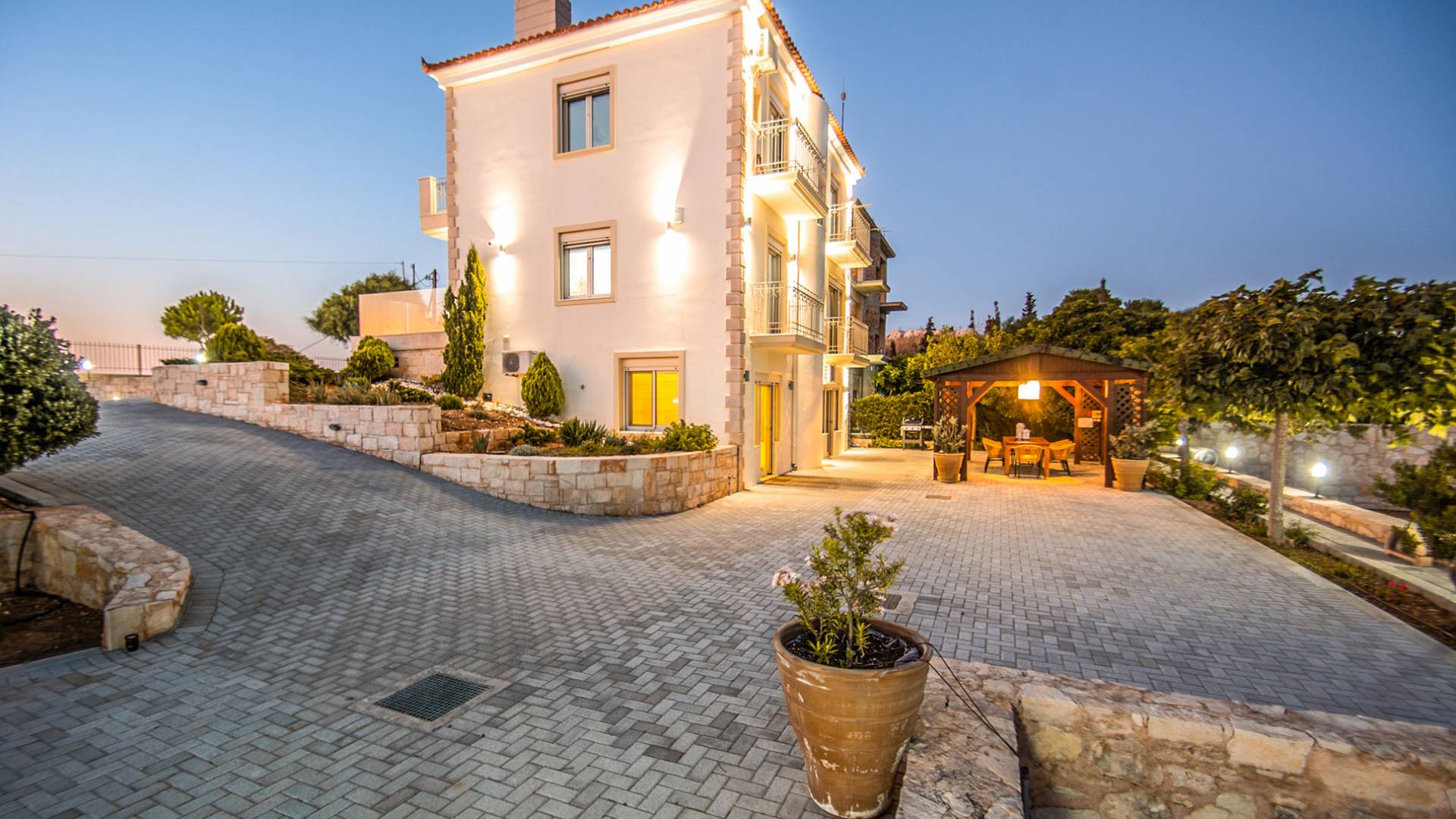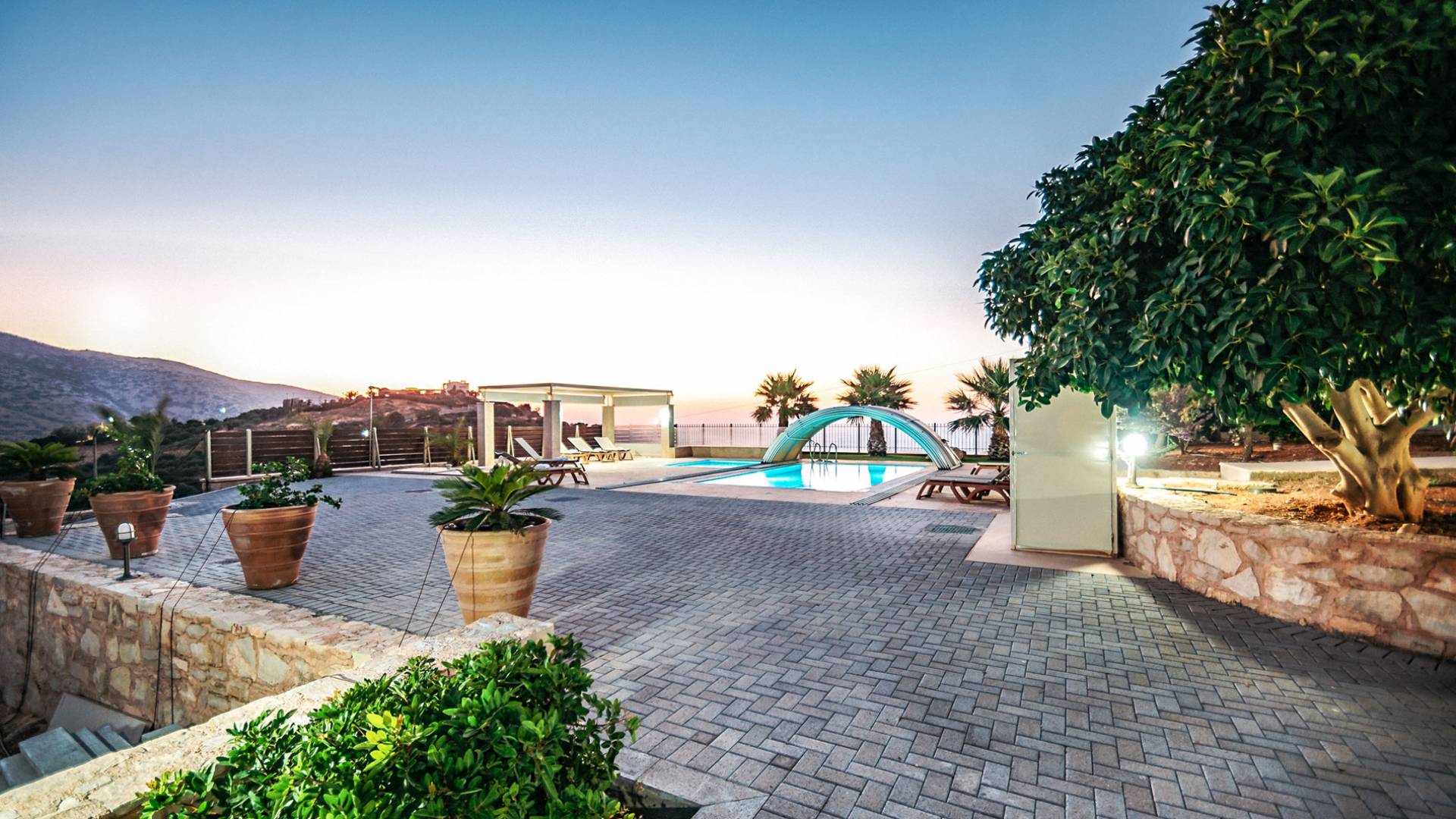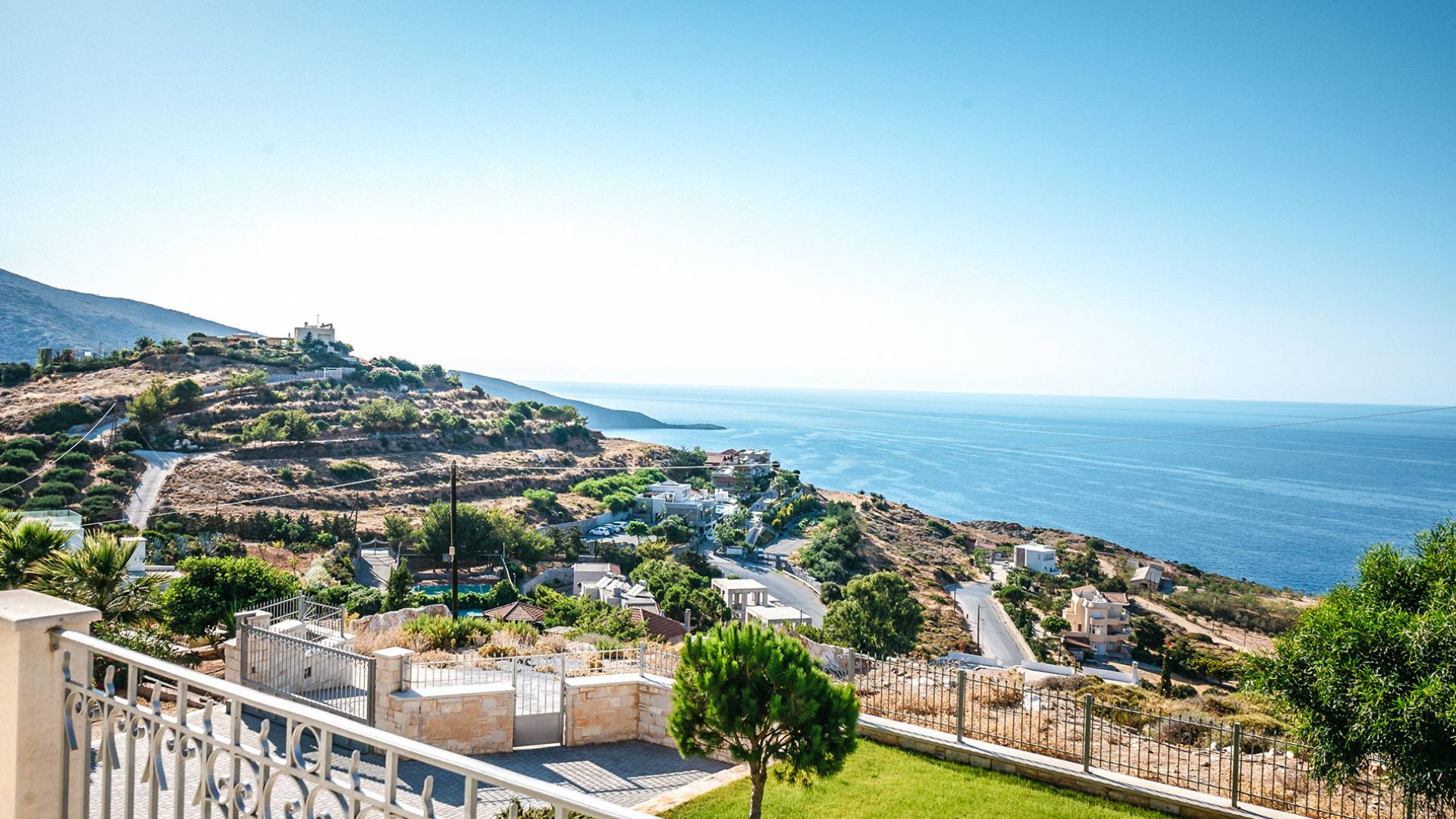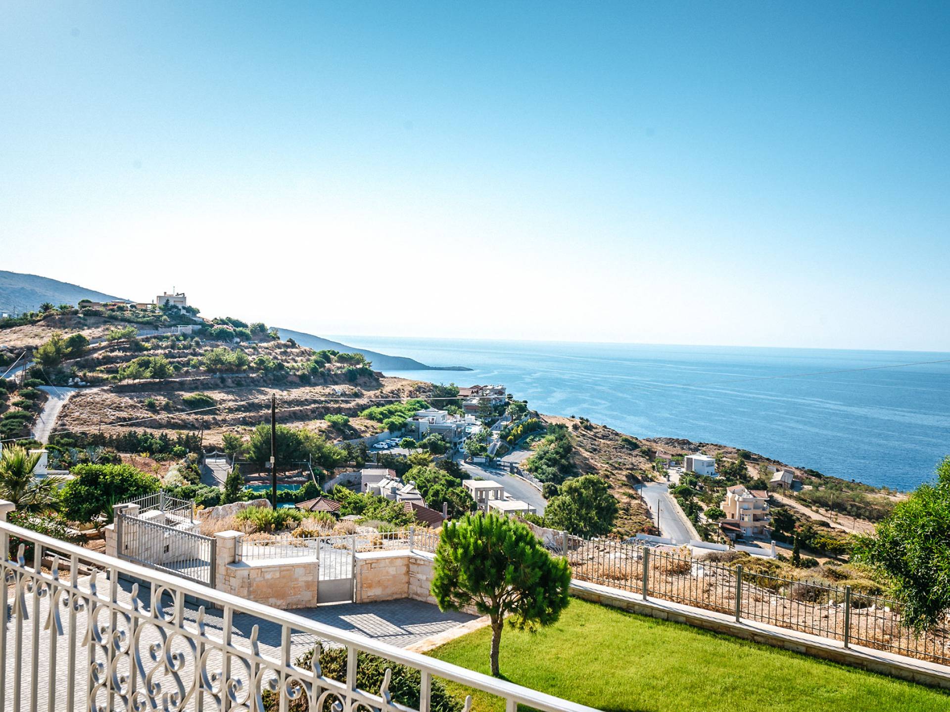 Aria Villa Crete se encuentra en la cima de una hermosa colina en Agia Pelagia, Heraklion, Creta. La residencia se extiende sobre tres niveles con una superficie total de 246m2. Está situado en una propiedad de 2500 m2 sobre la bahía de Agia Pelagia y ofrece total privacidad con espectaculares vistas a la montaña y al mar.