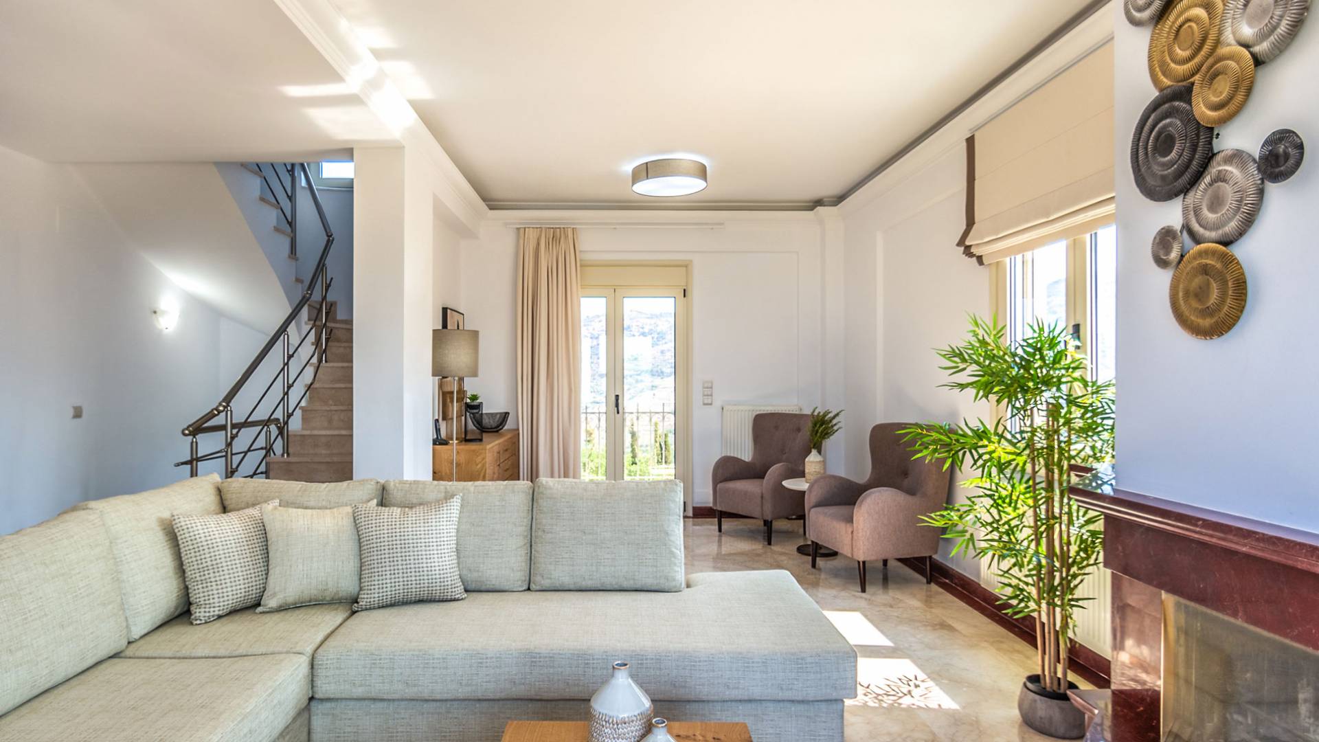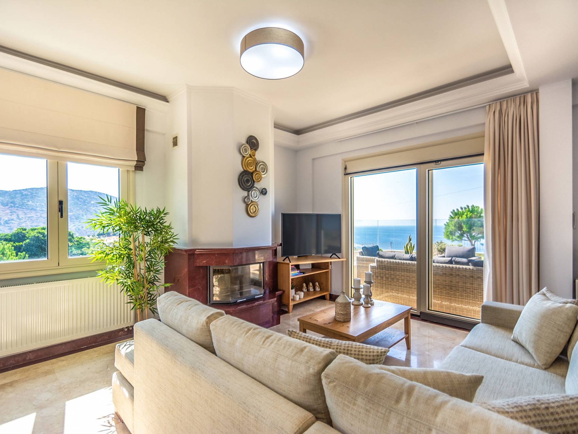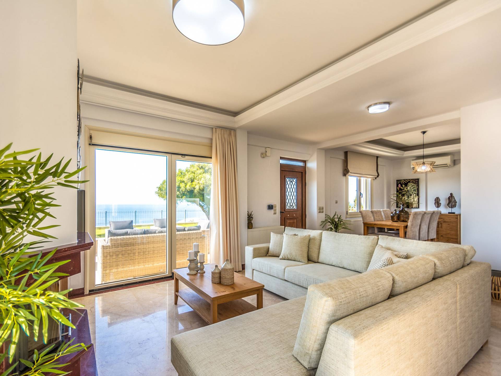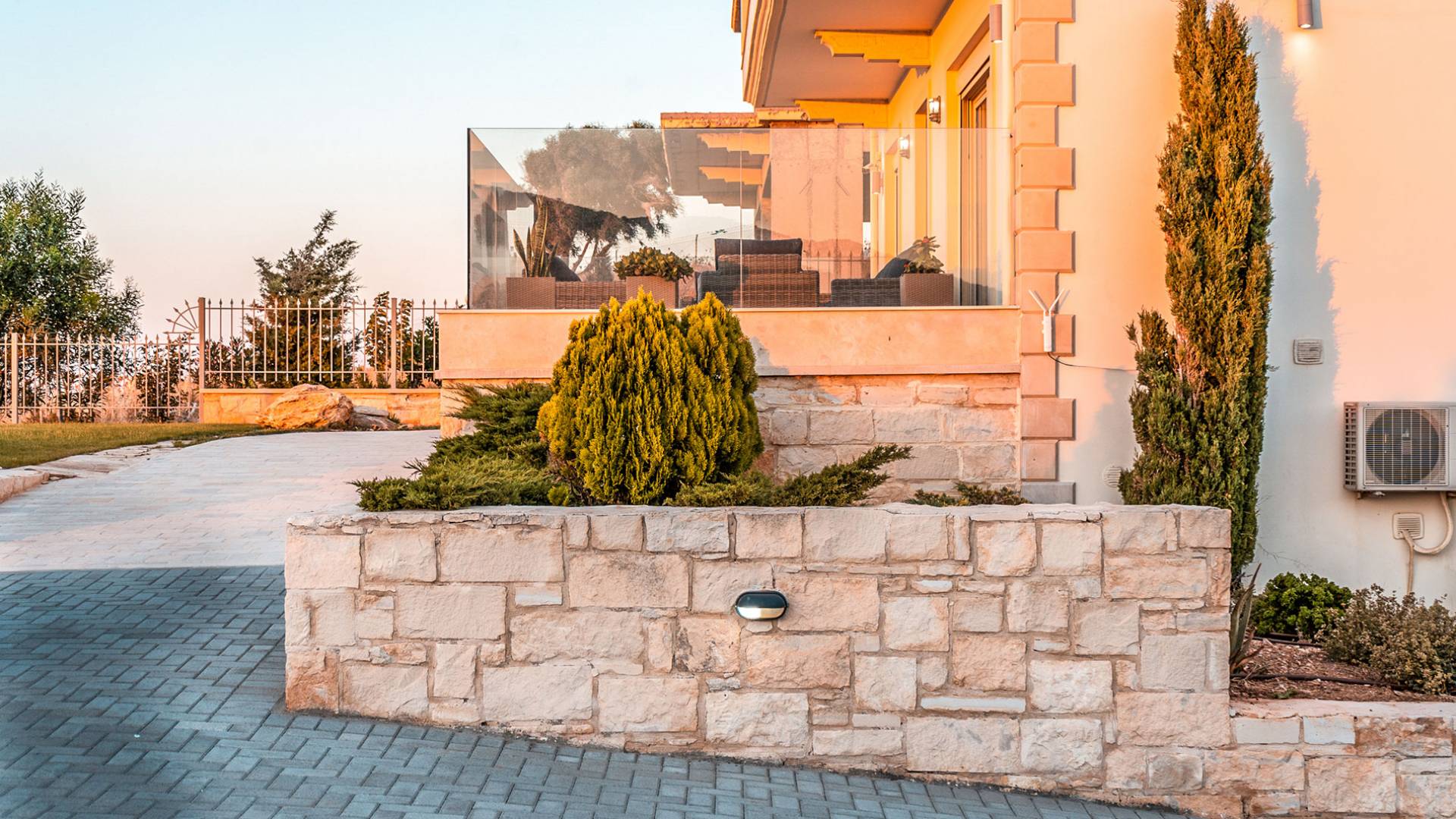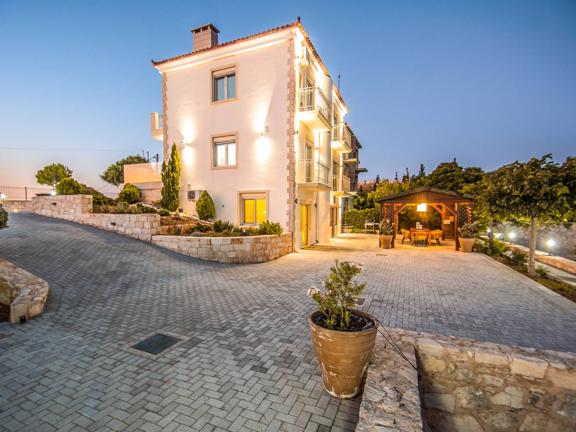 Aria Villa Crete se encuentra en la cima de una hermosa colina en Agia Pelagia, Heraklion, Creta. La residencia se extiende sobre tres niveles con una superficie total de 246m2. Está situado en una propiedad de 2500 m2 sobre la bahía de Agia Pelagia y ofrece total privacidad con espectaculares vistas a la montaña y al mar.