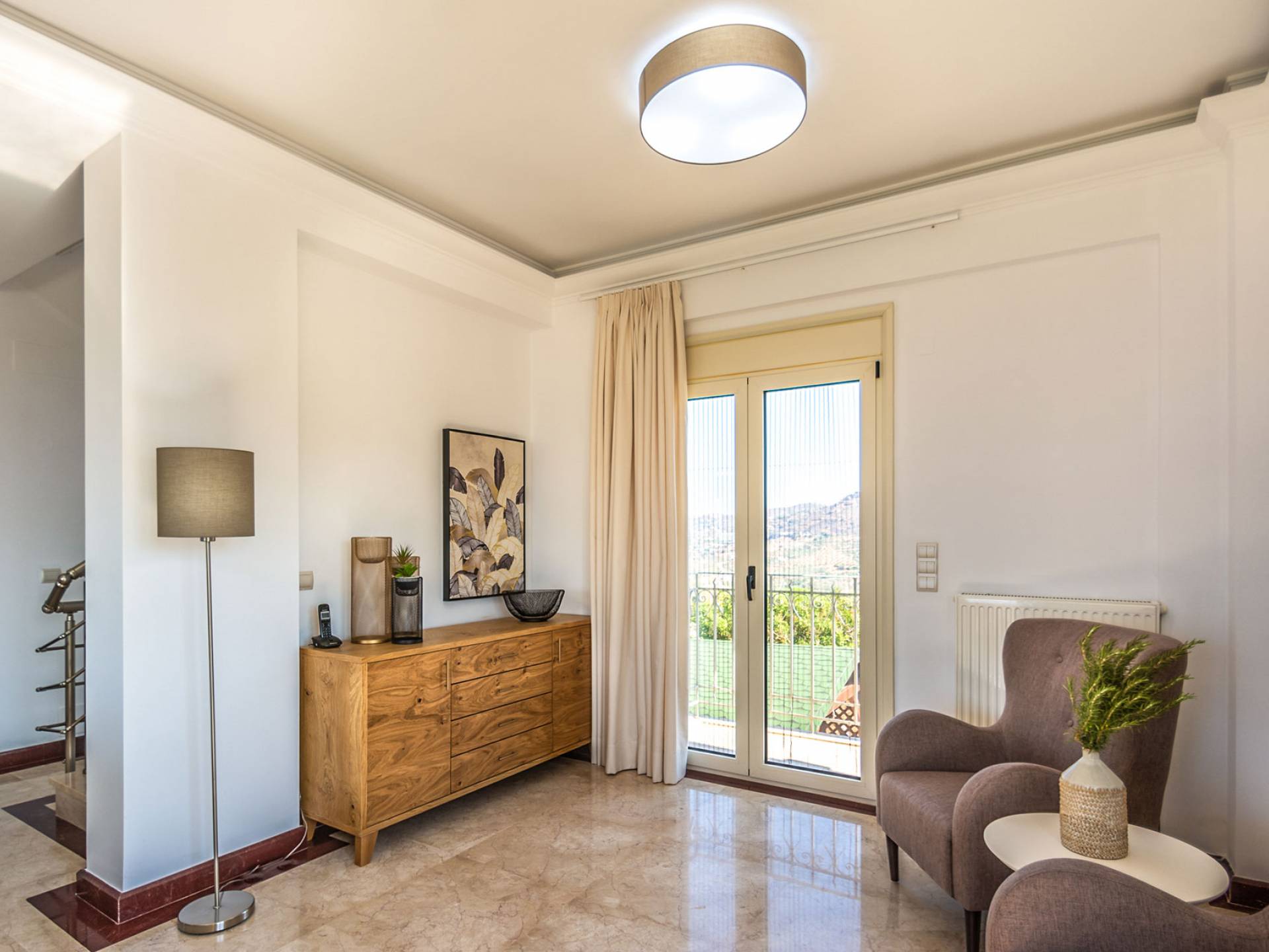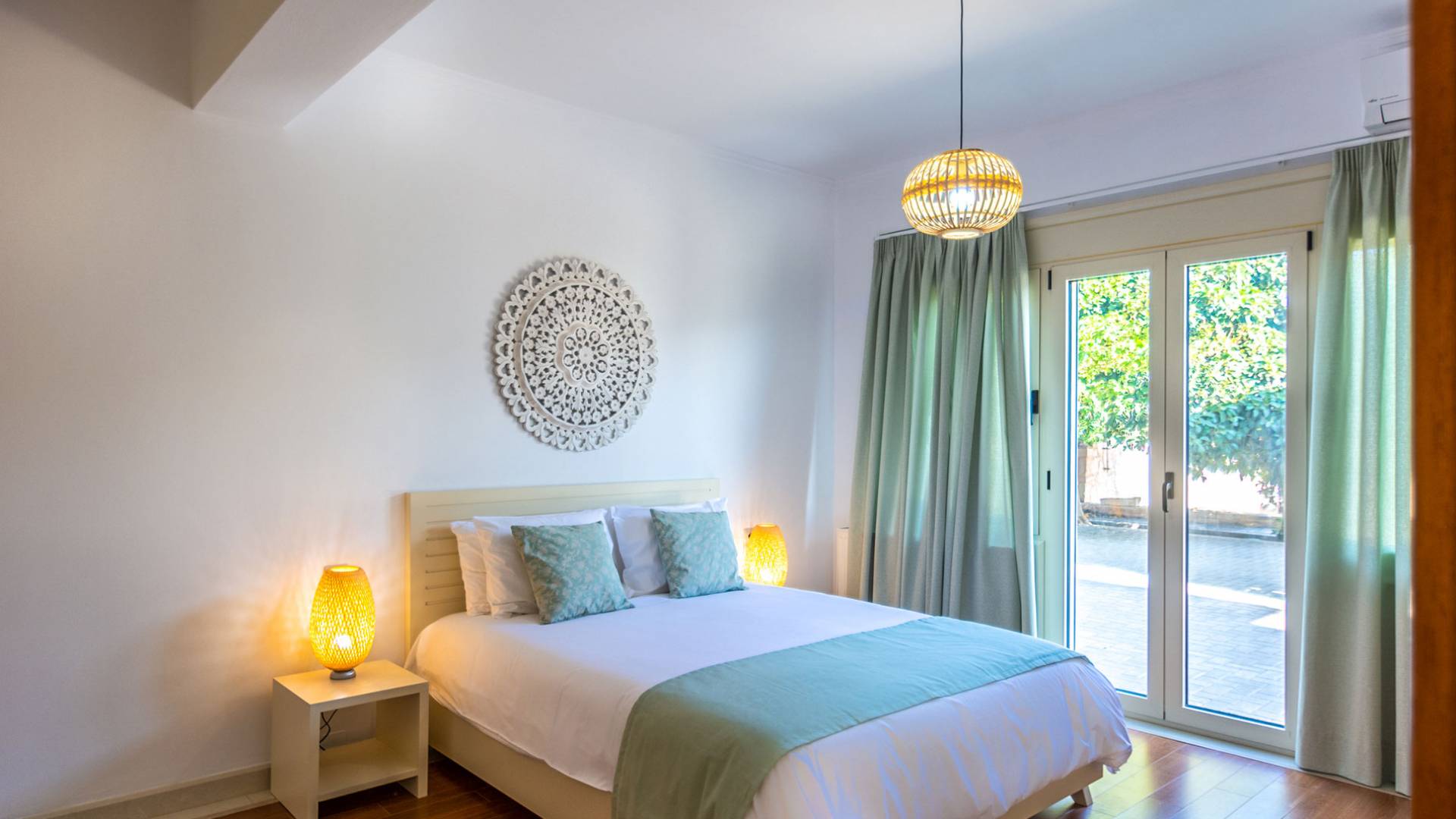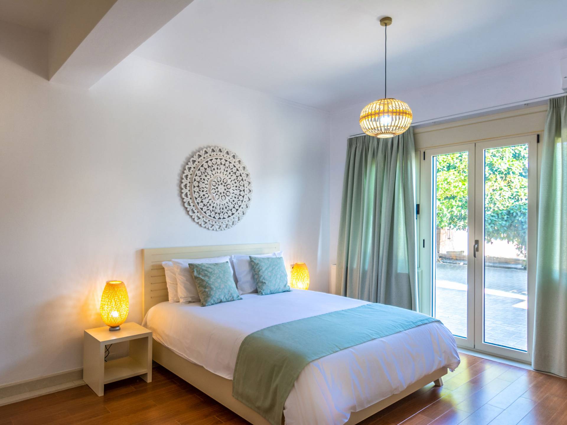 Cada habitación cuenta con grandes ventanas y balcones privados con vistas panorámicas del entorno natural. Todas las habitaciones tienen una decoración contemporánea y tradicional que incluye muebles y ropa de cama cómodos. Villa Aria está construida con una combinación de materiales naturales como mármol, granito, madera, piedra y acero, lo que hace que esta propiedad sea funcional, lujosa y ecológica.