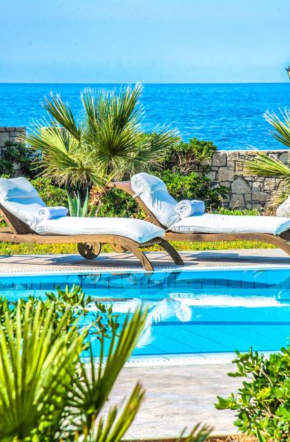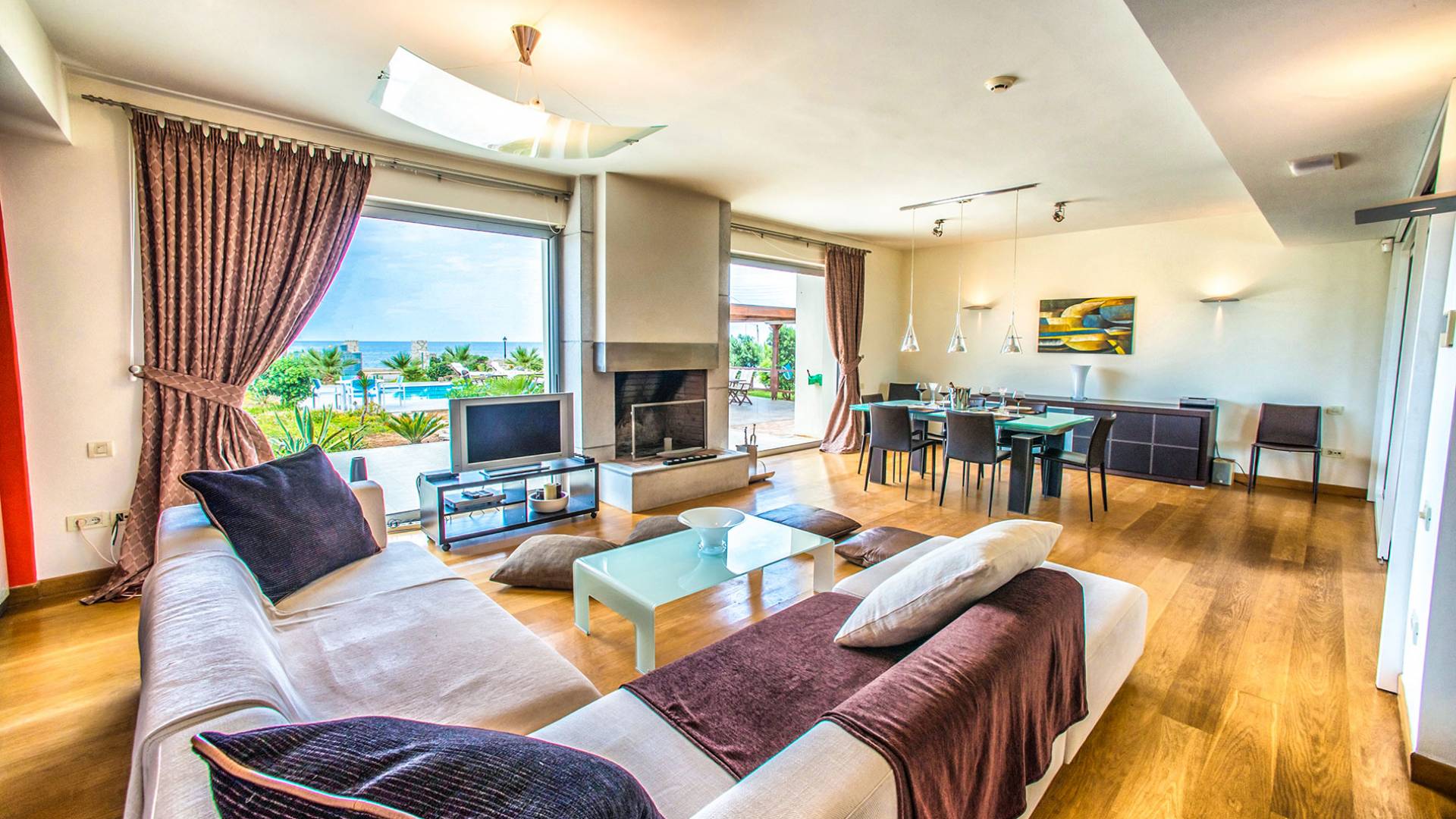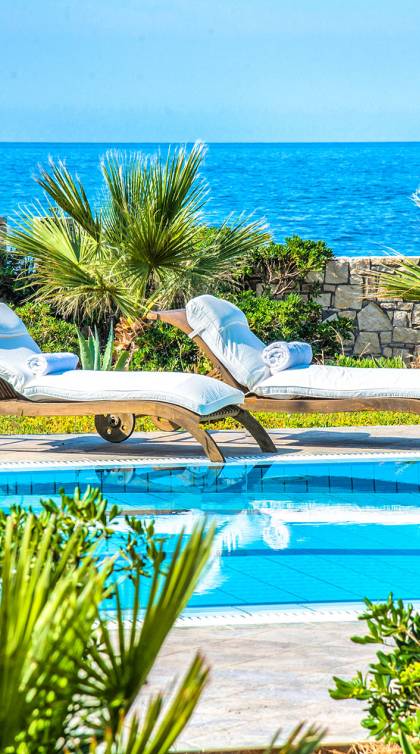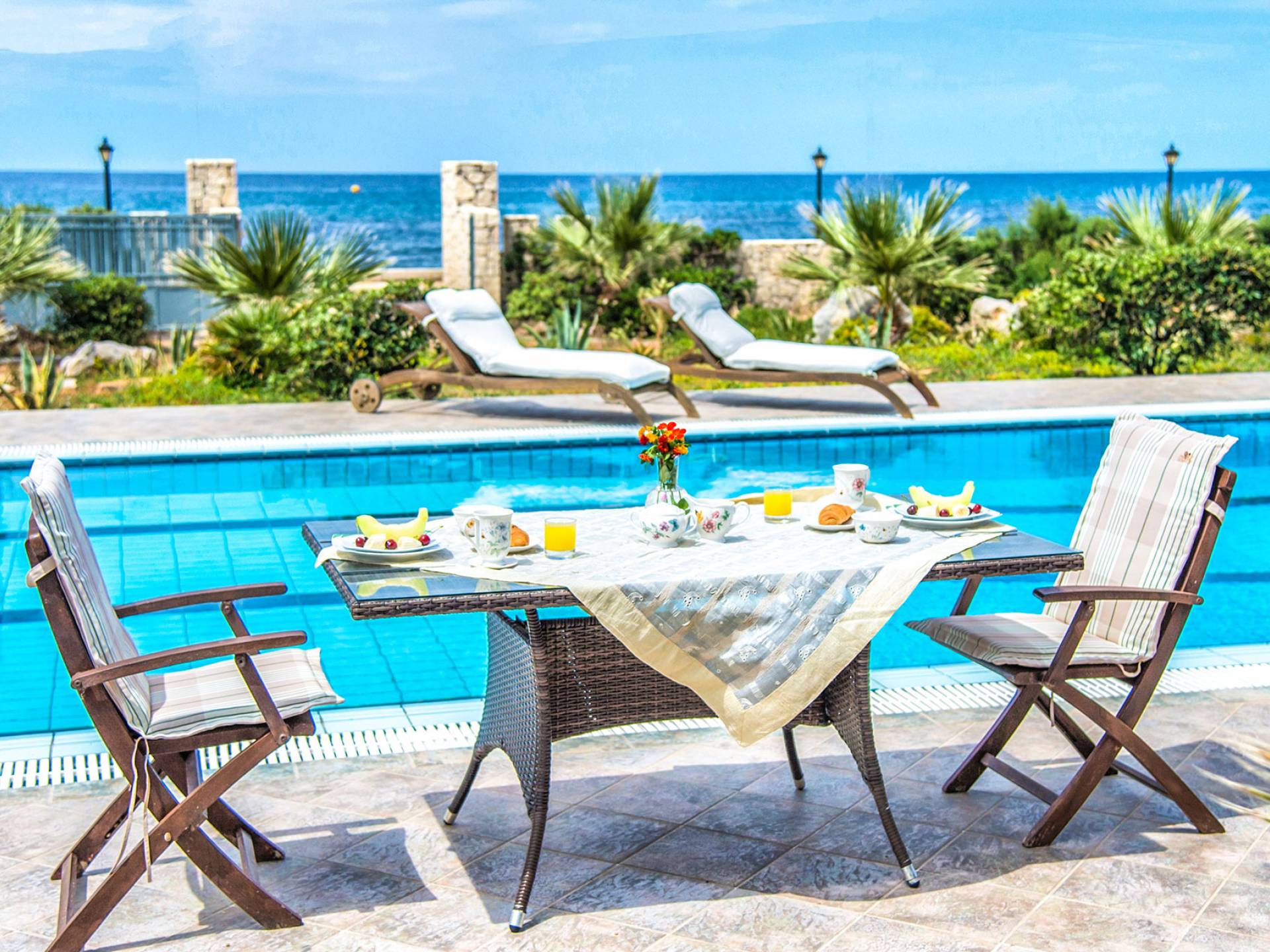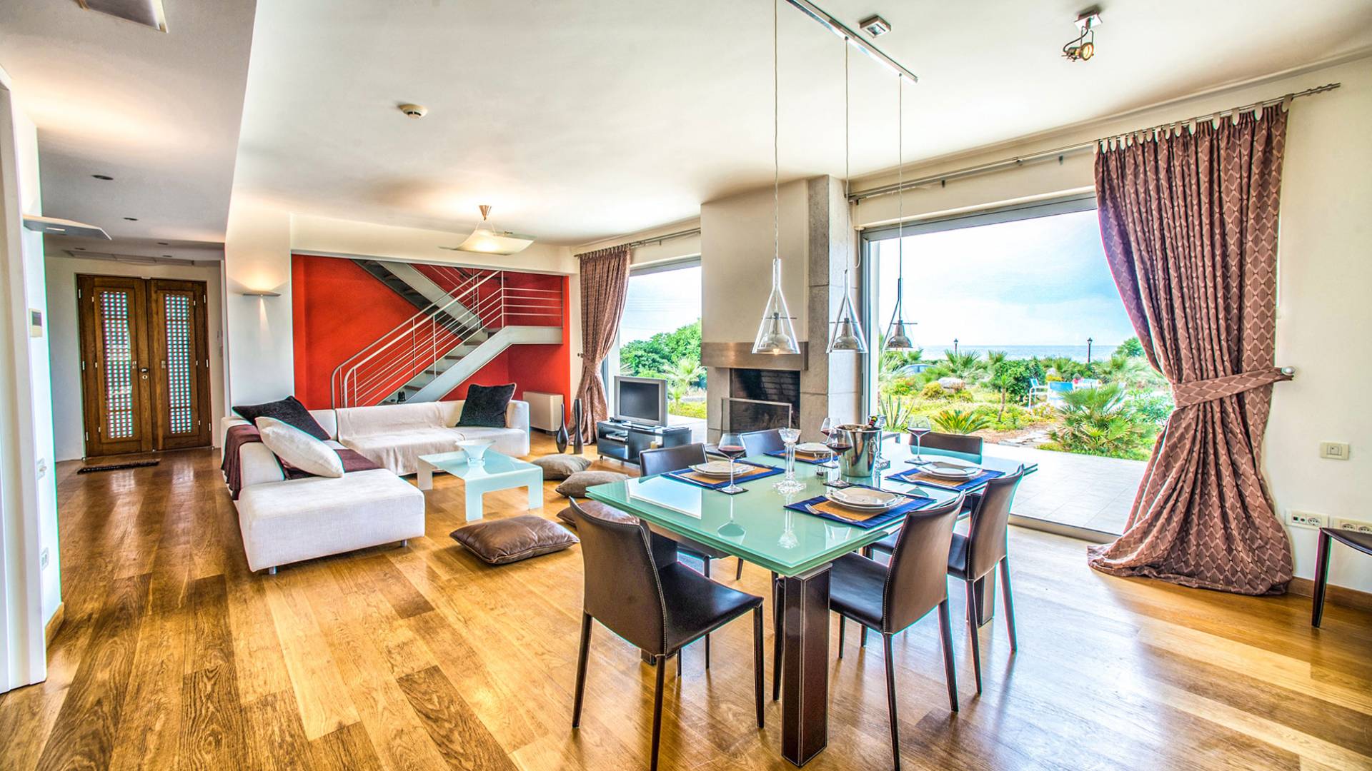 En la costa del norte de Creta con vistas al gran azul del mar de Creta, se creó un pequeño paraíso para aquellos que buscan algo especial para sus vacaciones. En una ubicación única frente al mar, experimente la sensación de relajarse en su propio paraíso al nivel del mar. Sienta la brisa del mar, escuche las olas, disfrute del sol y del agua. Todo esto en una lujosa villa con un toque arquitectónico y decorativo único, equipada con todo lo que una casa moderna requiere. Cretan Beachfront Villa es el destino que hará que sus vacaciones en Creta sean inolvidables.