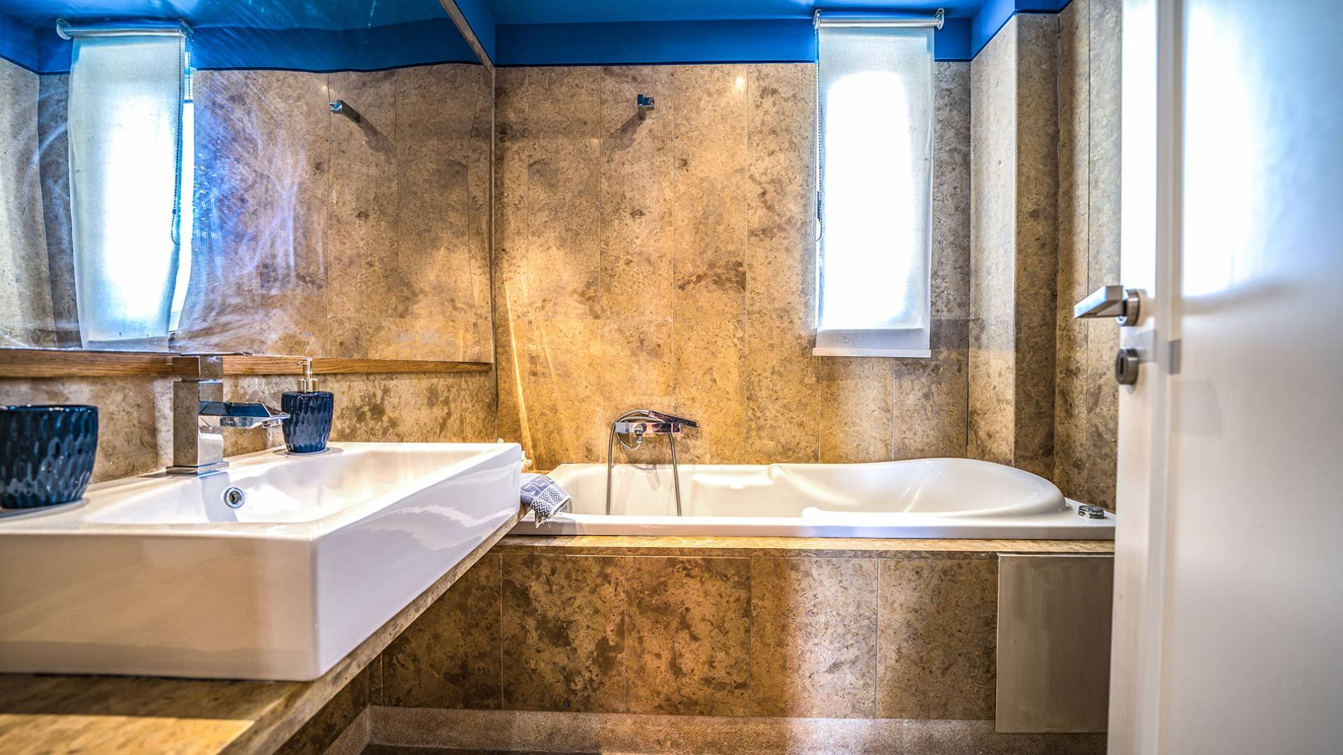 La luz y las vistas de azul y verde entran por las ventanas de la villa. Cretan Beachfront Villa es una villa de 290 metros cuadrados de dos niveles que está rodeada por una gran parcela de 2 acres, amplias terrazas y una maravillosa piscina de 95 metros cuadrados con fascinantes vistas al mar. Las áreas de estar y comedor combinan sencillez y suntuosidad. La villa ofrece 5 dormitorios y puede albergar de 1 a 12 personas, lo que la convierte en el lugar perfecto para un alojamiento lujoso y completamente cómodo en Analipsis Creta.