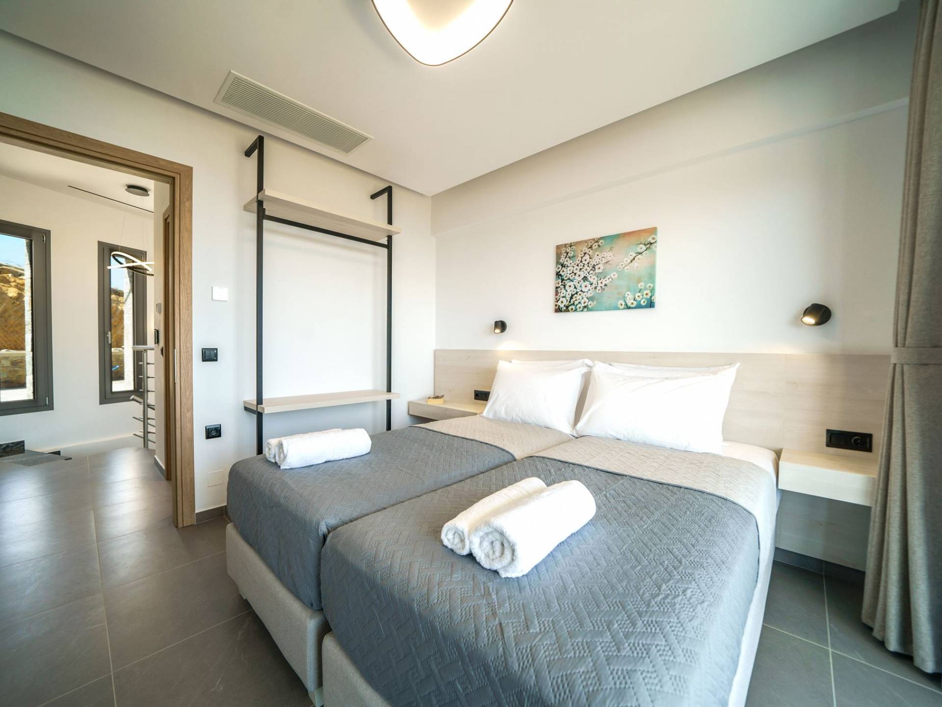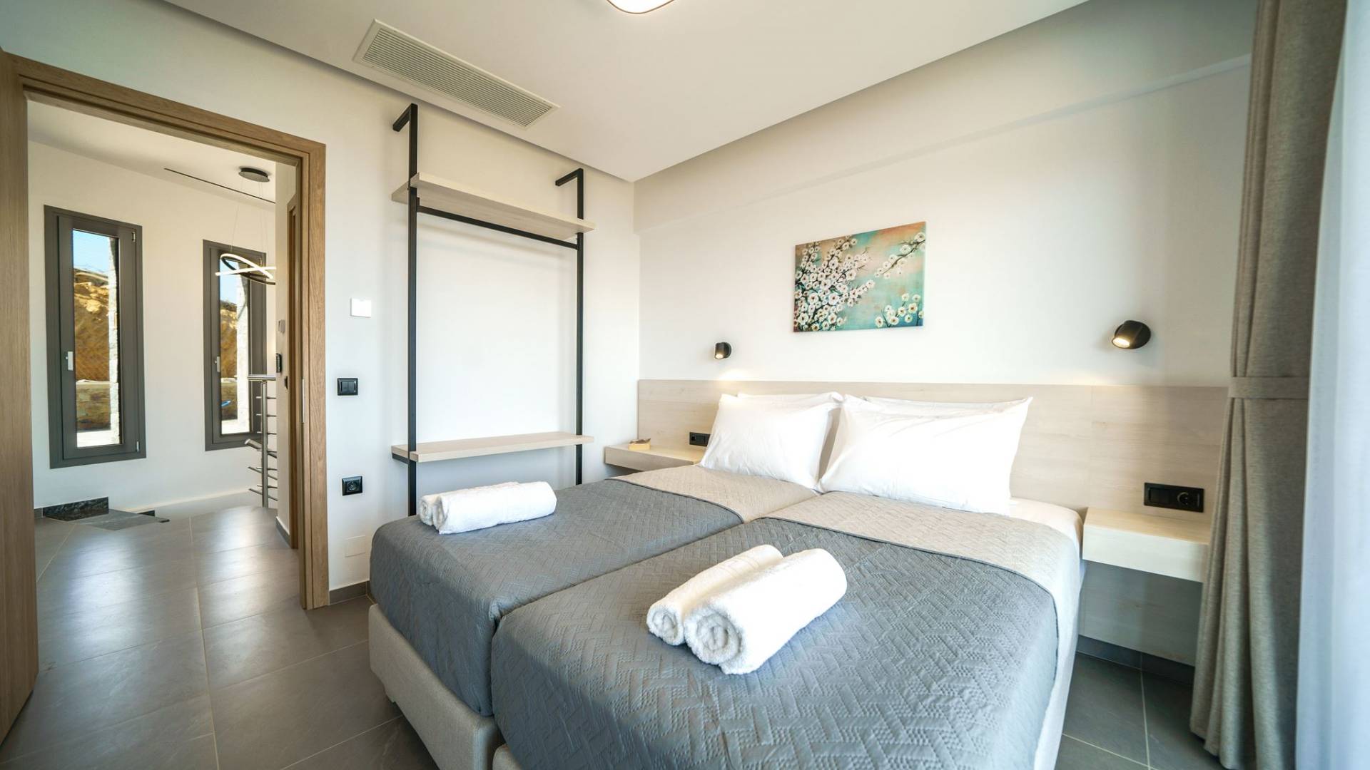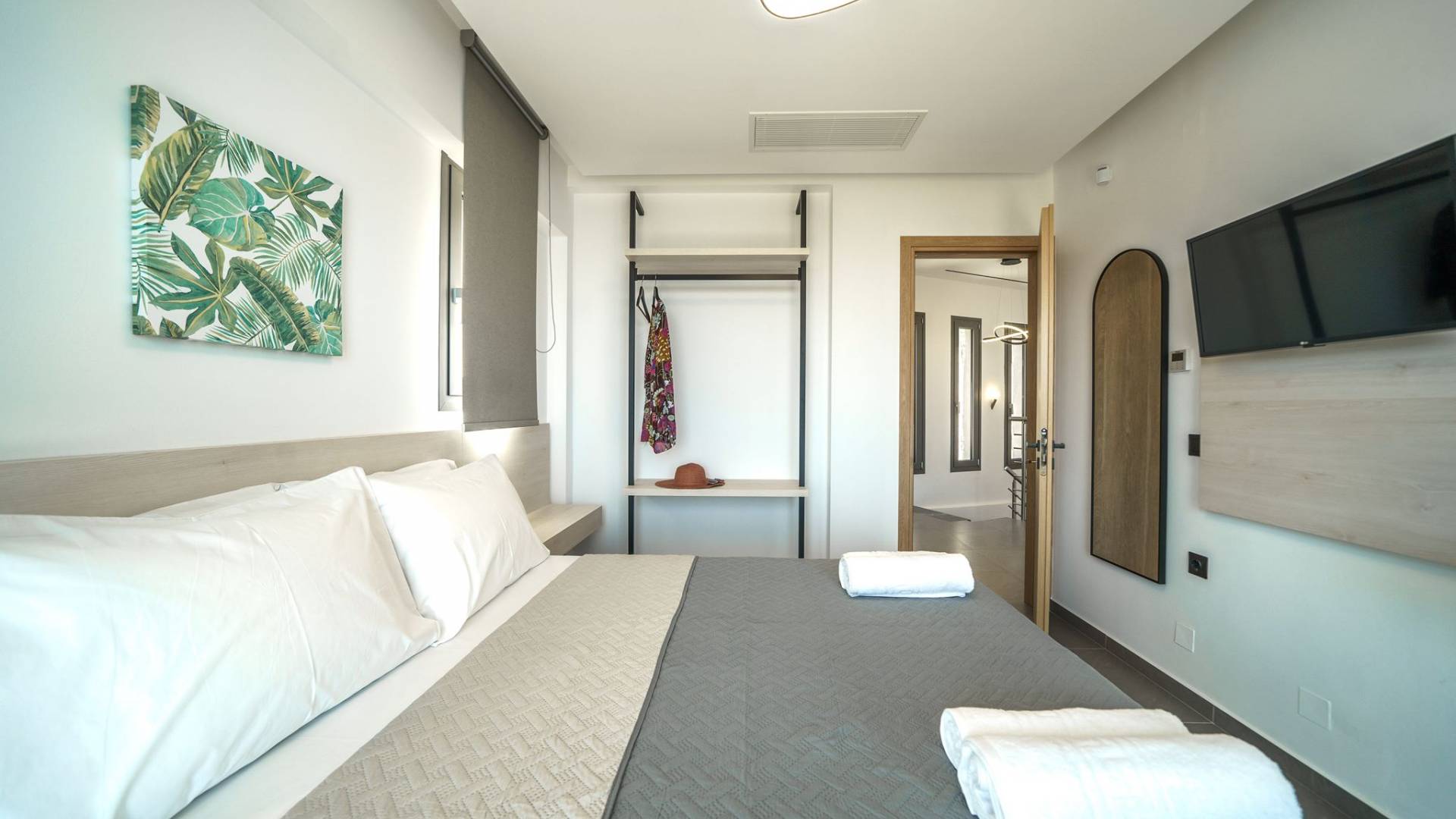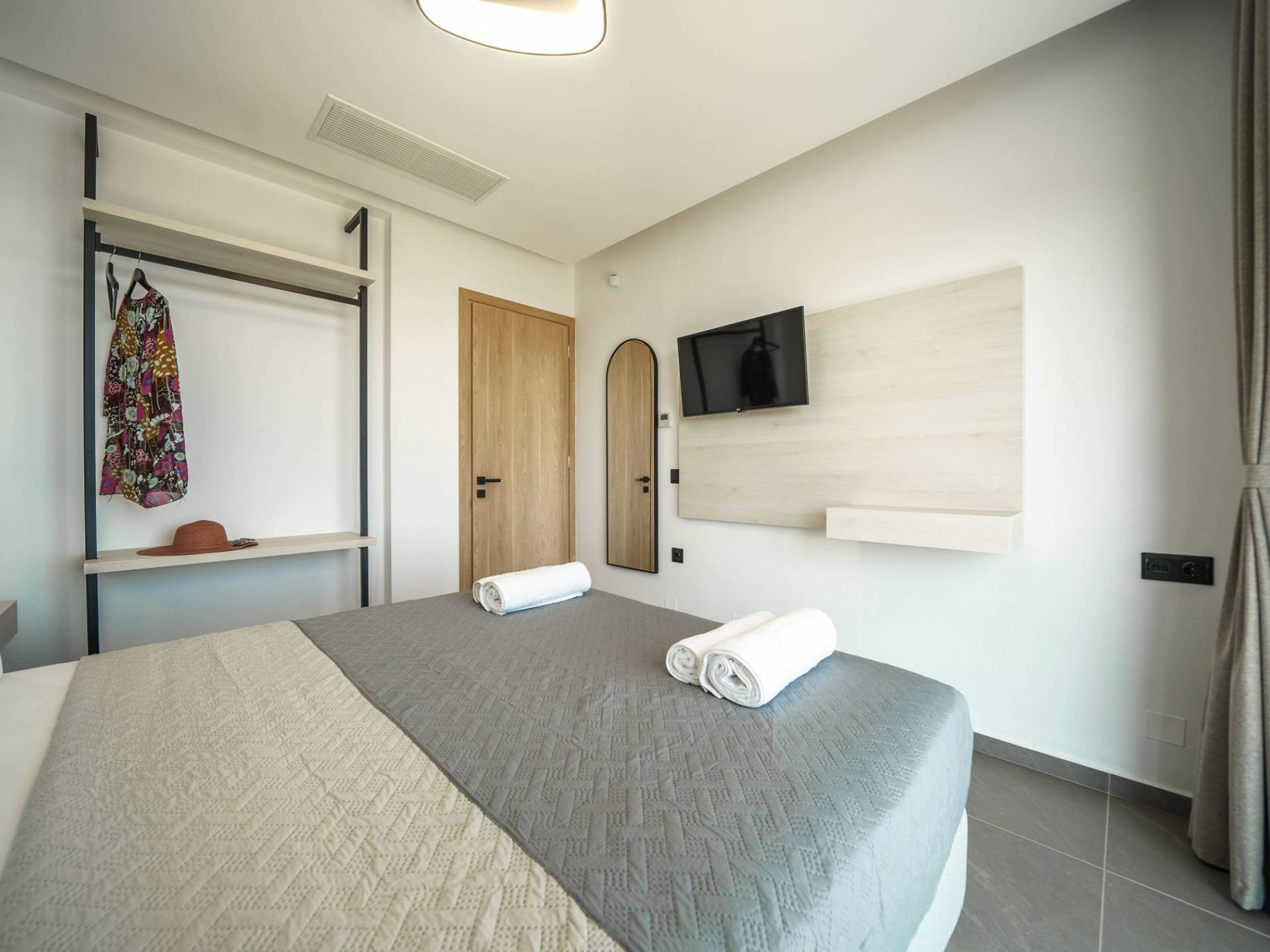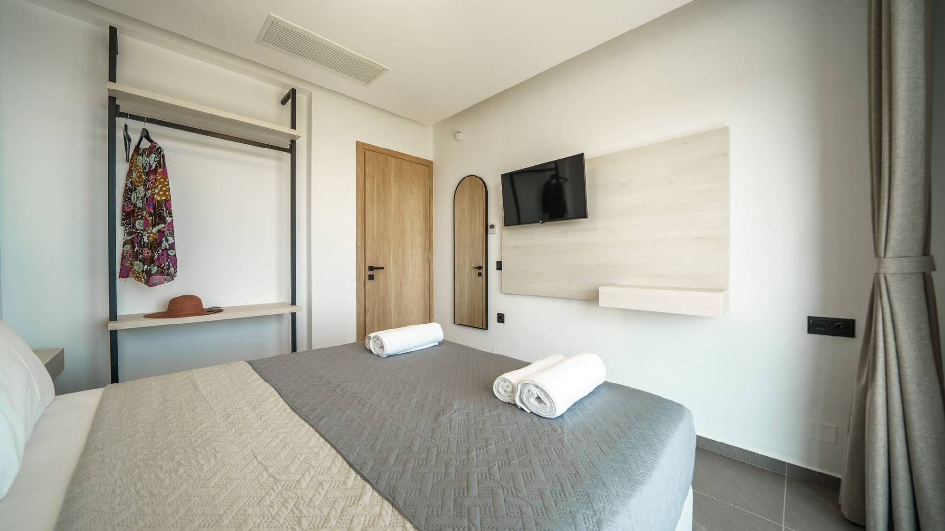 Cuando llega el momento de retirarse a pasar la noche, le esperan 3 habitaciones diseñadas. Cada dormitorio cuenta con una cama de 1,60 X 2,00, complementada con un televisor de 32'', aire acondicionado y un armario para tu comodidad. Todas las habitaciones dan acceso a un balcón y una terraza equipada con una acogedora zona de estar, que le invita a despertarse con las fascinantes vistas al mar cada mañana.