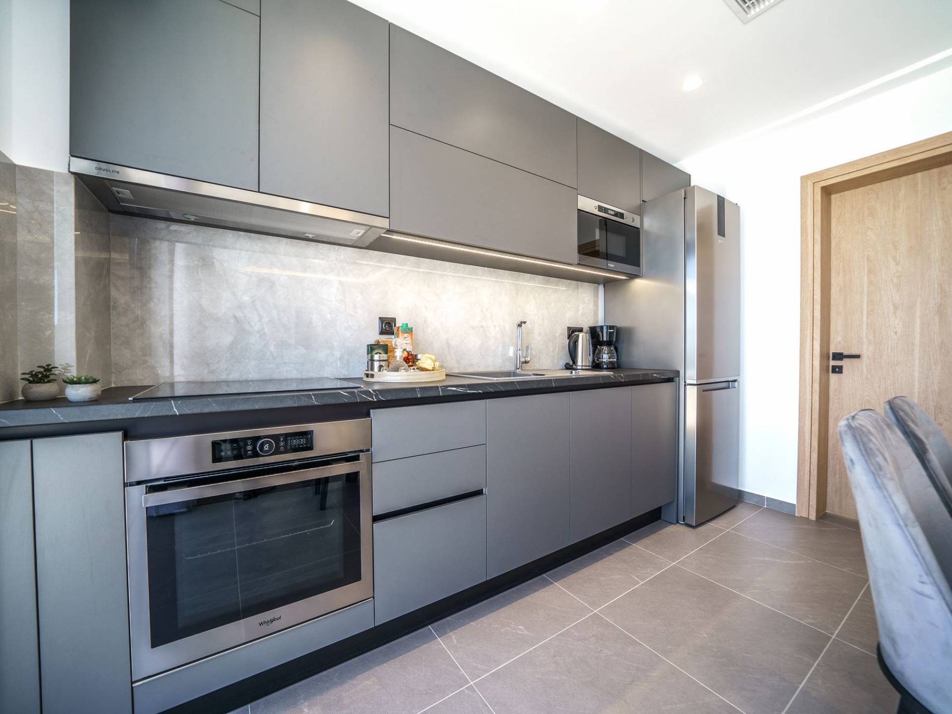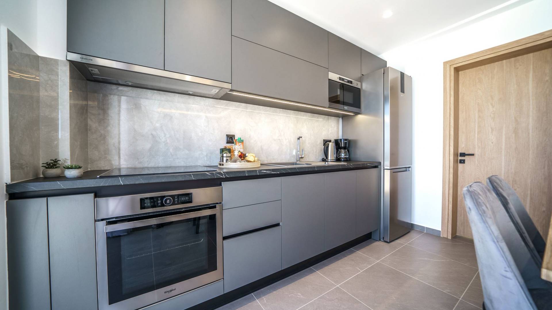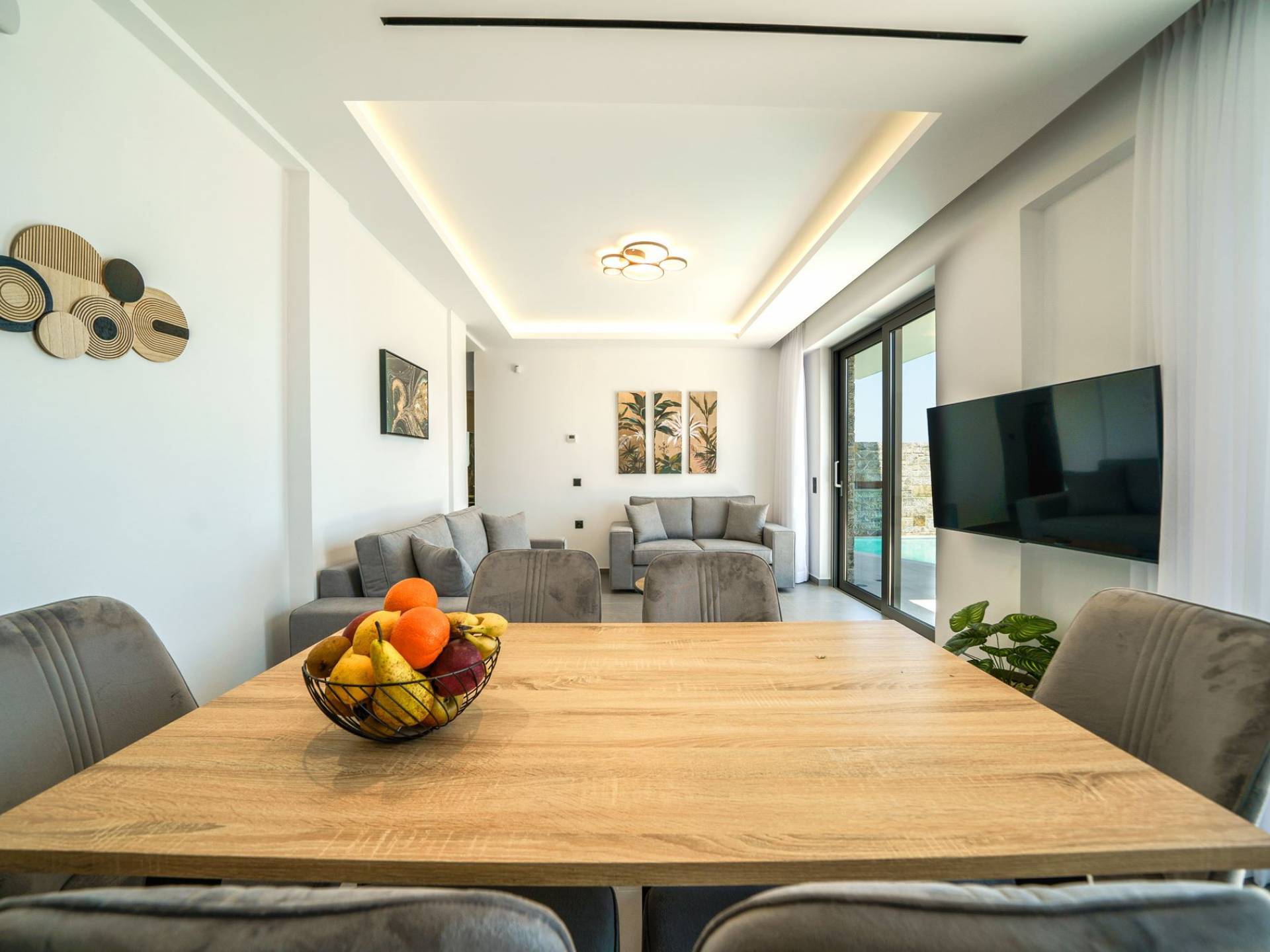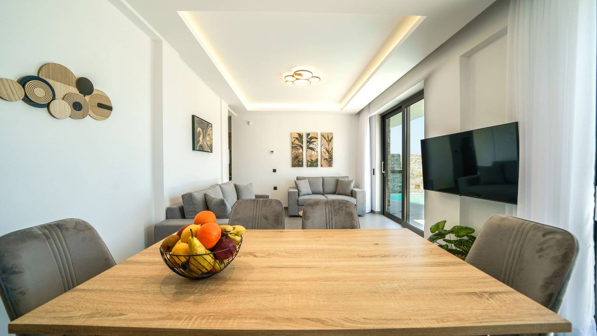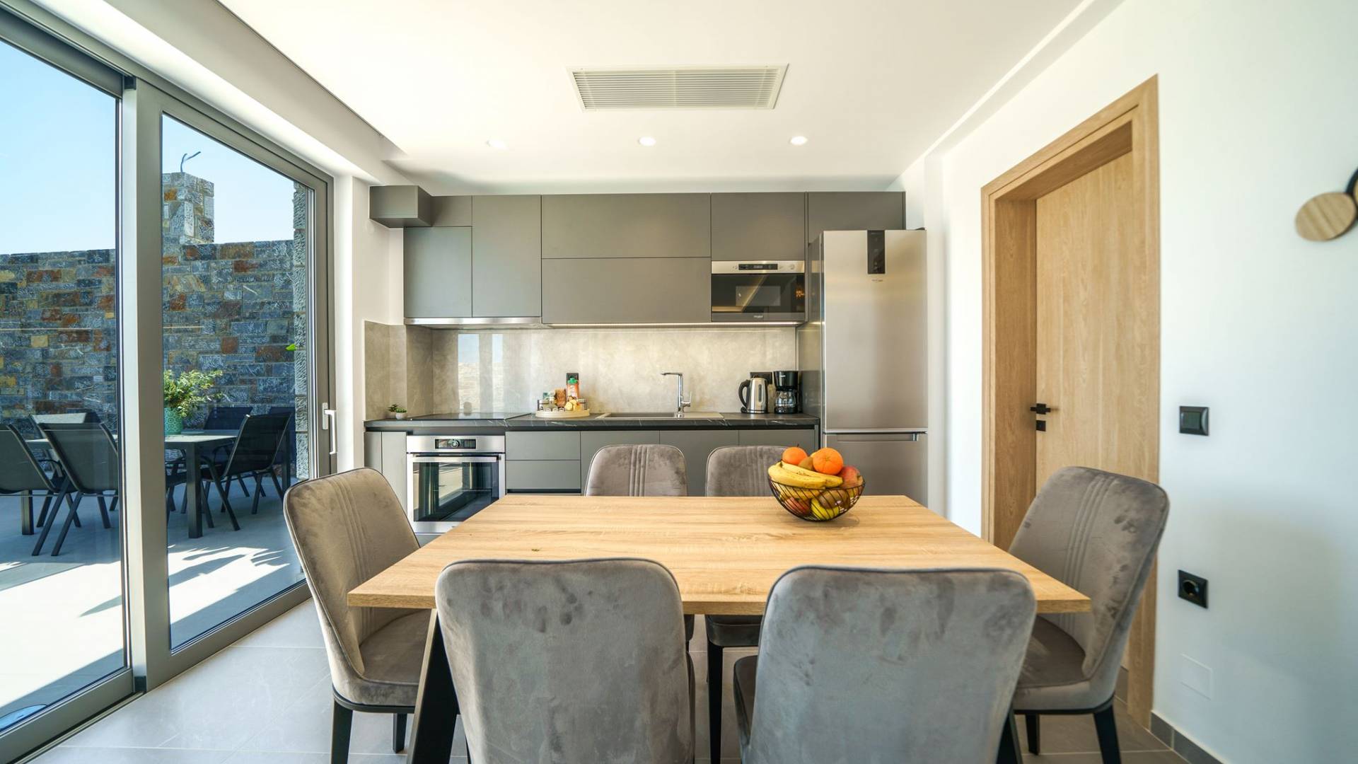 La sala de estar le da la bienvenida con una elegante zona de estar con un televisor inteligente de 50 pulgadas, perfecta para pasar tardes relajadas mientras explora más. Quedará encantado con el punto focal de la sala de estar: un espacioso terraza que ofrece impresionantes vistas al mar, invitándole a disfrutar de la belleza de la naturaleza.