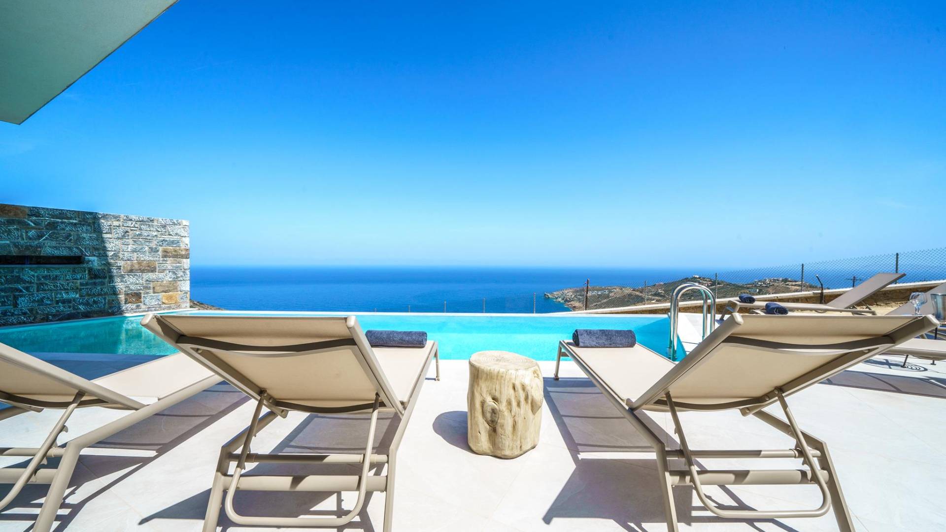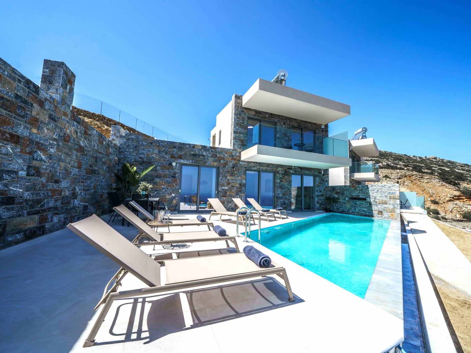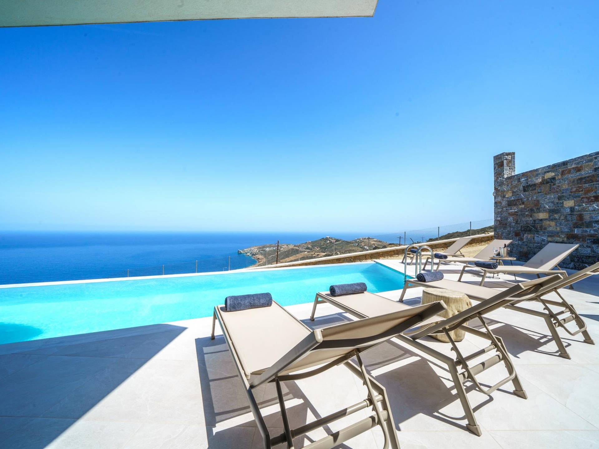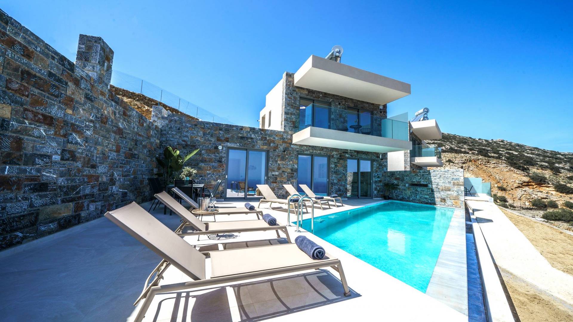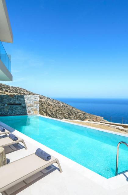 Las villas en Agia Pelagia van desde acogedoras casas para dos personas hasta propiedades espaciosas para familias numerosas, con jardines privados, piscinas, vistas al mar y servicios exclusivos como chef privado, masajes o asistencia personalizada.