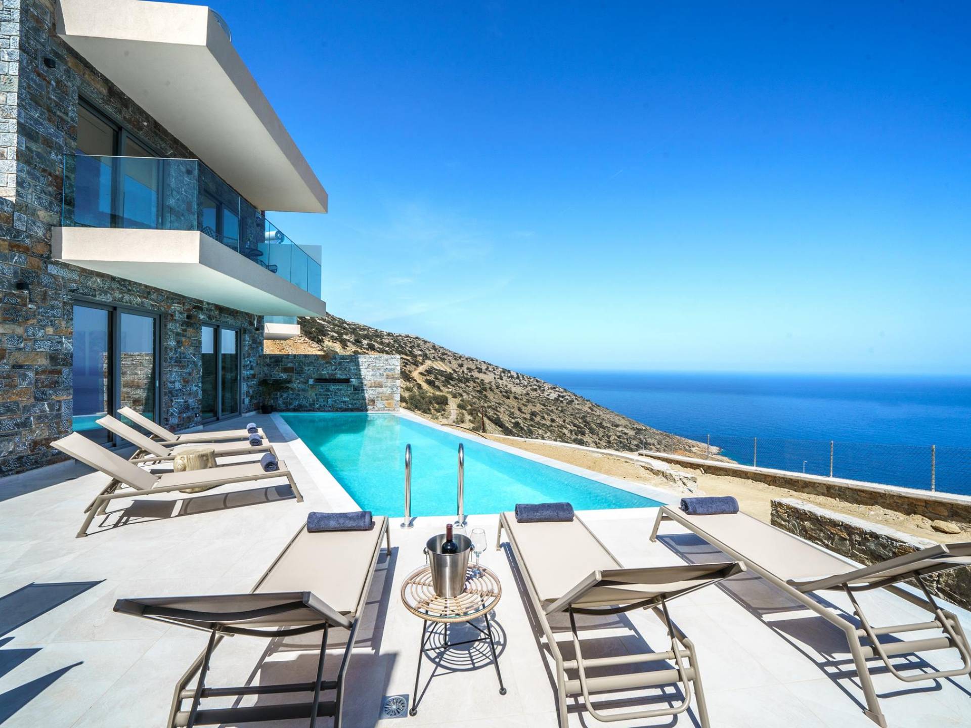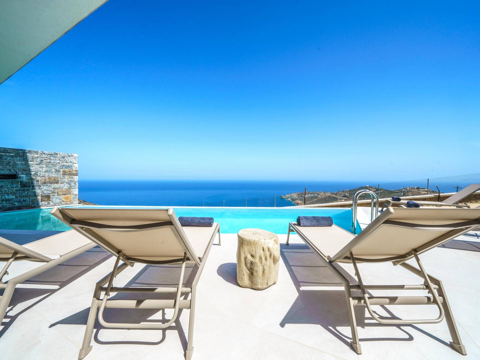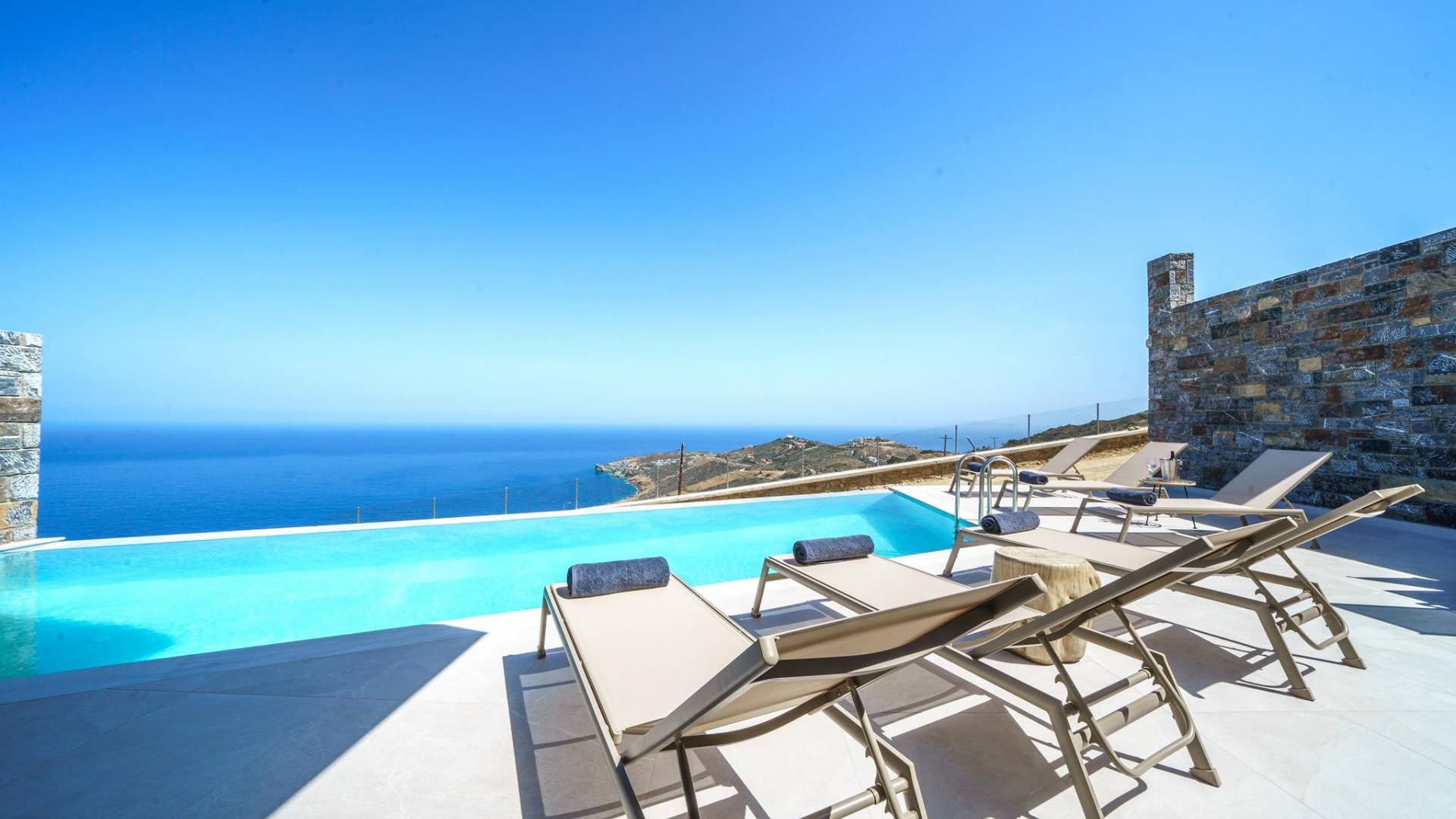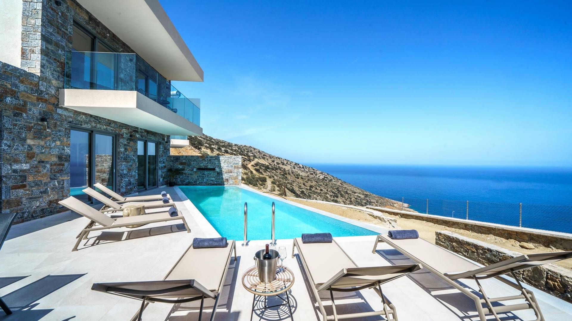 Las villas en Agia Pelagia van desde acogedoras casas para dos personas hasta propiedades espaciosas para familias numerosas, con jardines privados, piscinas, vistas al mar y servicios exclusivos como chef privado, masajes o asistencia personalizada.