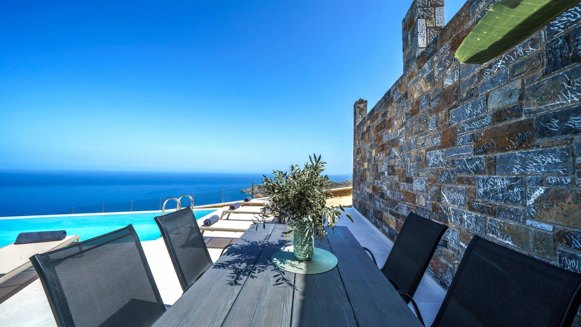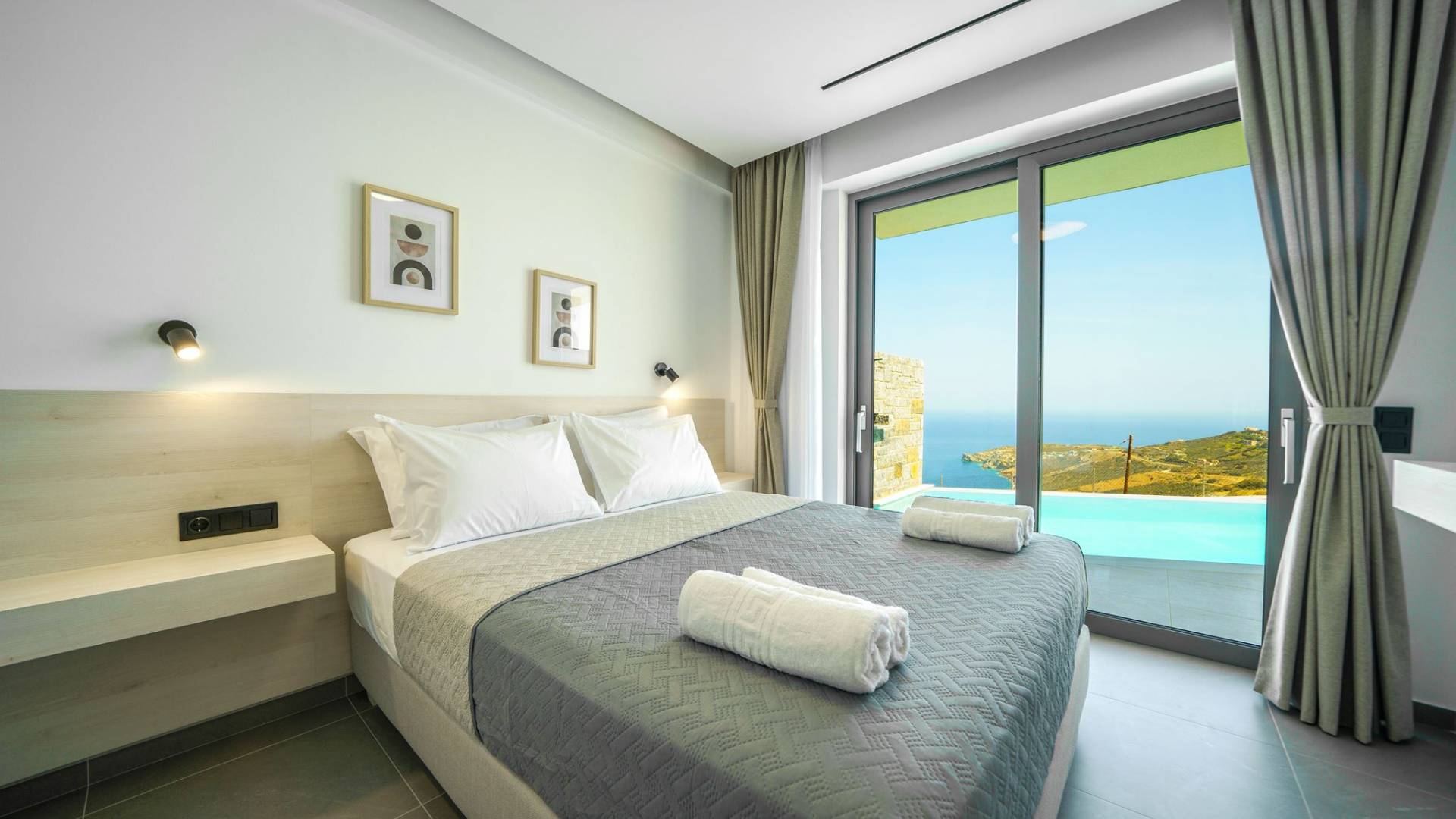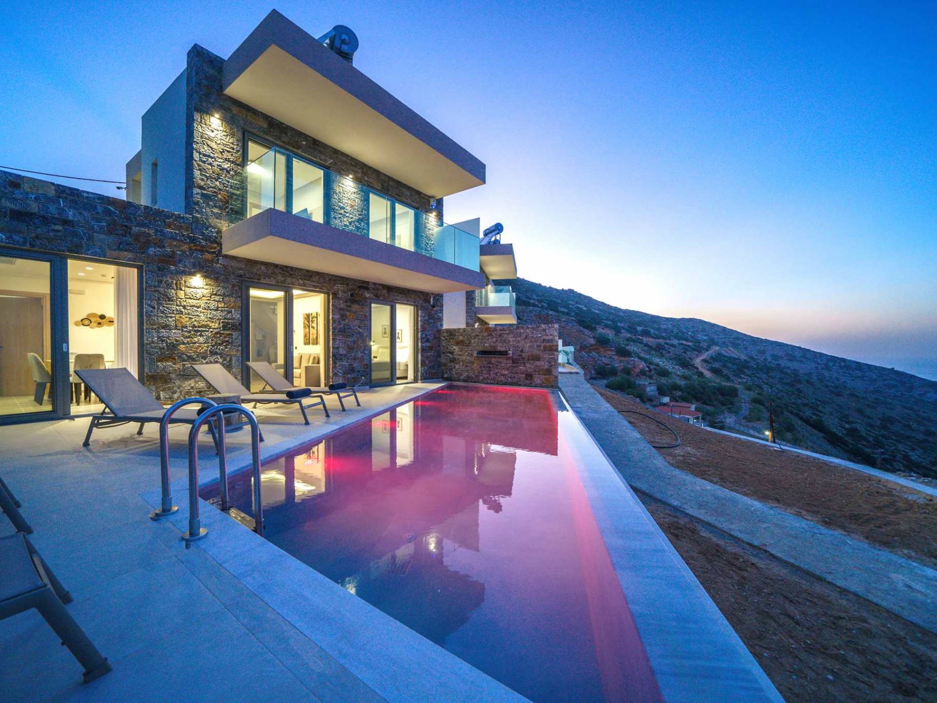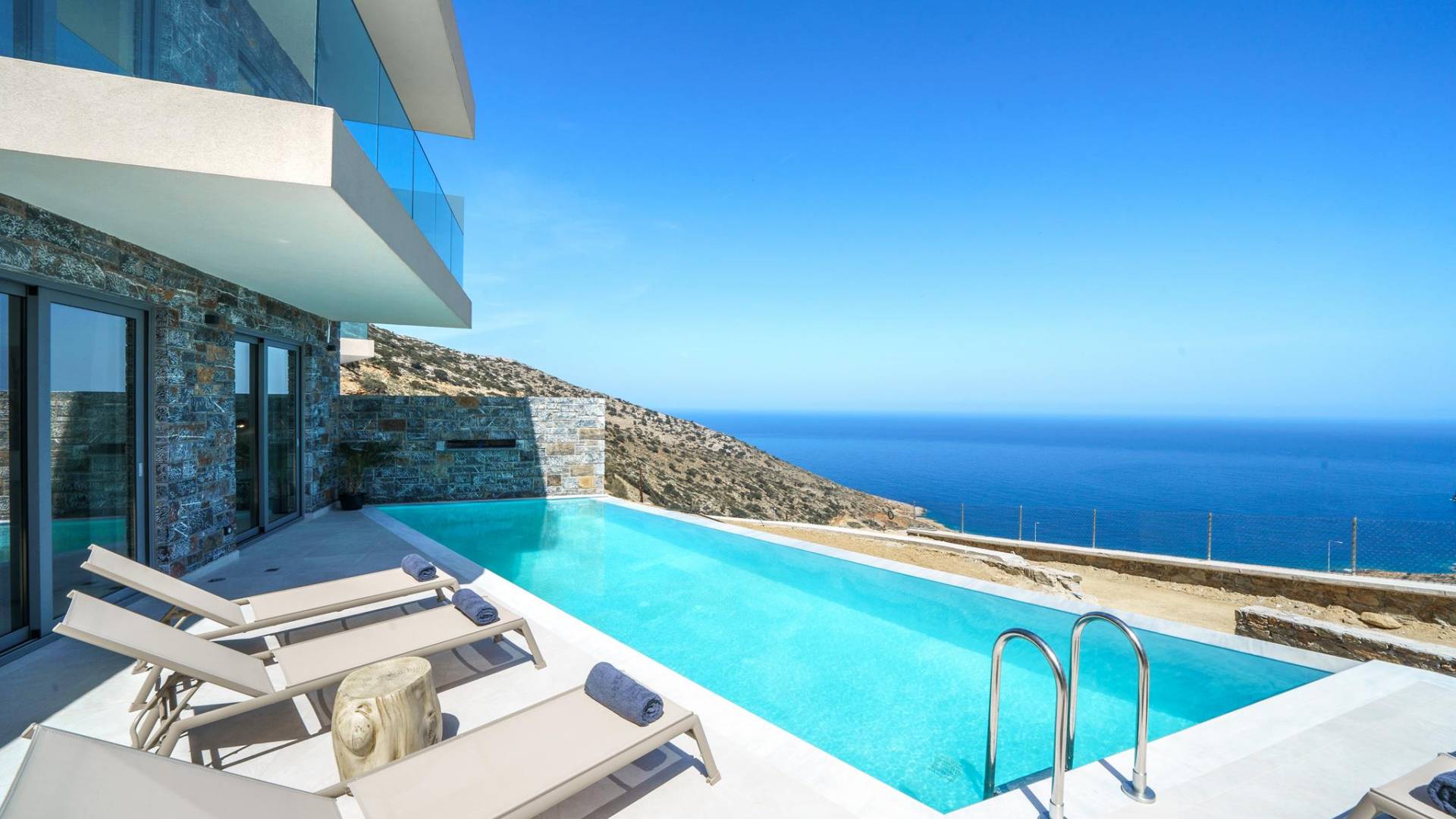 Las villas en Agia Pelagia van desde acogedoras casas para dos personas hasta propiedades espaciosas para familias numerosas, con jardines privados, piscinas, vistas al mar y servicios exclusivos como chef privado, masajes o asistencia personalizada.