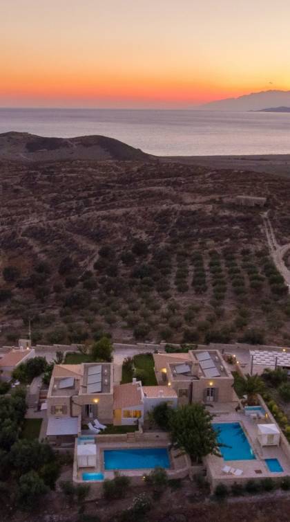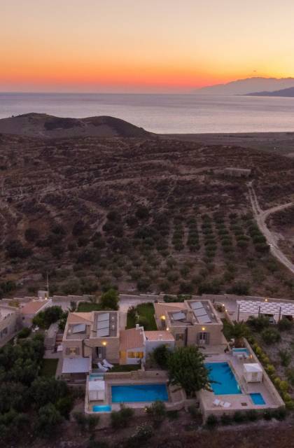 Koronio Villas Crete son 3 alquileres de villas de lujo con 6 dormitorios y 3 piscinas privadas. Villas Koronio se encuentran en el sur de Creta, en una colina entre Kalamaki (aprox. 1,5 km de distancia) y Kamilari. Koronio Villas consta de 3 villas de lujo, Villa Anthippi, Villa Antigoni y Villa Ismini con un diseño original de Creta, en un olivar. La tranquilidad, la comodidad y las impresionantes vistas del mar de Libia y las montañas de Ida seguramente lo deleitarán.