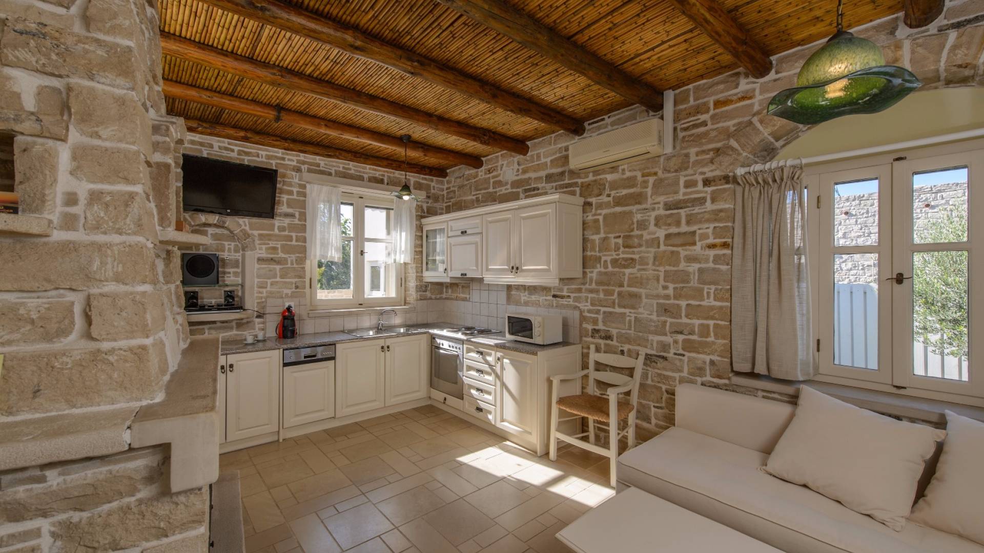 Koronio Villas Crete ofrece dos habitaciones dobles, una sala de estar con cocina totalmente equipada, lavavajillas, estufa y horno de 4 fuegos, microondas, refrigerador en combinación con congelador, tetera, tostadora y otra cocina. accesorios. La sala de estar tiene cómodas opciones de asientos, si es necesario, un dormitorio adicional y una chimenea, un baño completo con bañera de hidromasaje y lavadora, el segundo baño con ducha, TV vía satélite, reproductor de DVD y acceso inalámbrico a LAN, aire acondicionado con refrigeración. y modo calefacción, y barbacoa