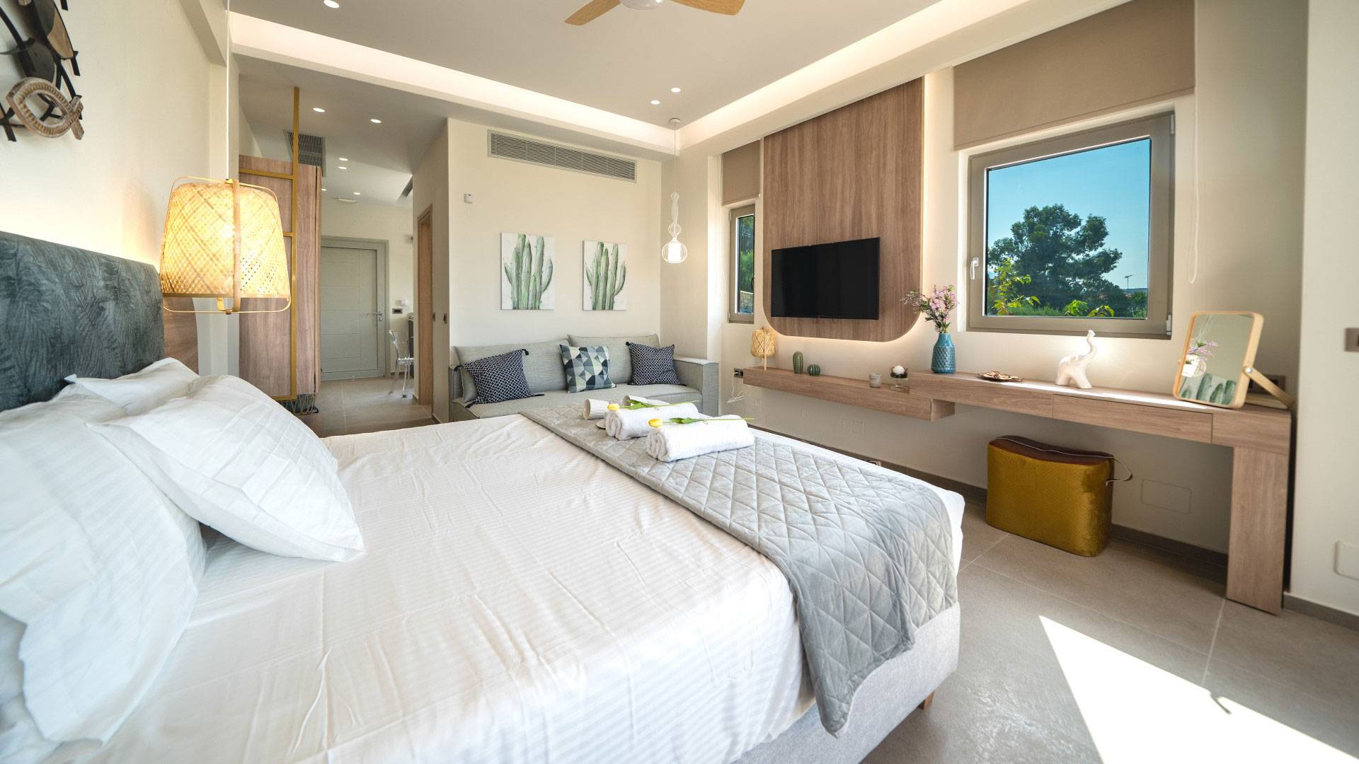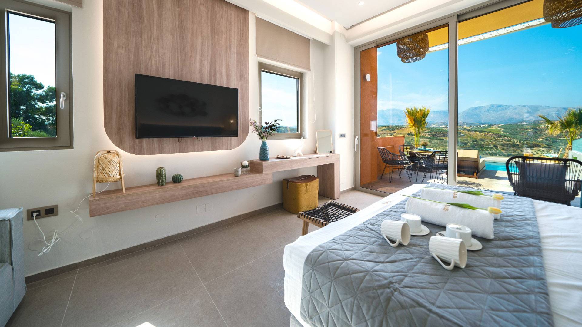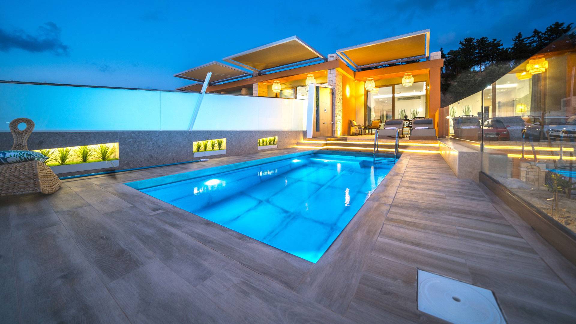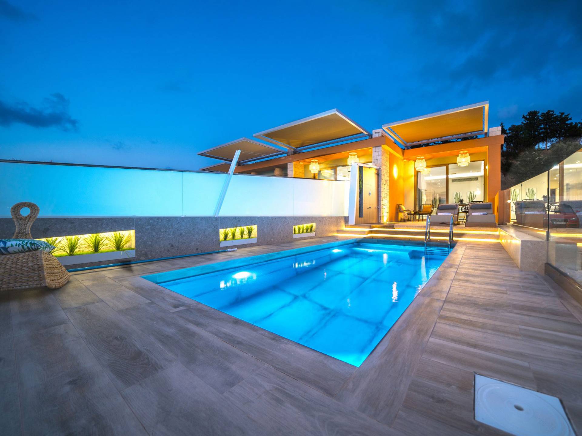 En Olania Villa 3 Creta, el alojamiento de lujo se transforma en la experiencia vacacional más elegante y refrescante. Disfrute del ambiente especial que ofrece el cuidado diseño (construcción, iluminación, etc.) del interior y exterior, disfrute de la vista infinita durante el día y del cielo estrellado por la noche lejos de la contaminación lumínica de la ciudad.