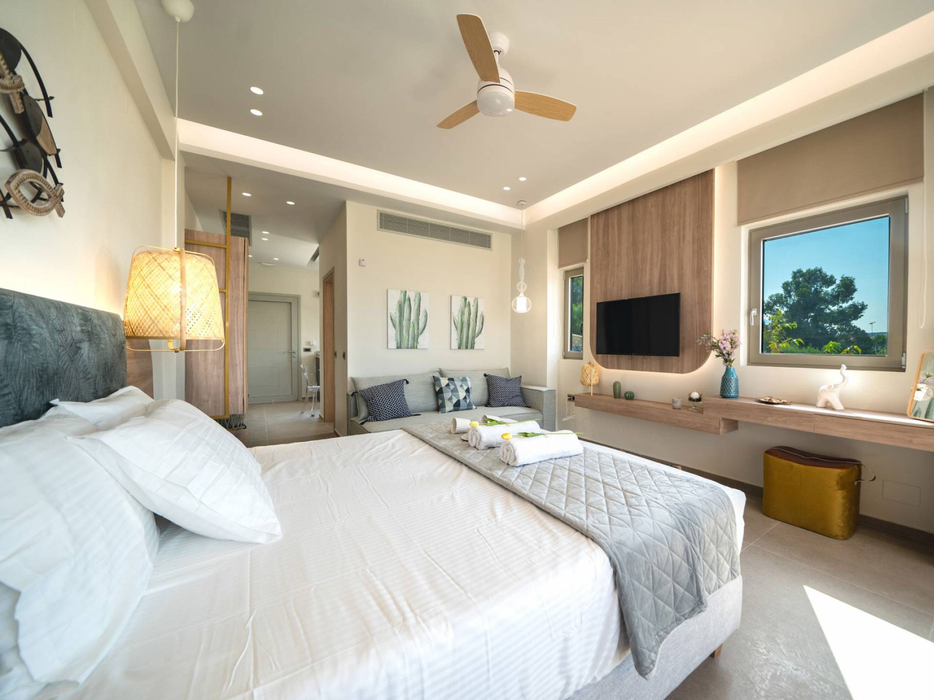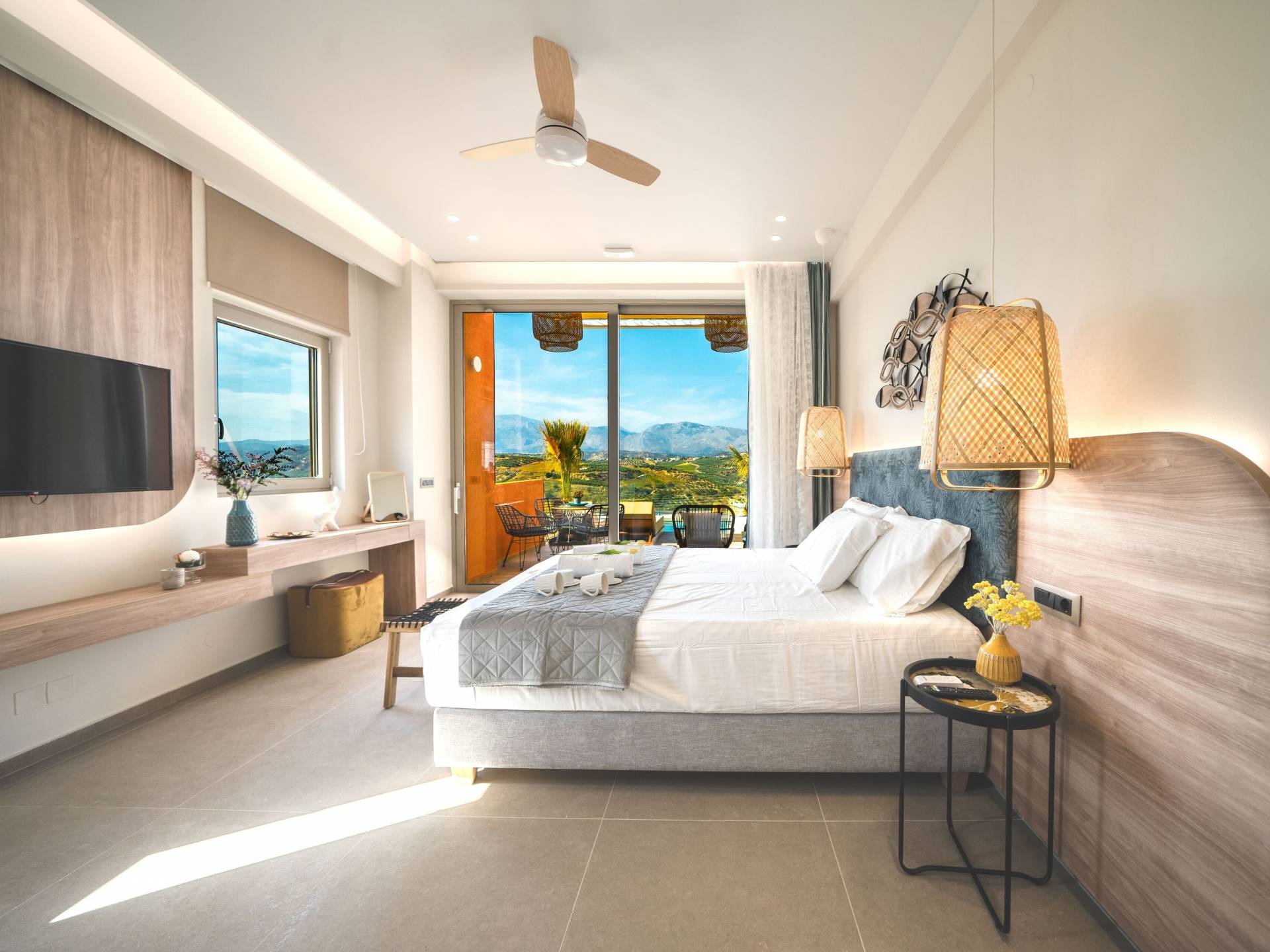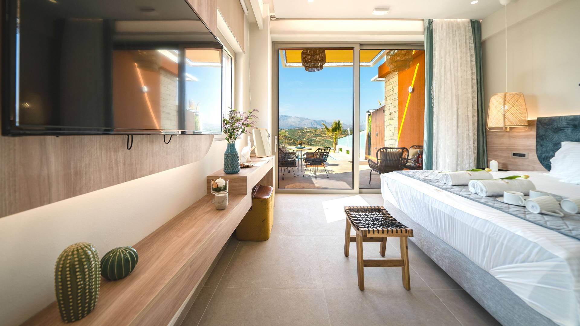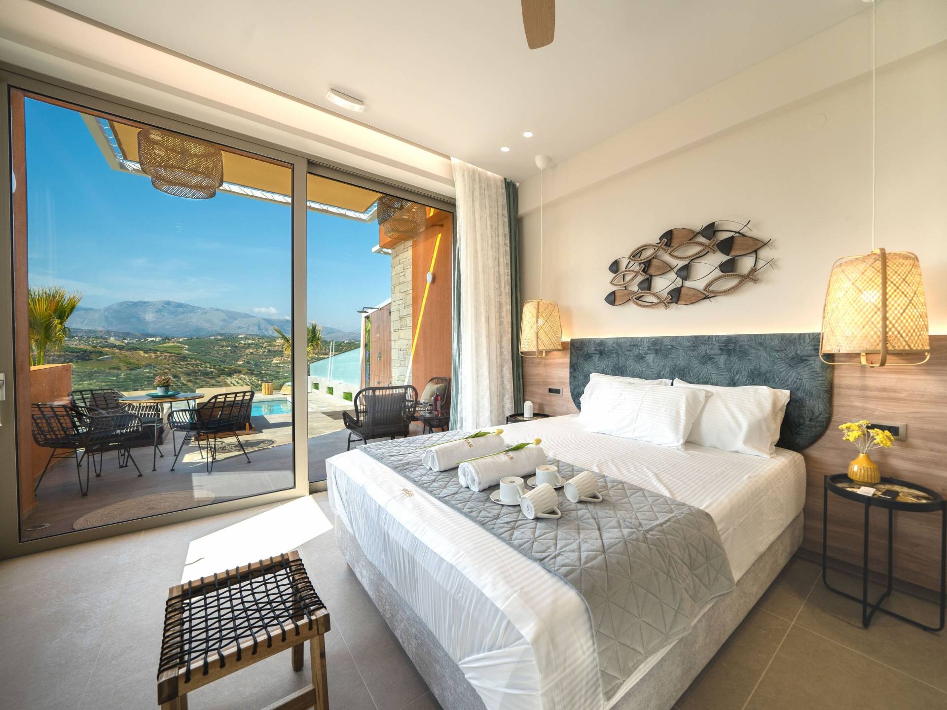 En Olania Villa 3 Creta, el alojamiento de lujo se transforma en la experiencia vacacional más elegante y refrescante. Disfrute del ambiente especial que ofrece el cuidado diseño (construcción, iluminación, etc.) del interior y exterior, disfrute de la vista infinita durante el día y del cielo estrellado por la noche lejos de la contaminación lumínica de la ciudad.