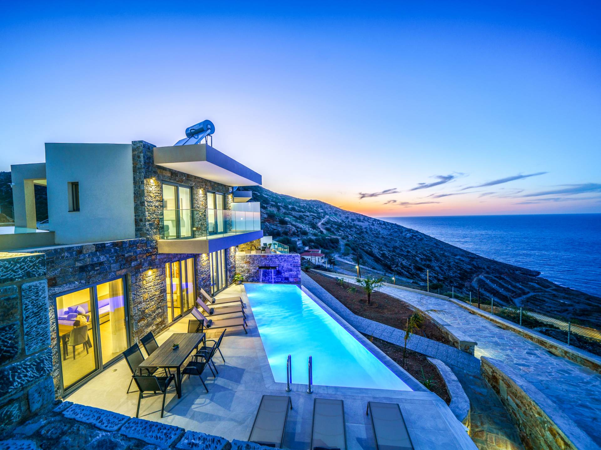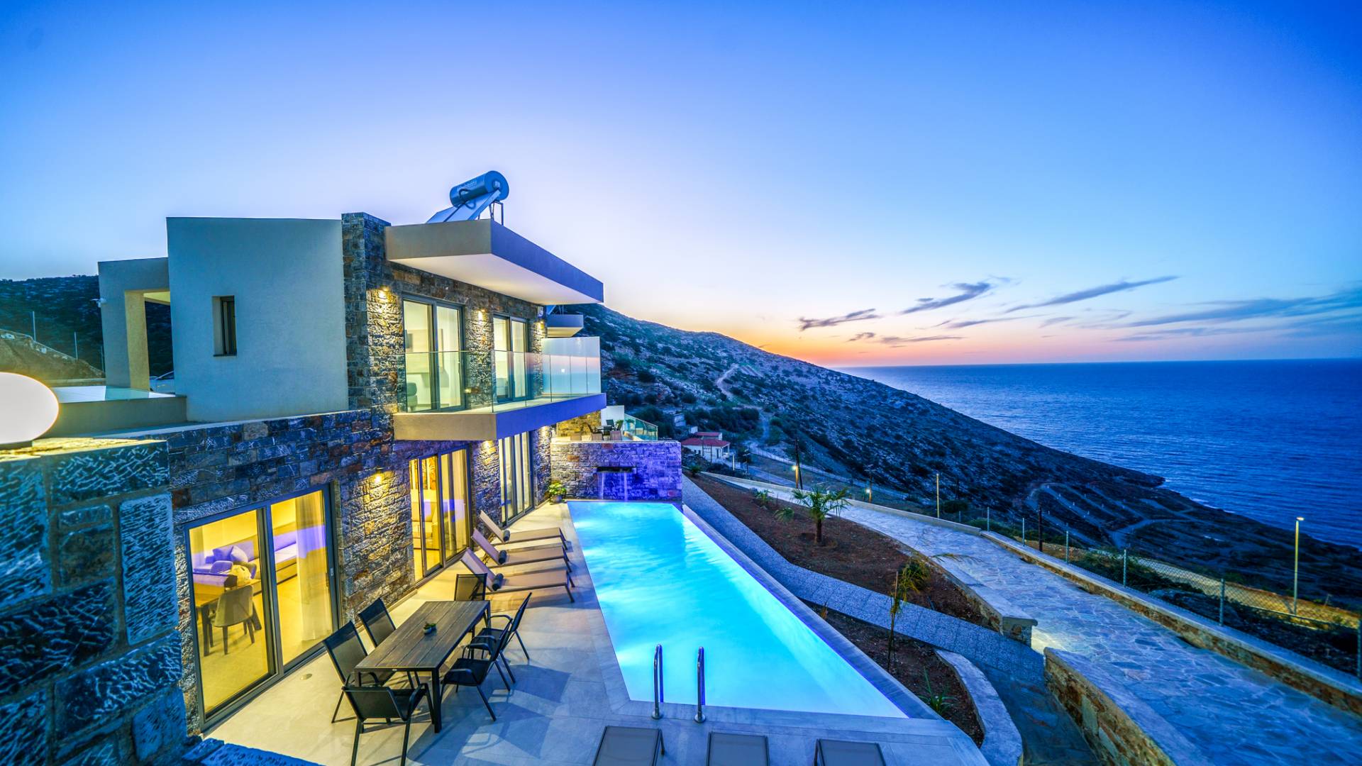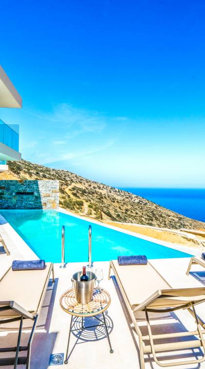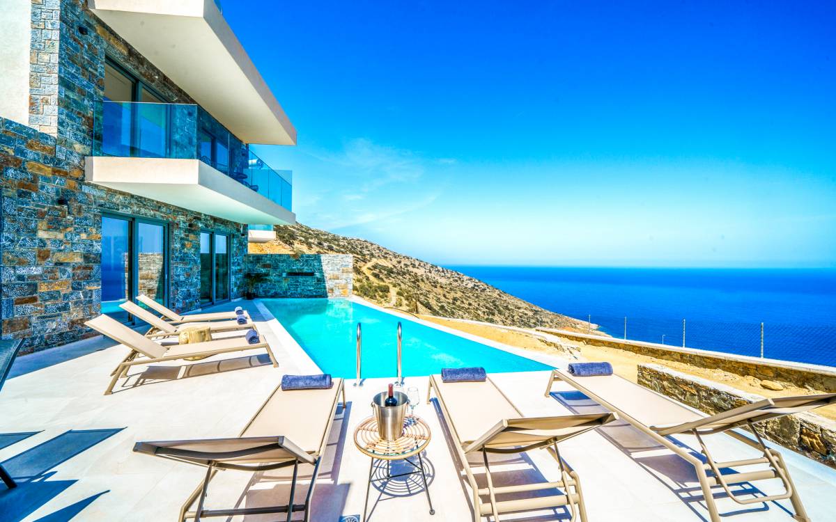 Las villas en Agia Pelagia van desde acogedoras casas para dos personas hasta propiedades espaciosas para familias numerosas, con jardines privados, piscinas, vistas al mar y servicios exclusivos como chef privado, masajes o asistencia personalizada.