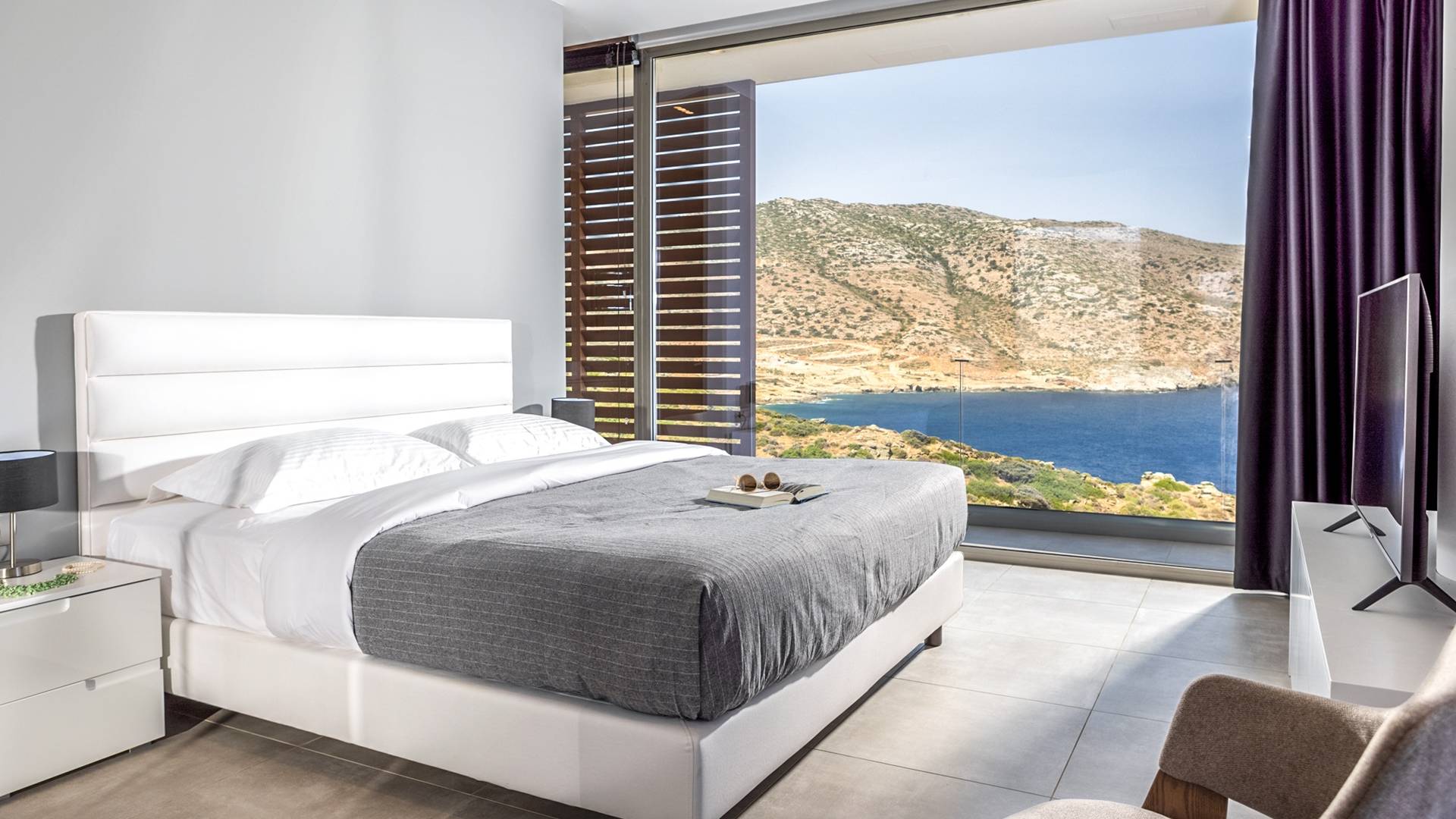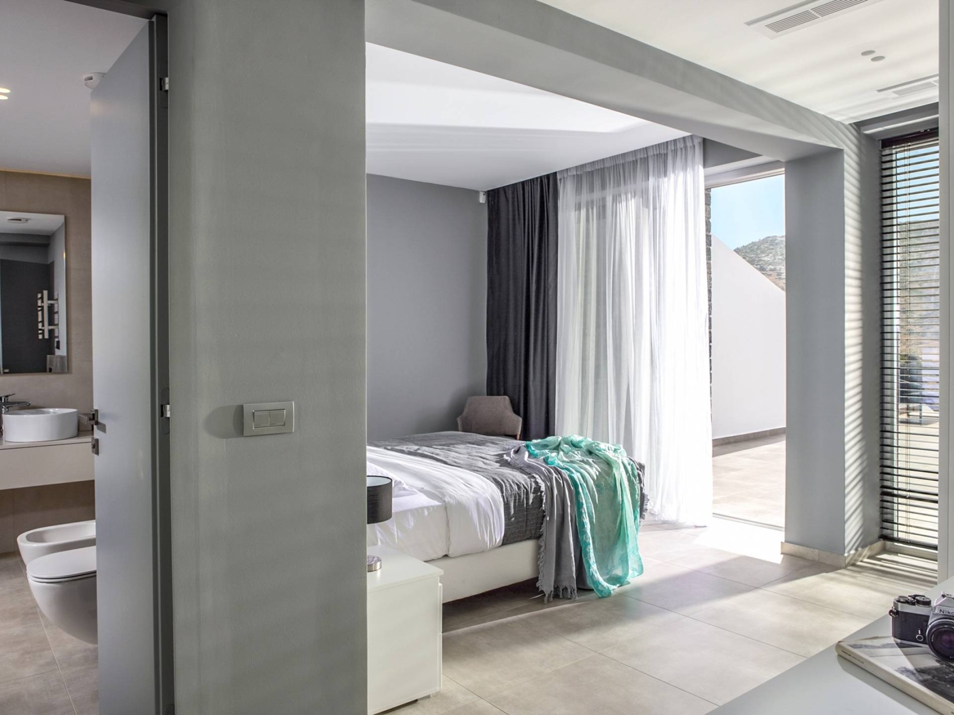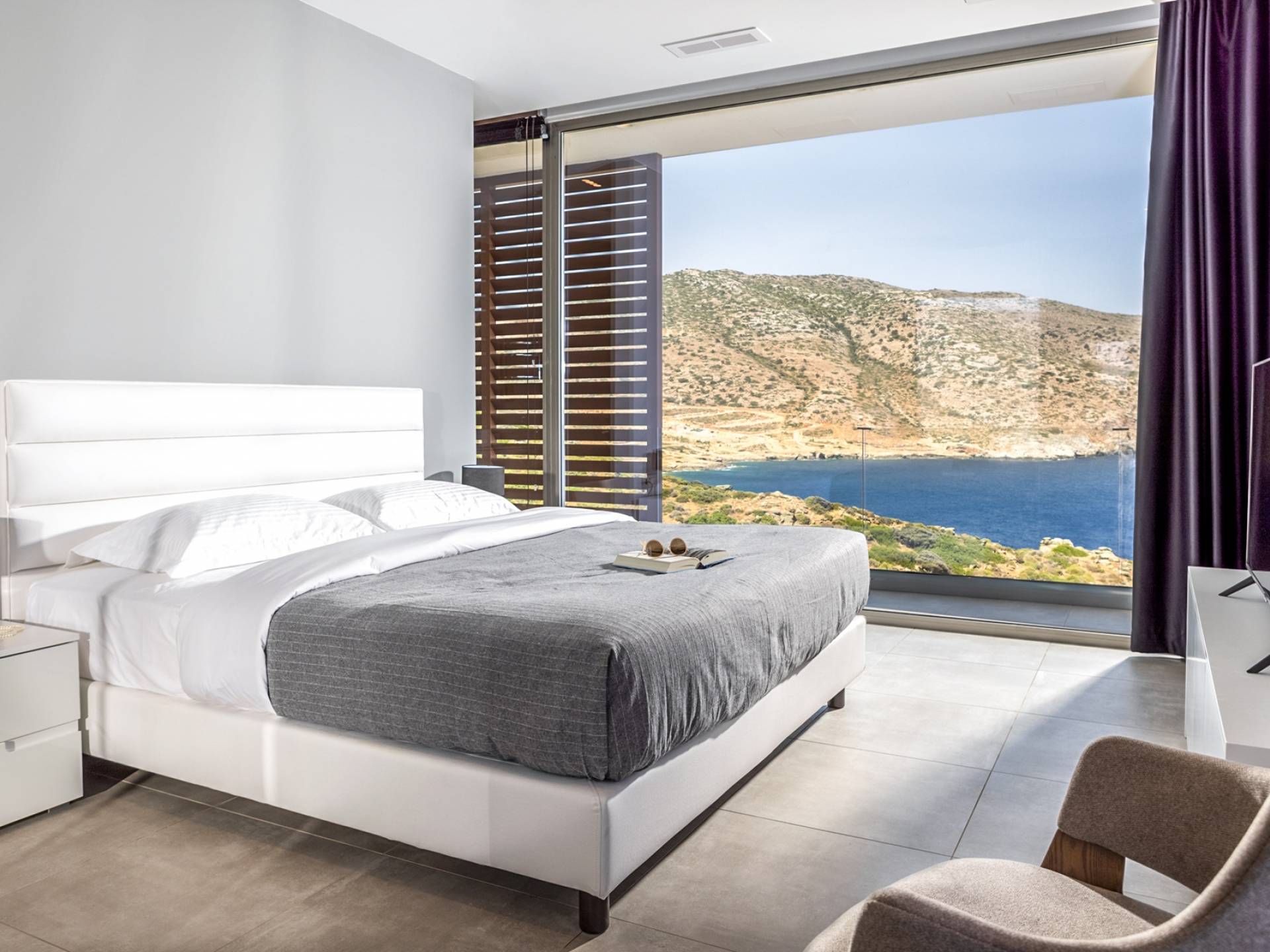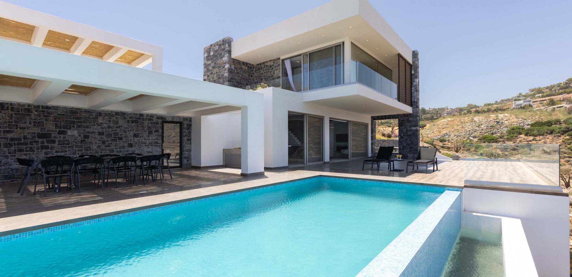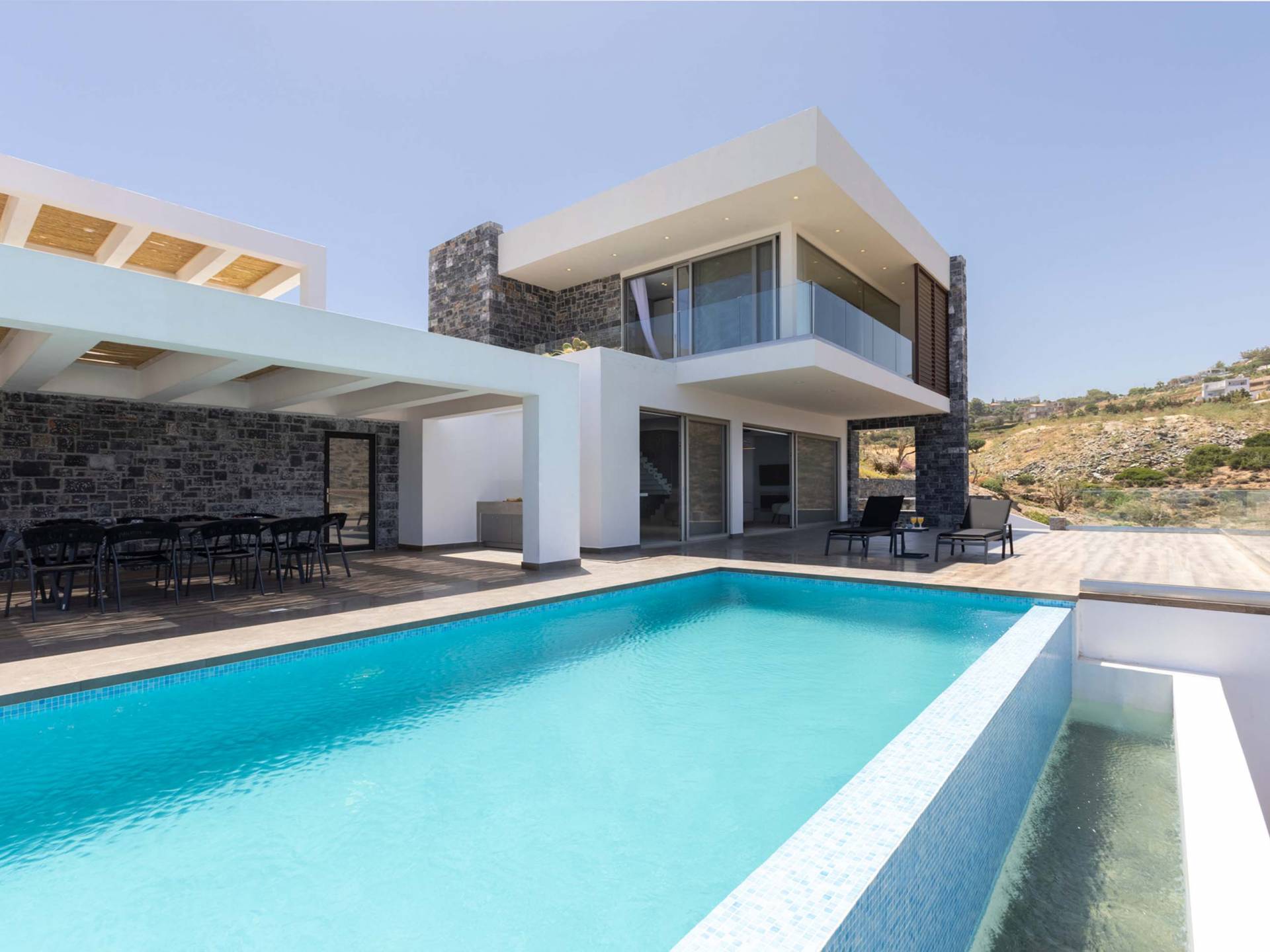 Villa Eros Crete es la villa más grande y exclusiva de Rock Bay Villas, rodeada de un jardín mediterráneo con vistas panorámicas al mar y una piscina privada de agua dulce