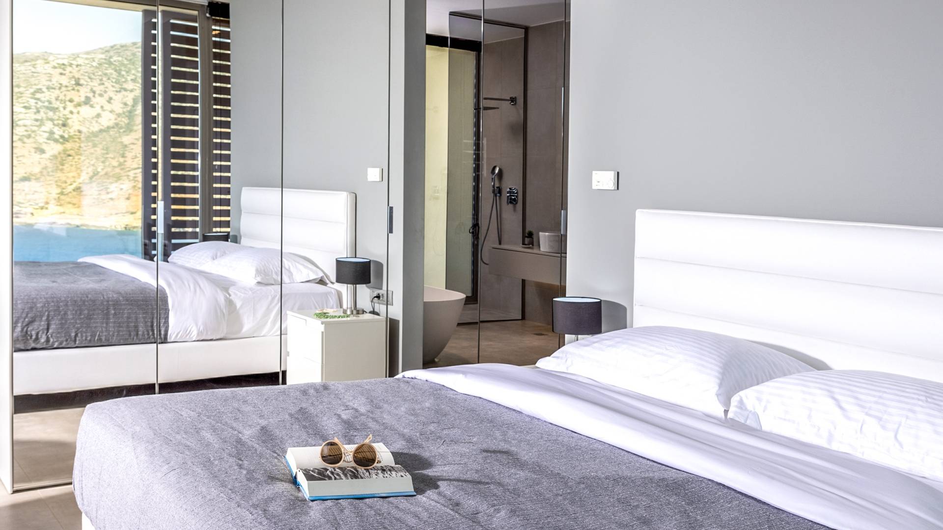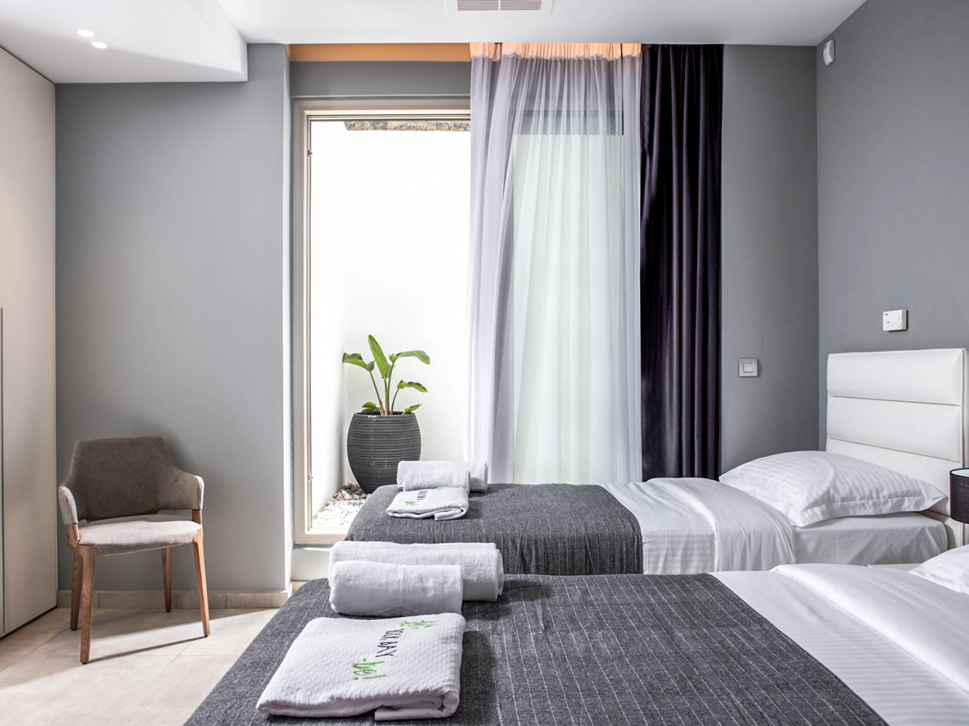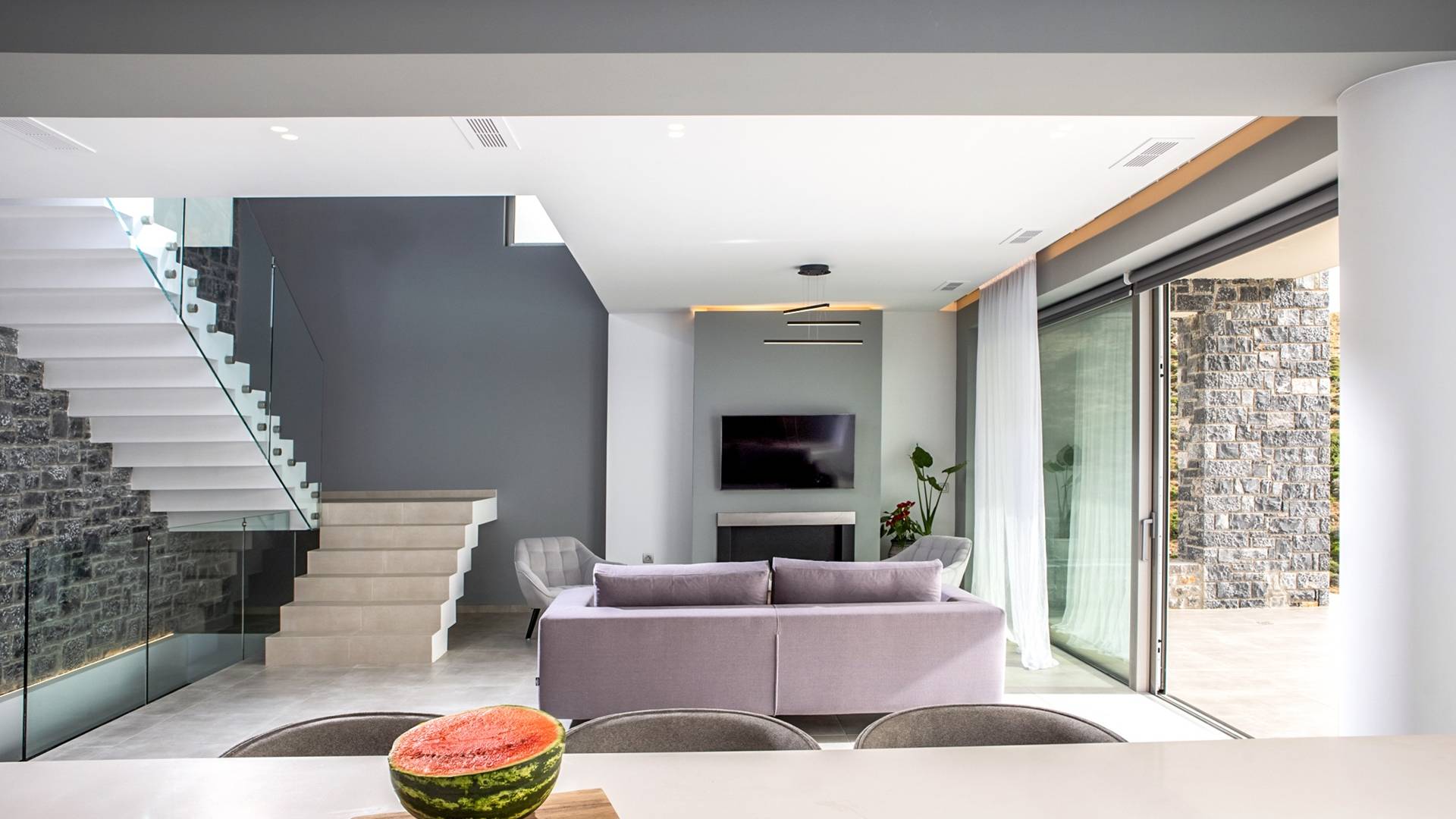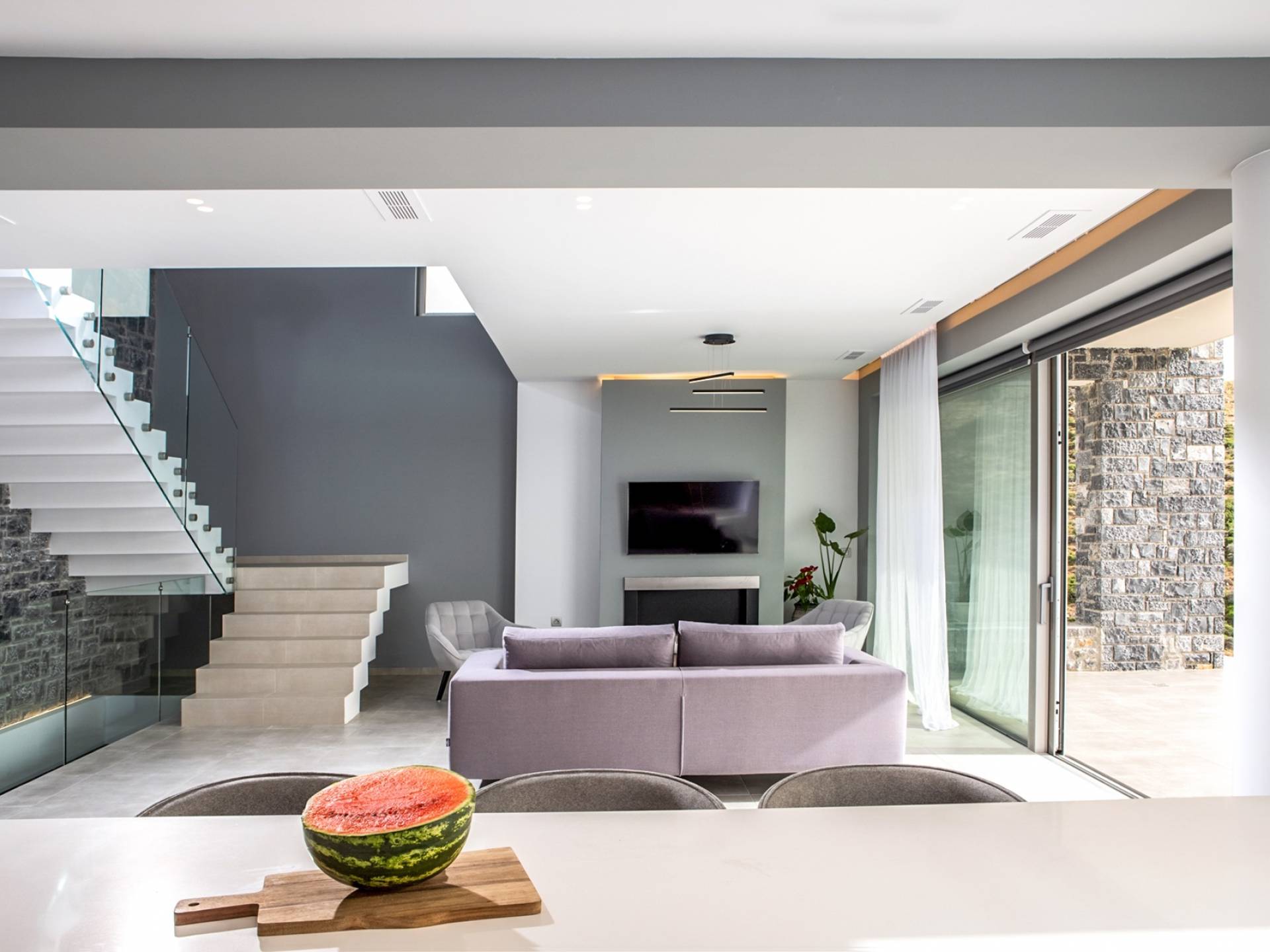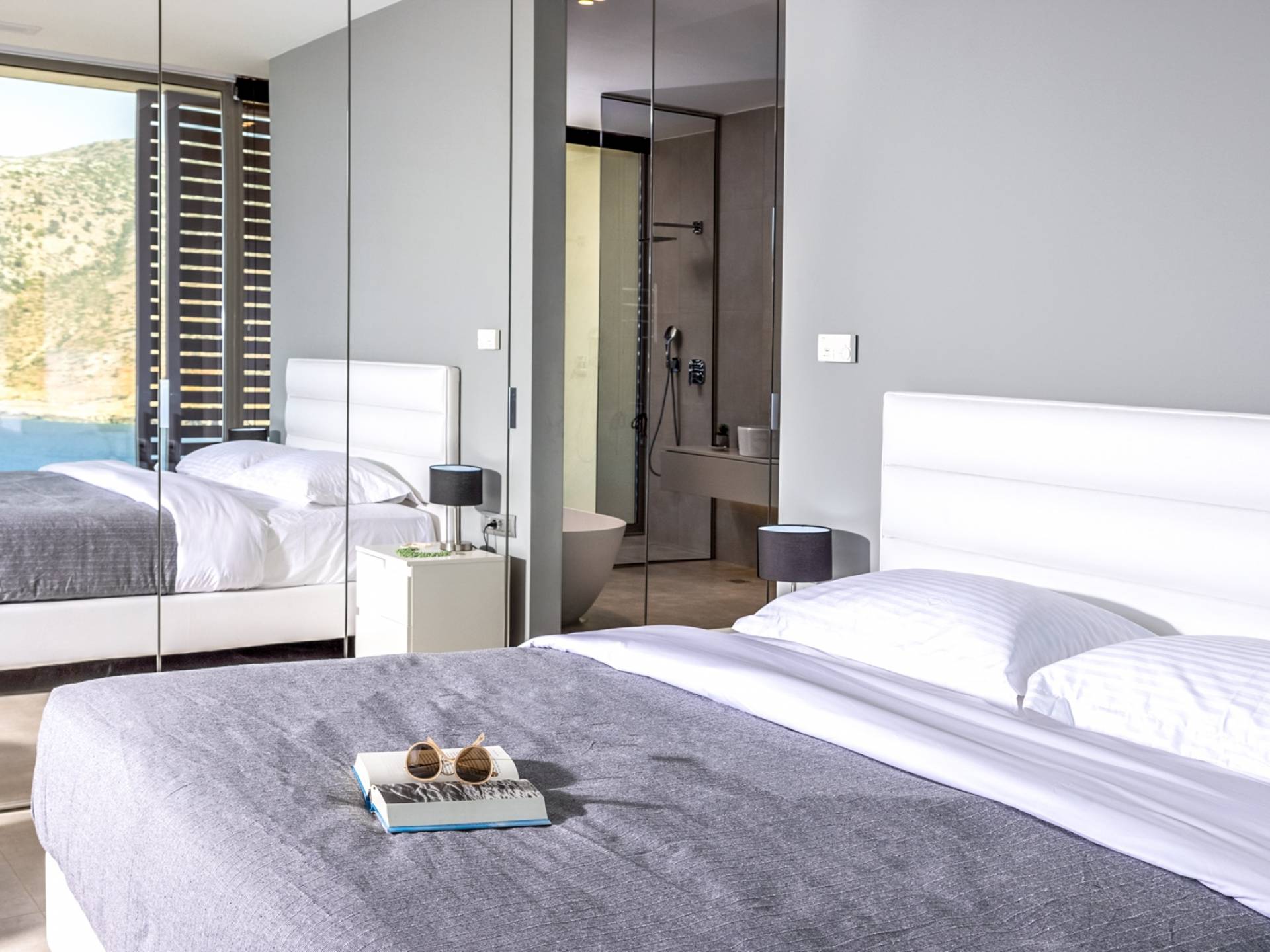 Villa Eros Crete es la villa más grande y exclusiva de Rock Bay Villas, rodeada de un jardín mediterráneo con vistas panorámicas al mar y una piscina privada de agua dulce