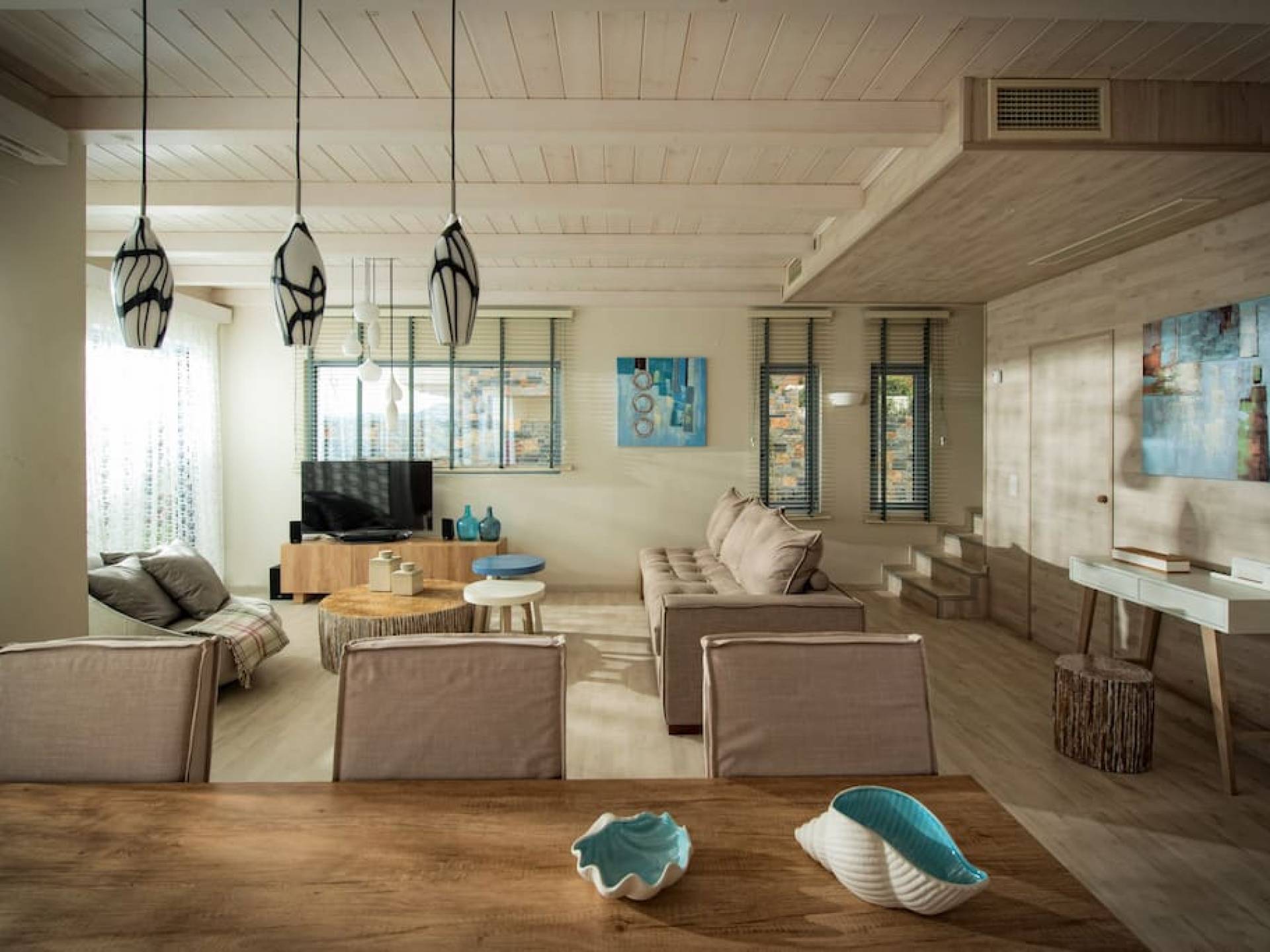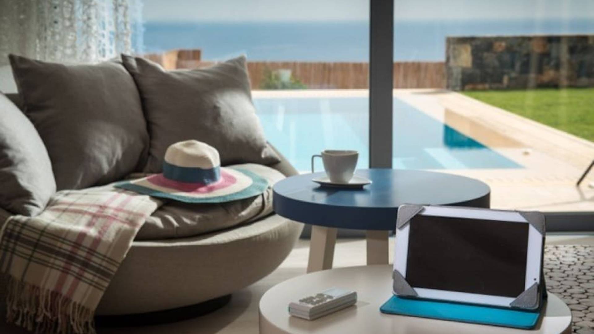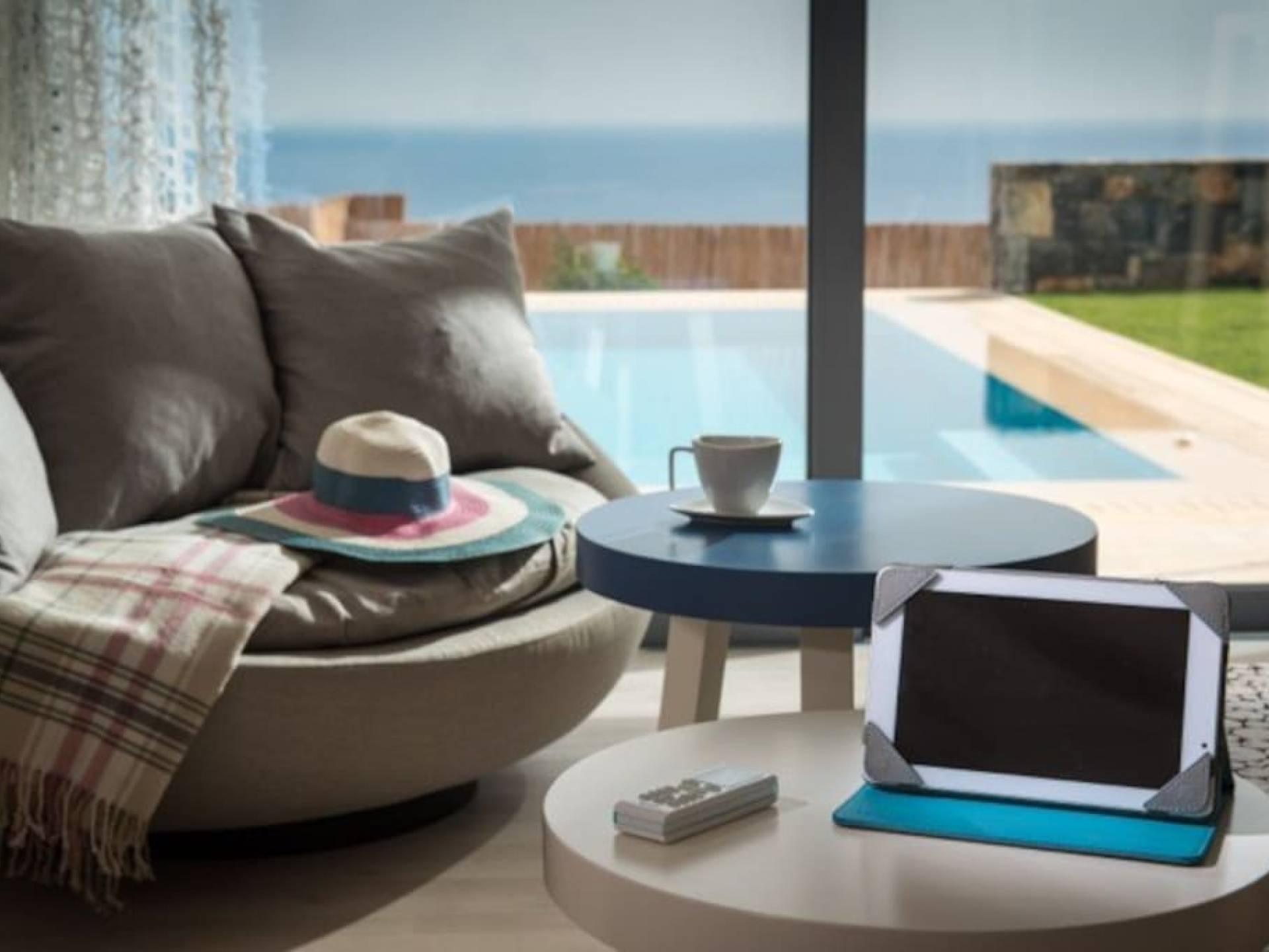 Villa Greece Creta tiene cocina abierta totalmente equipada, comedor, WC con lavadora, secadora y plancha, una gran zona de sofás con TV vía satélite (Smart TV / HD / 3D), home cinema, CD / DVD reproductor, WIFI y teléfono. Villa Greece Creta también tiene un dormitorio principal con bañera de hidromasaje en suite, televisión vía satélite y balcón, 2 habitaciones dobles con televisión vía satélite y balcón, un baño con ducha compartido.