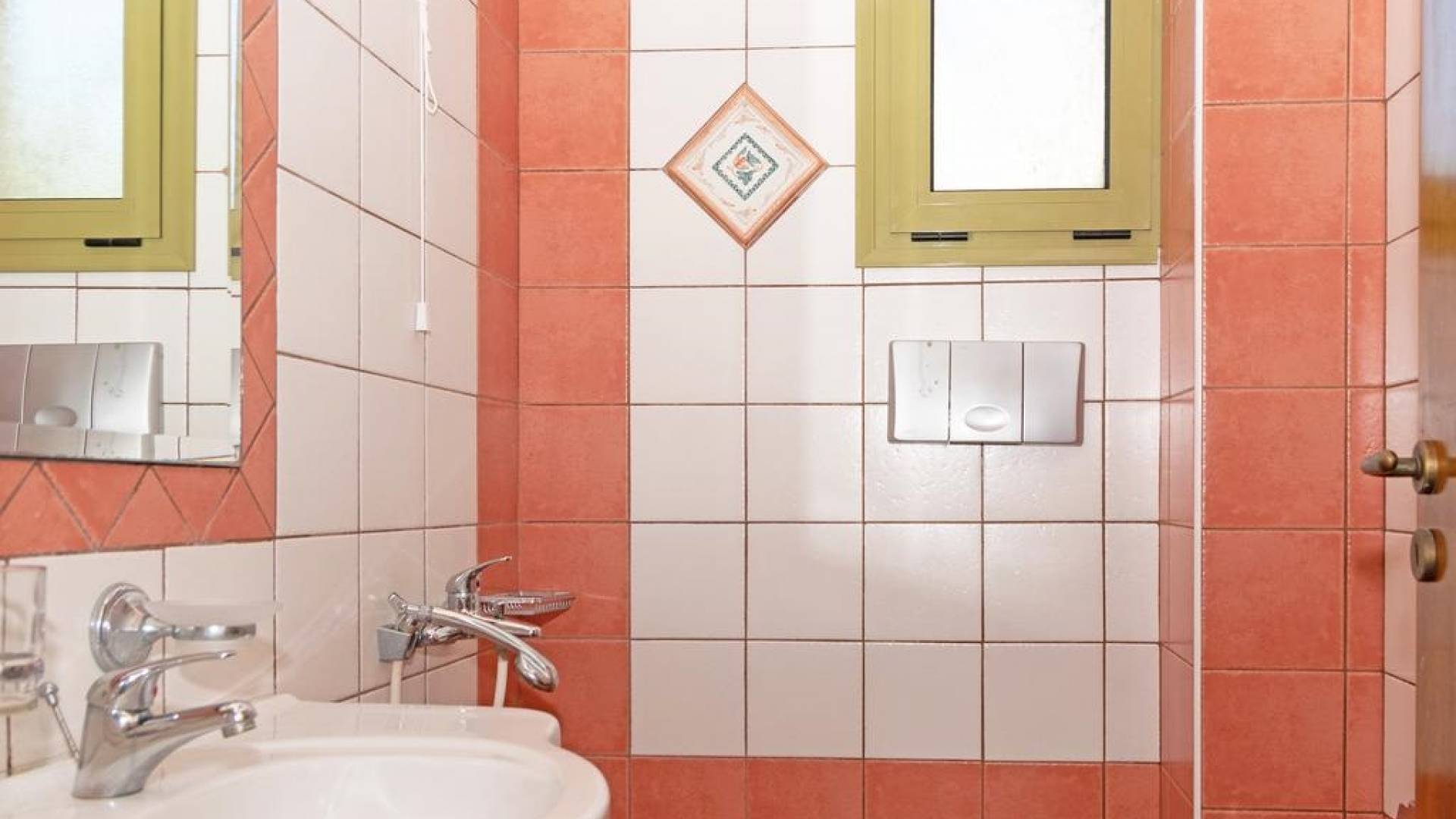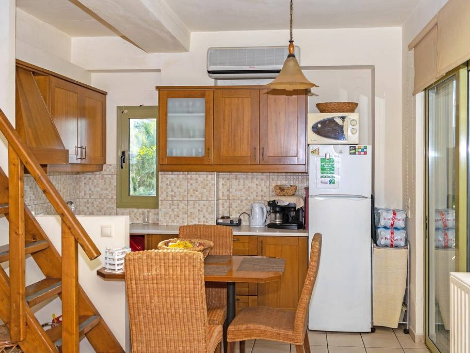 Debajo se encuentra la cocina y el comedor y la sala de estar con chimenea y cómodos sofás. La cocina está bien equipada con un horno grande y fogones, cafetera eléctrica, tetera, nevera/congelador grande, microondas y una completa dotación de platos, cubiertos, vasos y utensilios de cocina. Cualquier otra cosa que necesite, los propietarios de la familia estarán encantados de ayudarle. En la planta baja, al nivel de la piscina, hay una sala de bar con terraza de piscina cubierta pero con fachada de vidrio, y de esta se encuentra el segundo dormitorio con dos camas individuales y un baño privado. Una pequeña habitación contiene una plancha y una tabla de planchar y una lavadora de ropa.