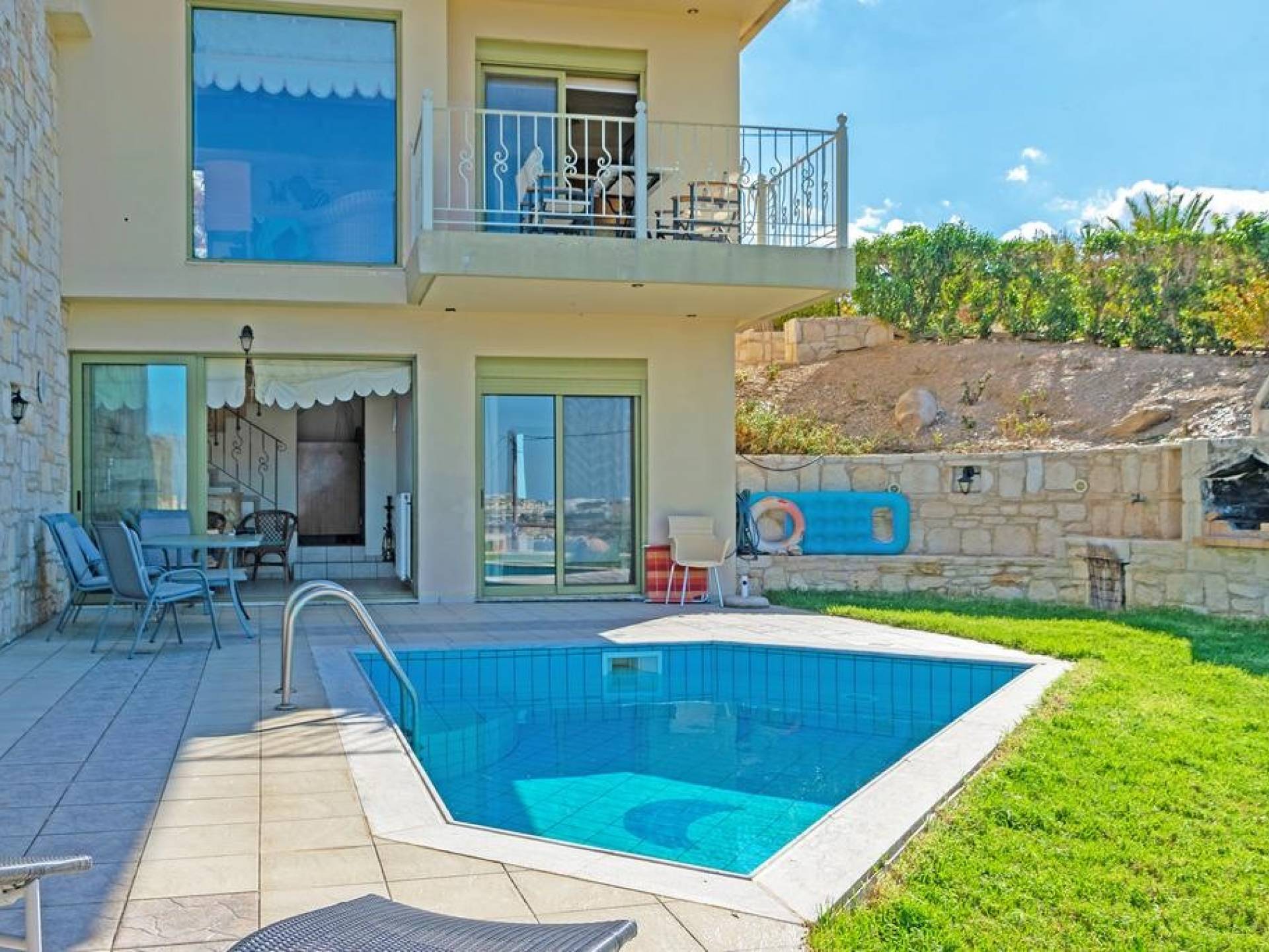 Villa Hyperion Selene Crete tiene capacidad para seis (4+2) y ofrece una sala de estar con muebles de bambú y ventanales que ofrecen vistas panorámicas, 2 habitaciones (una doble/una individual) con baño privado, un sofá cama adicional (para dos personas), un baño adicional, área de bar independiente con muebles que conducen a la terraza, piscina, un jacuzzi exterior en el balcón del piso superior, una cocina de planta abierta totalmente equipada que consta de estufa, refrigerador, tetera , cafetera, etc. y Aire acondicionado en todas las habitaciones.