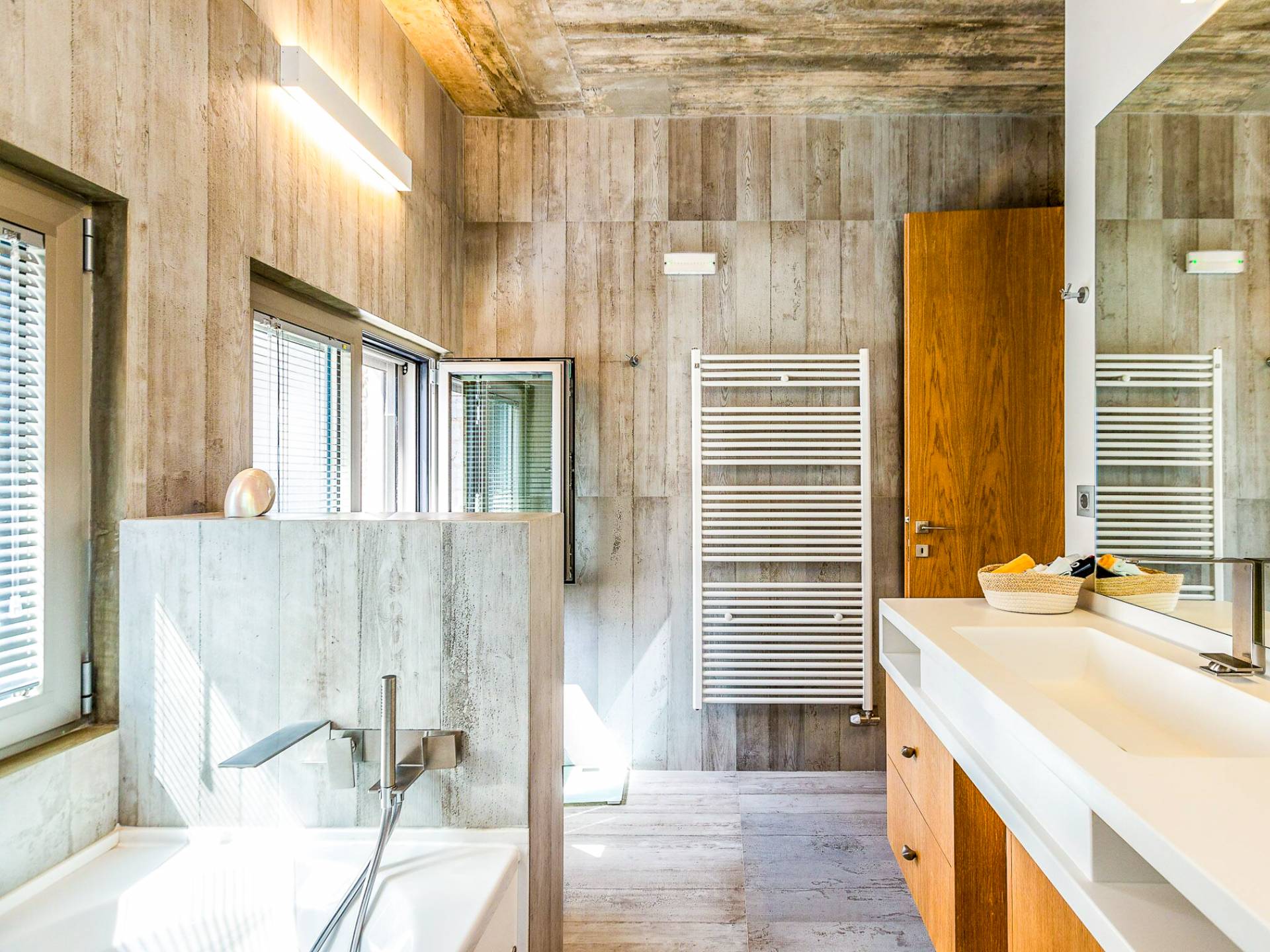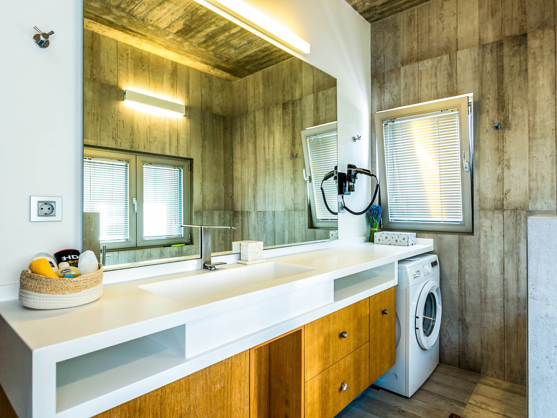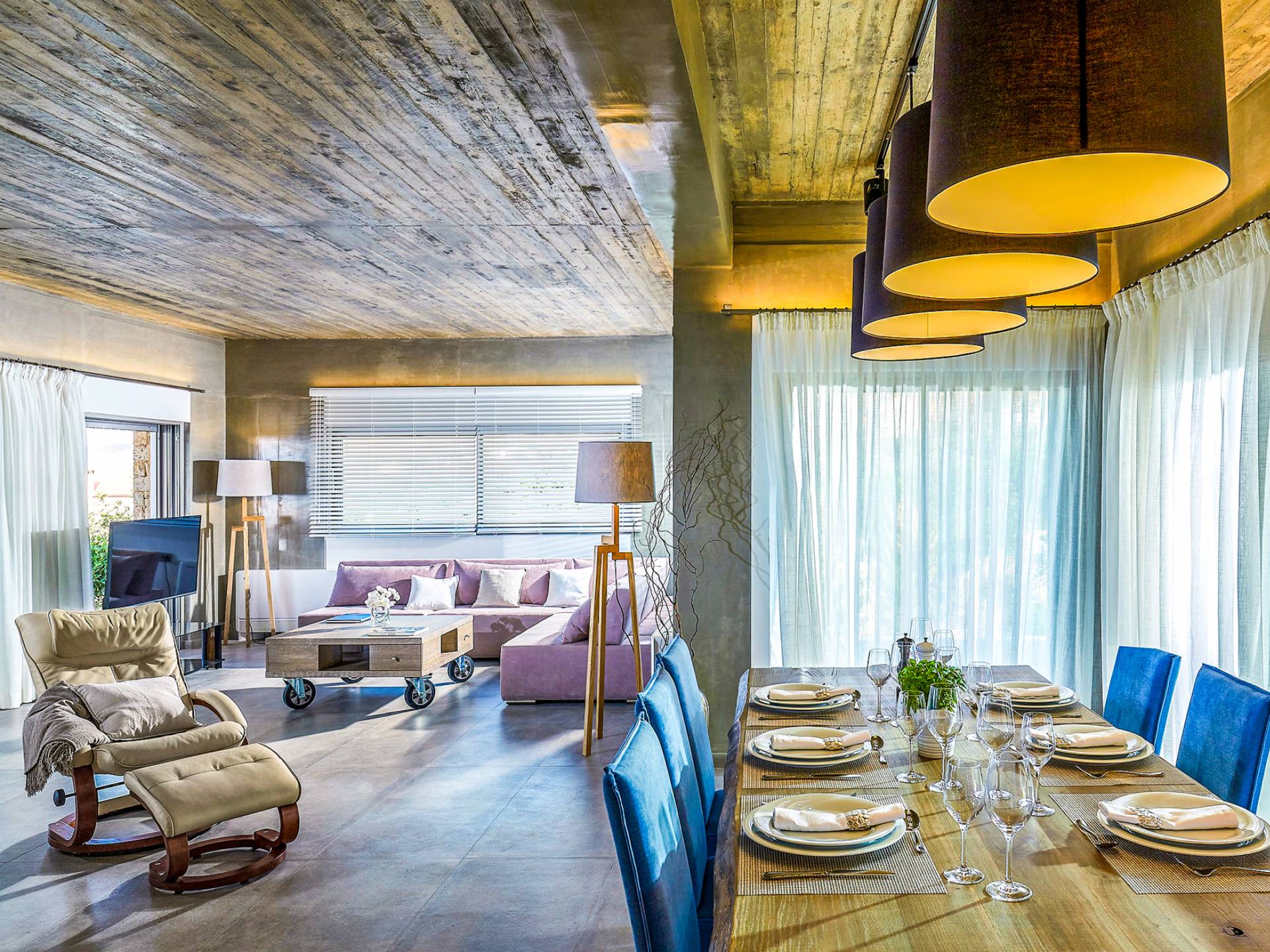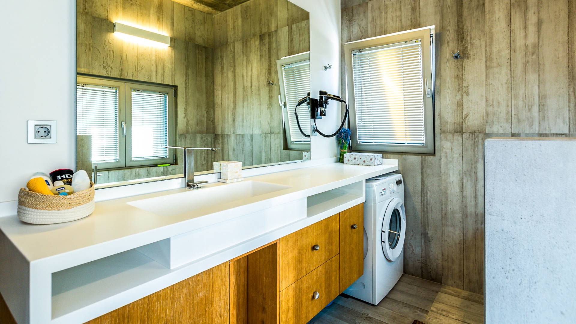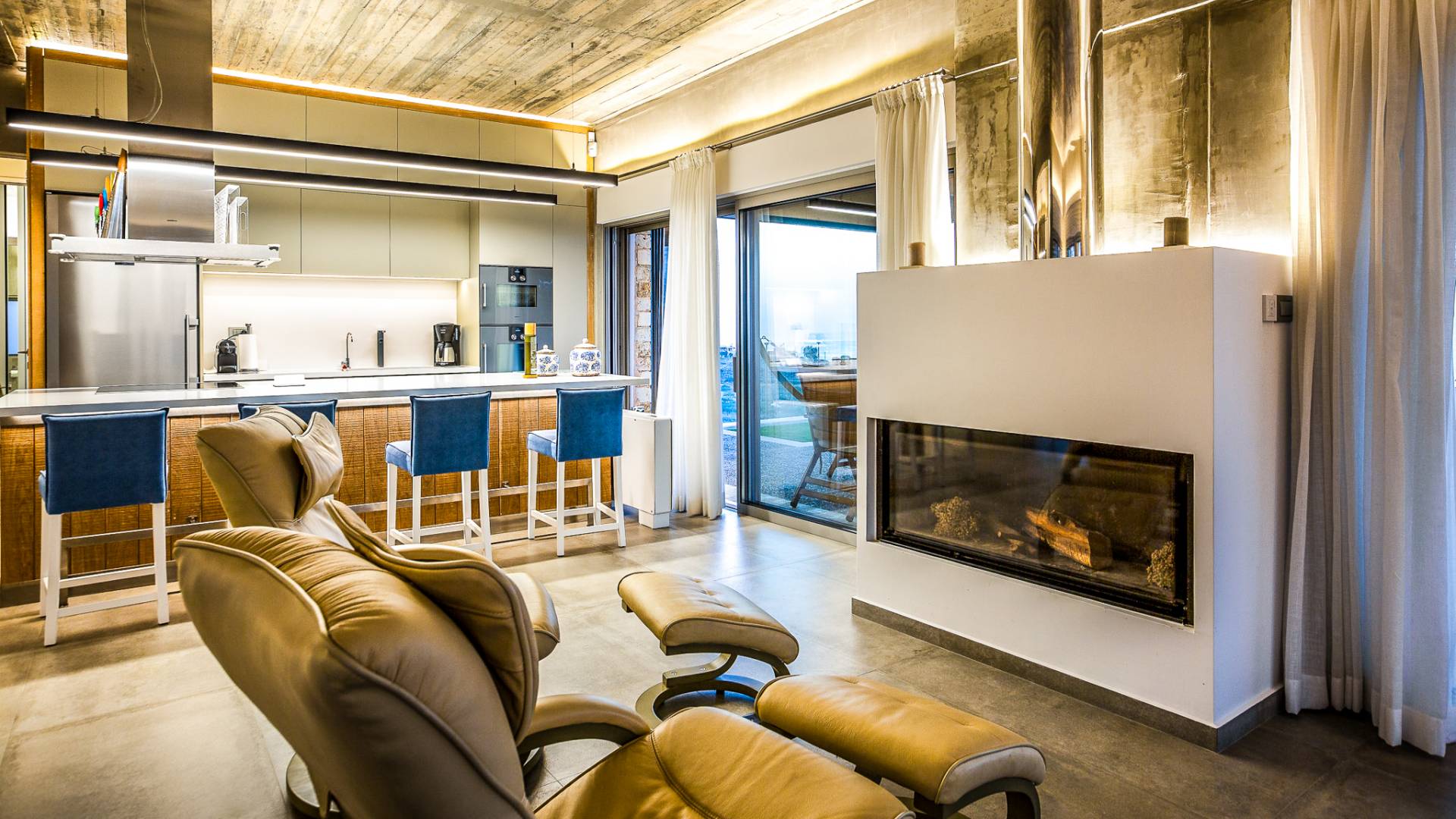 Este diseño arquitectónico lujoso y minimalista es una mezcla de madera y hormigón, mientras que el exterior industrial único se mezcla armoniosamente con el paisaje, lo que da como resultado el equilibrio perfecto entre el hombre y la naturaleza.