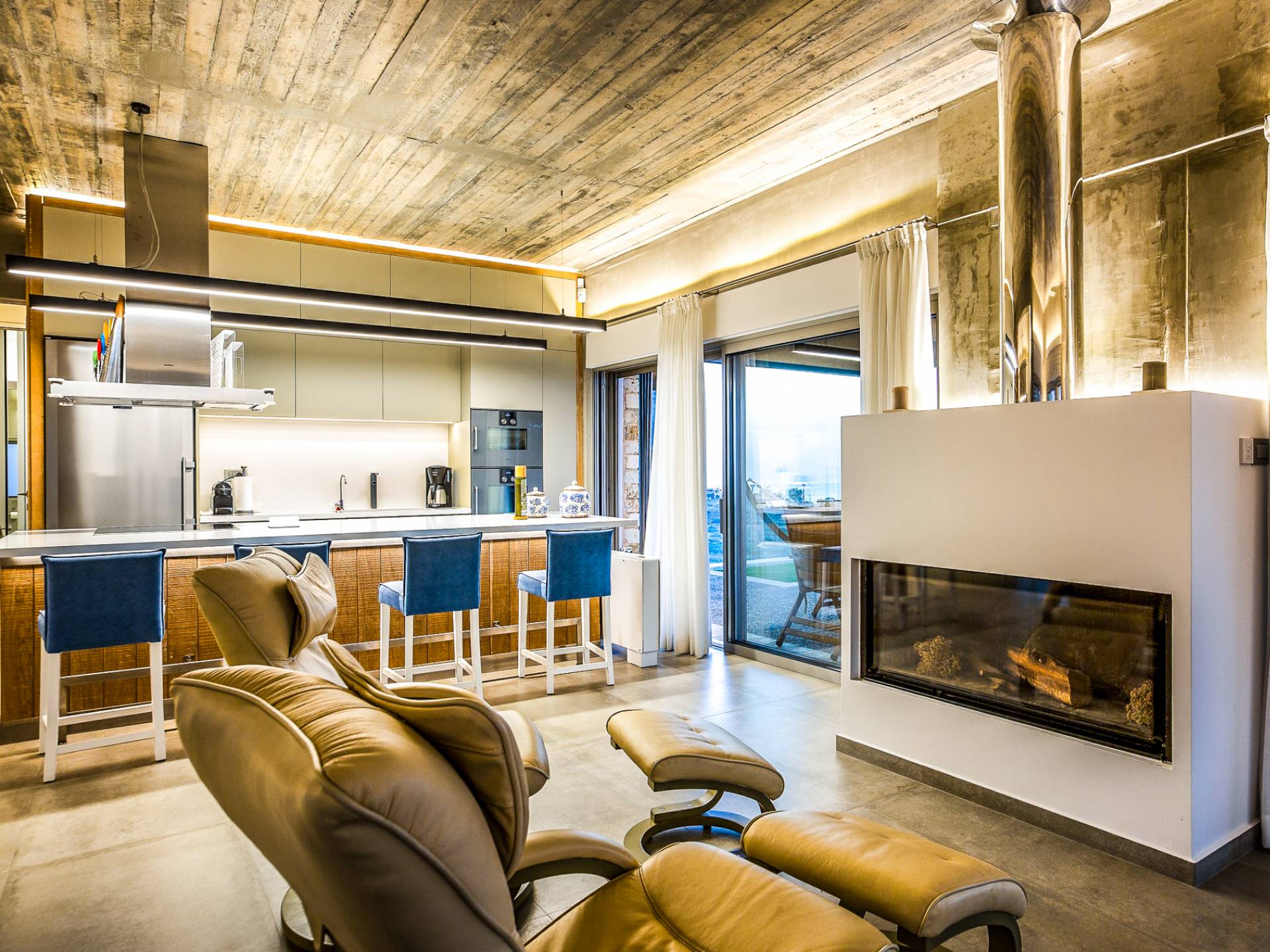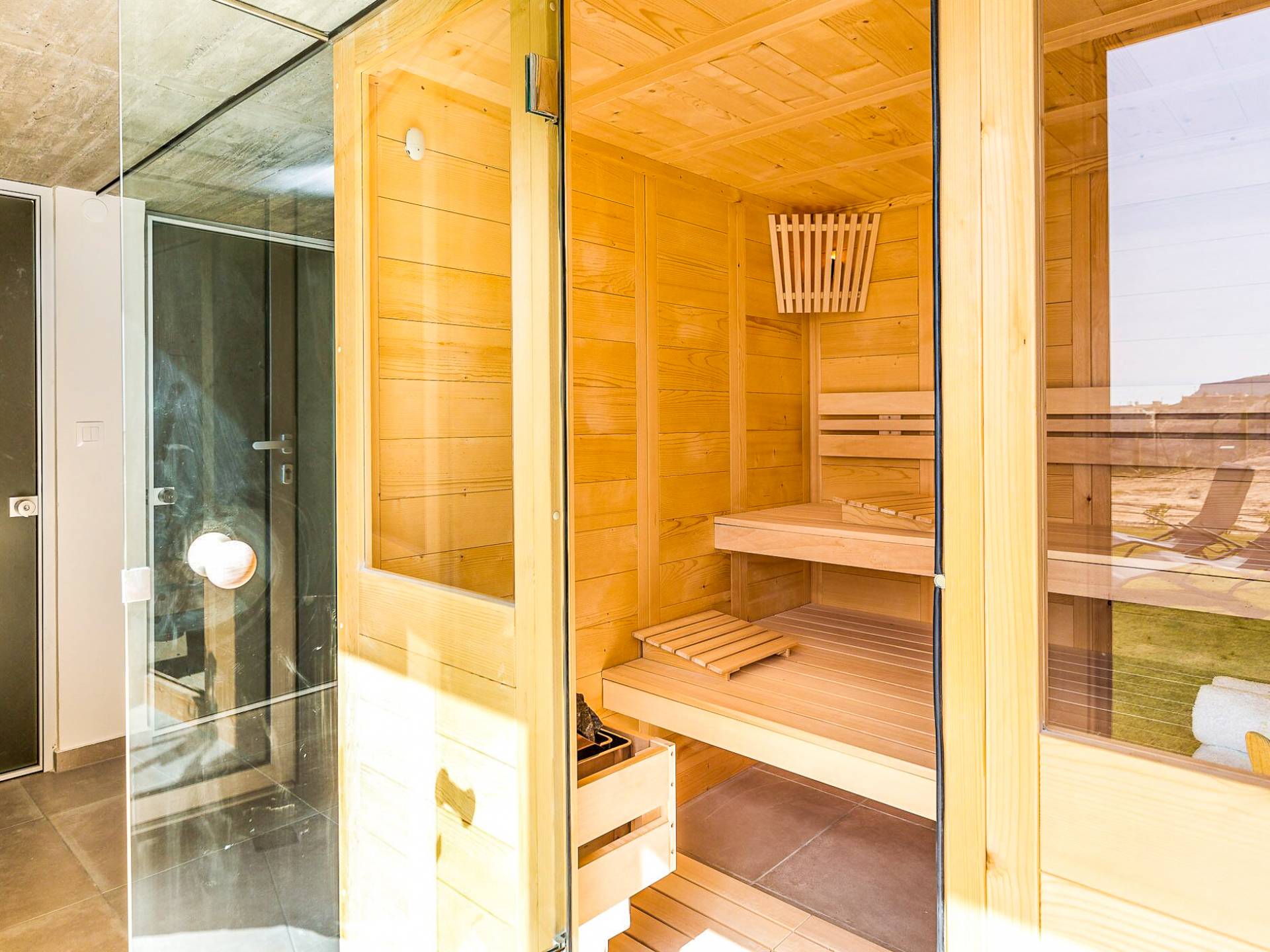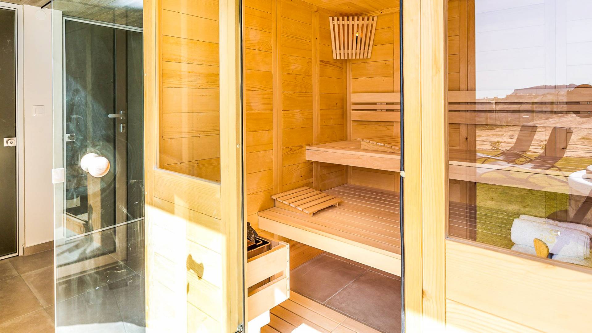 Disfruta de la piscina climatizada de última generación o del hidromasaje y relájate contemplando la magnífica vista panorámica mientras durante los meses de invierno disfrutas de un baño en el agua de la piscina climatizada por la mañana y de momentos de relax en el salón junto a la chimenea al atardecer.