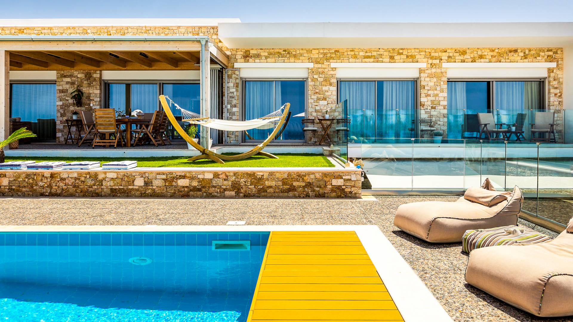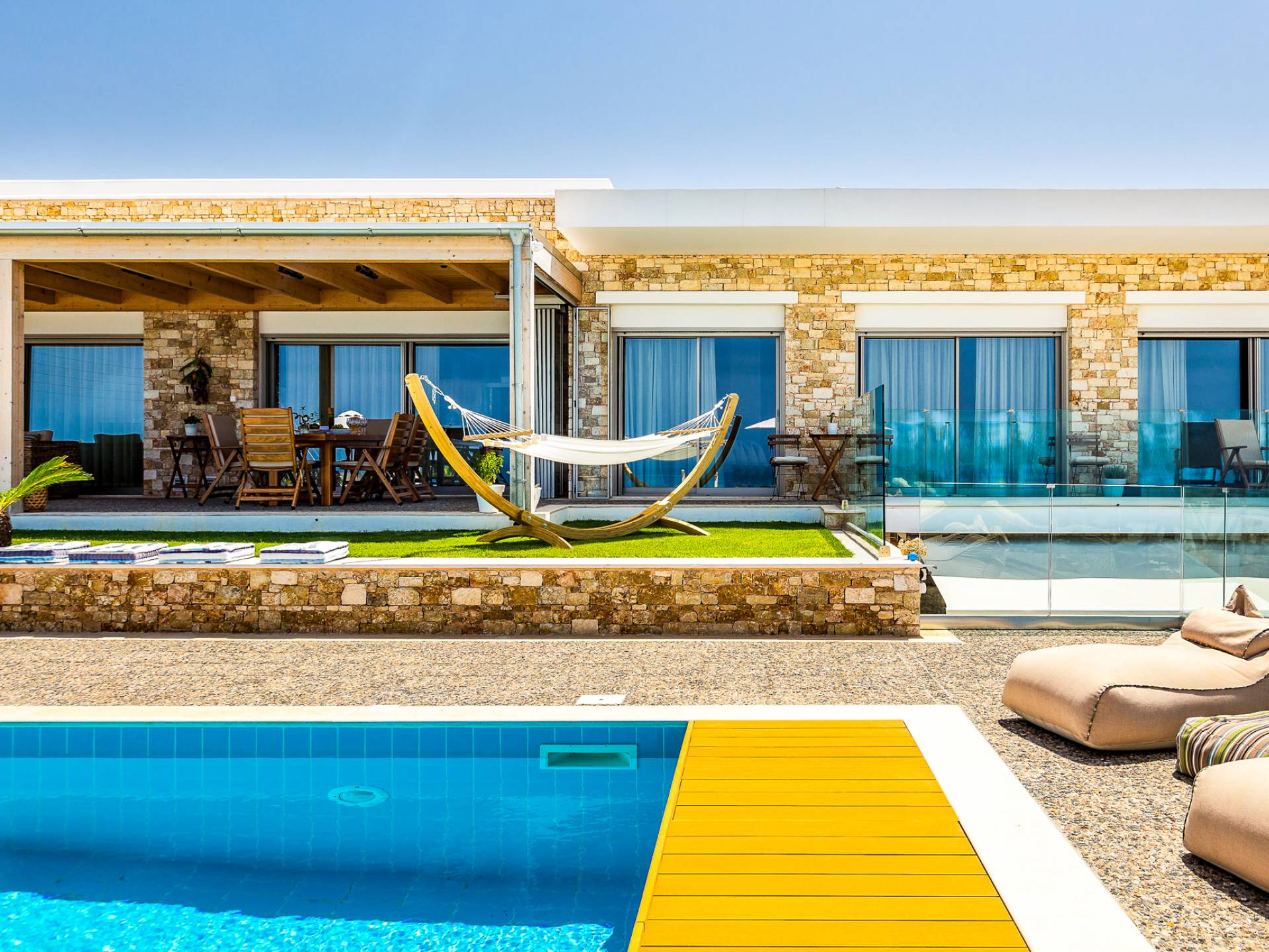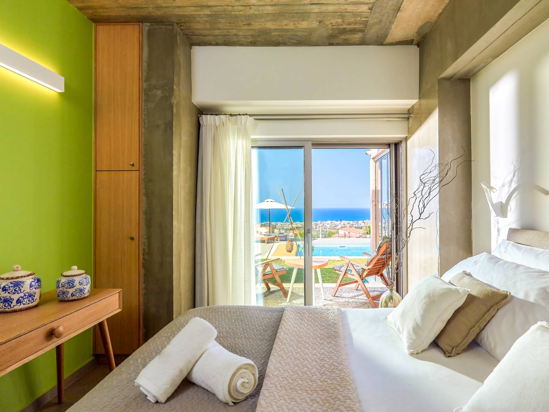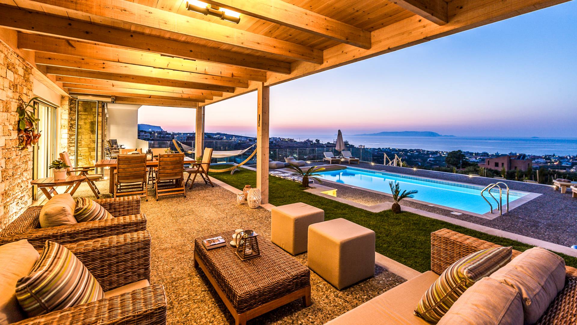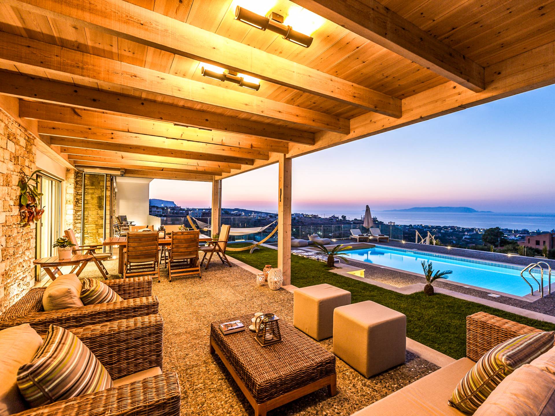 Villa Kaia Creta se caracteriza por un estilo único que no sigue las tendencias sino que crea una tendencia en sí misma. Villa Kaia Creta se encuentra en la punta de Heraklion, sobre la hermosa bahía del pueblo Kokkini Hani. Villa Kaia Creta abraza la gracia y la belleza del entorno natural. La experiencia de alojamiento brindada en la villa ofrece instalaciones seguras y modernas, espléndidas vistas al mar y momentos de relajación con impresionantes colores desde el amanecer hasta el atardecer.
