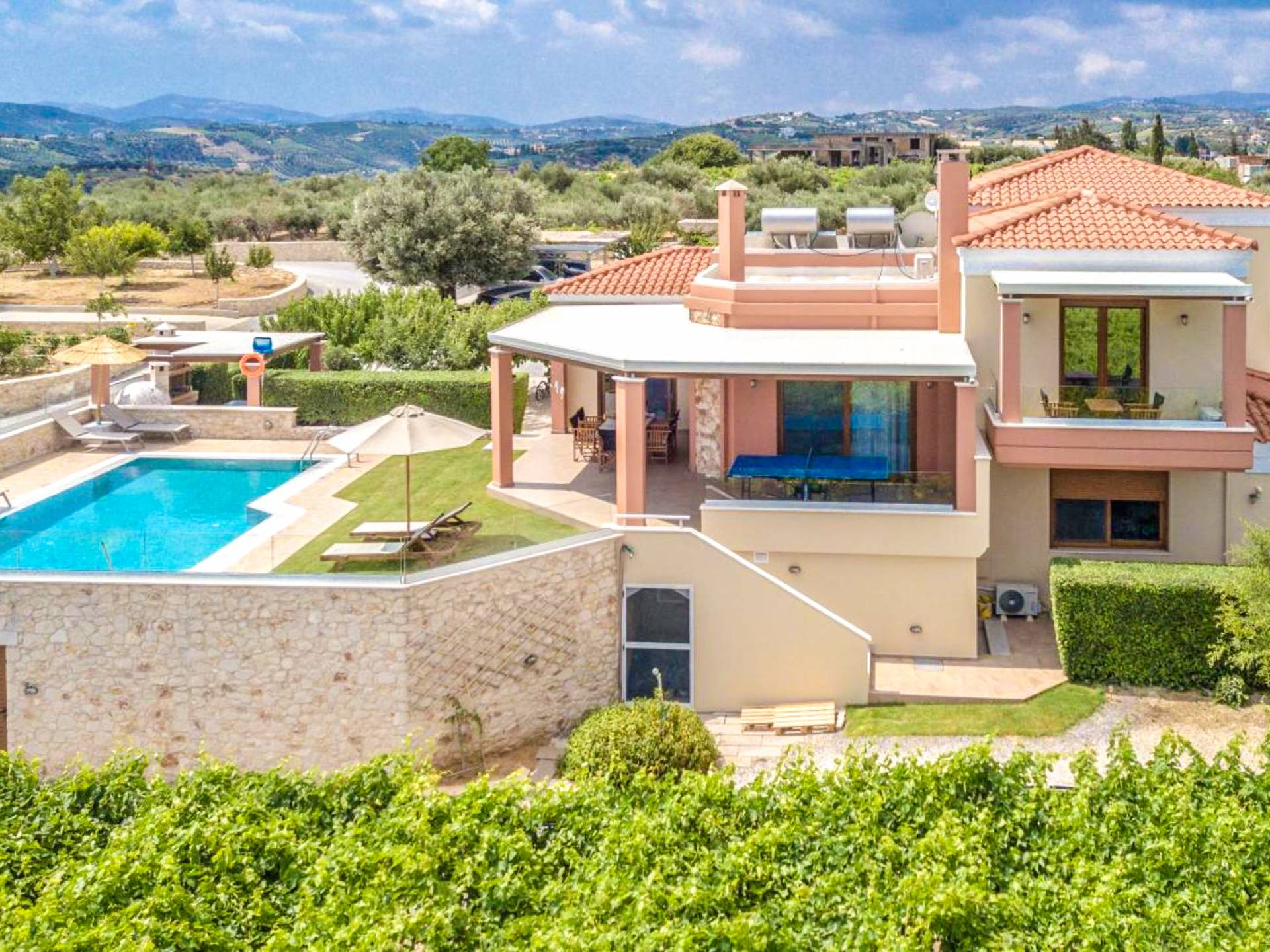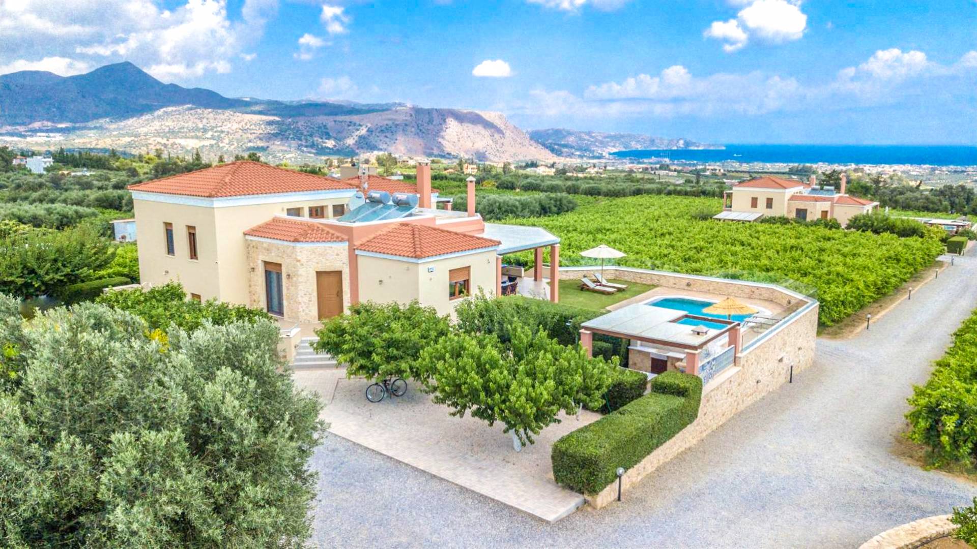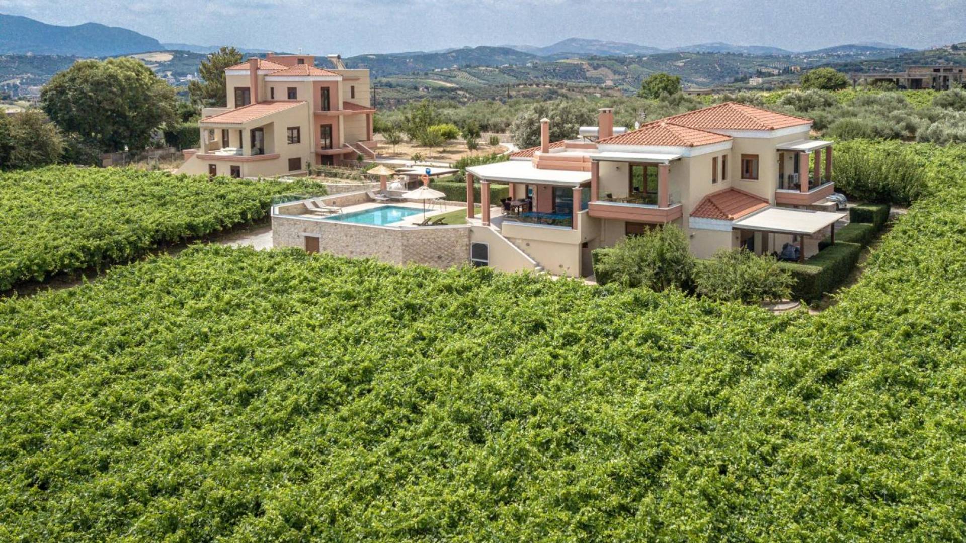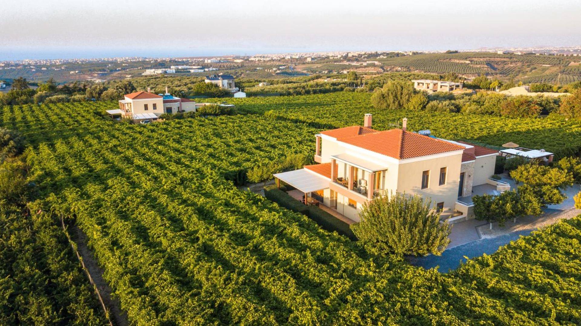 La villa está ubicada justo en el centro de Creta y está rodeada por veinte acres de viñedos orgánicos. Combina vistas al mar, vistas a la montaña y vistas panorámicas de la ciudad de Heraklion. Está en el lugar perfecto para aquellos que deseen explorar la isla y visitar hermosas playas, pueblos tradicionales o nuestras grandes ciudades, y muchos otros puntos de interés. ¡Es adecuado para parejas, niños y grupos grandes!