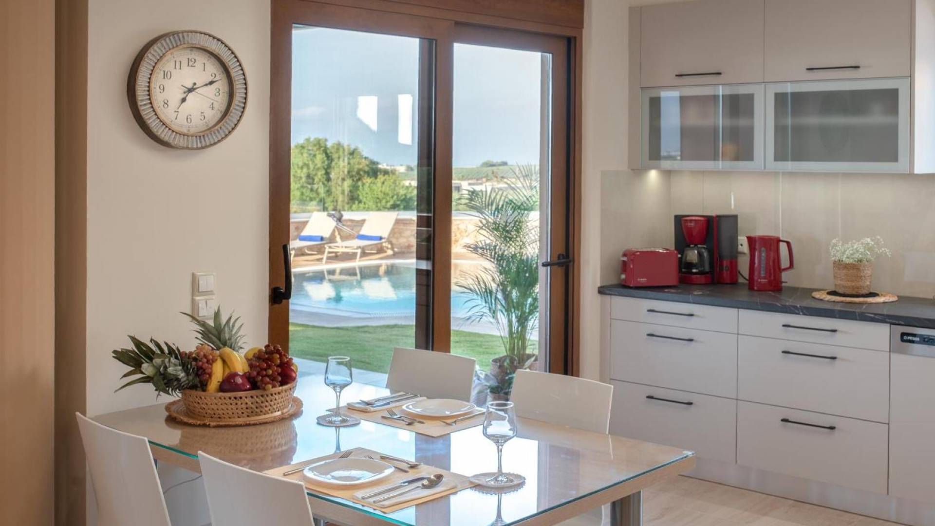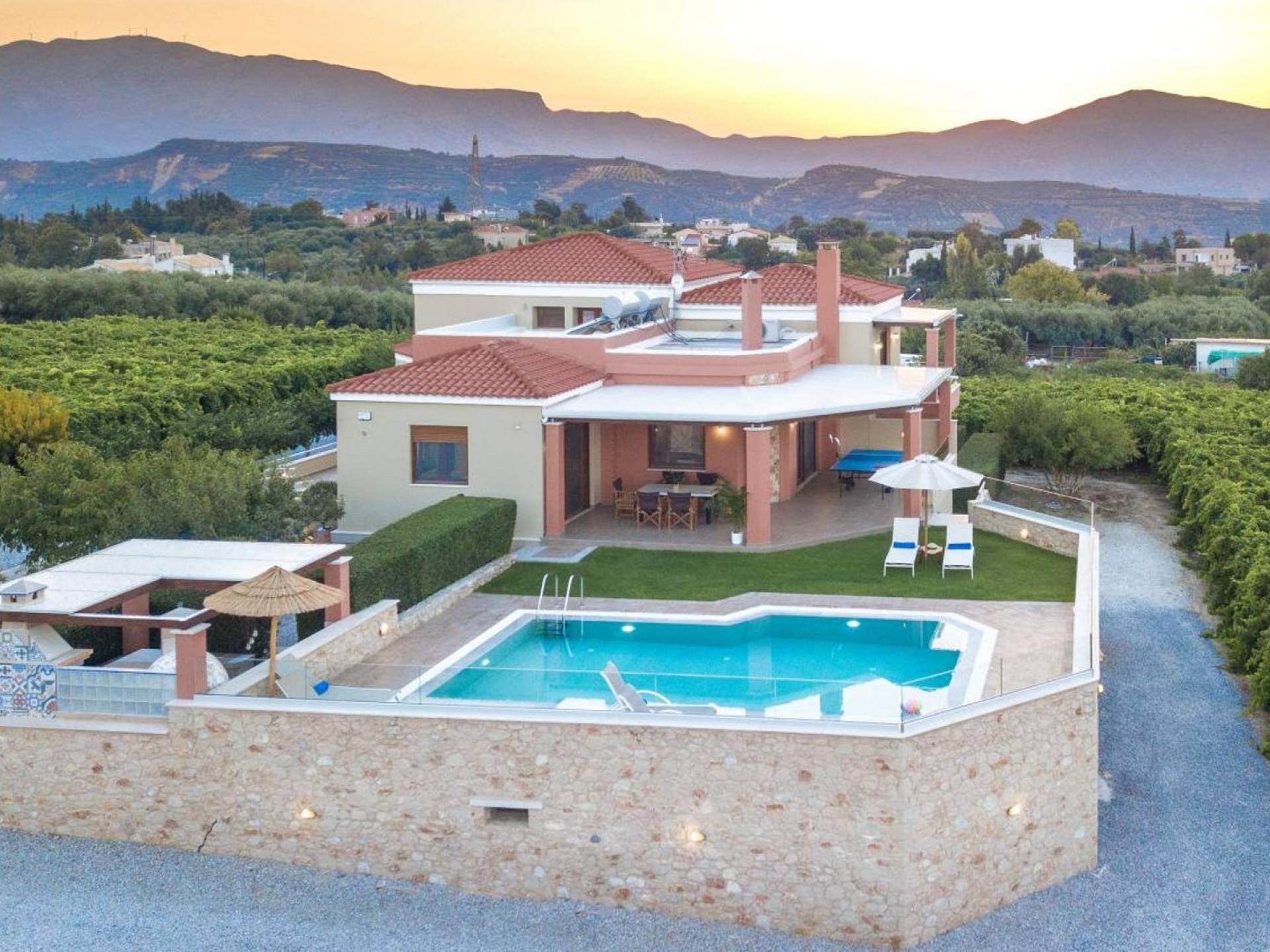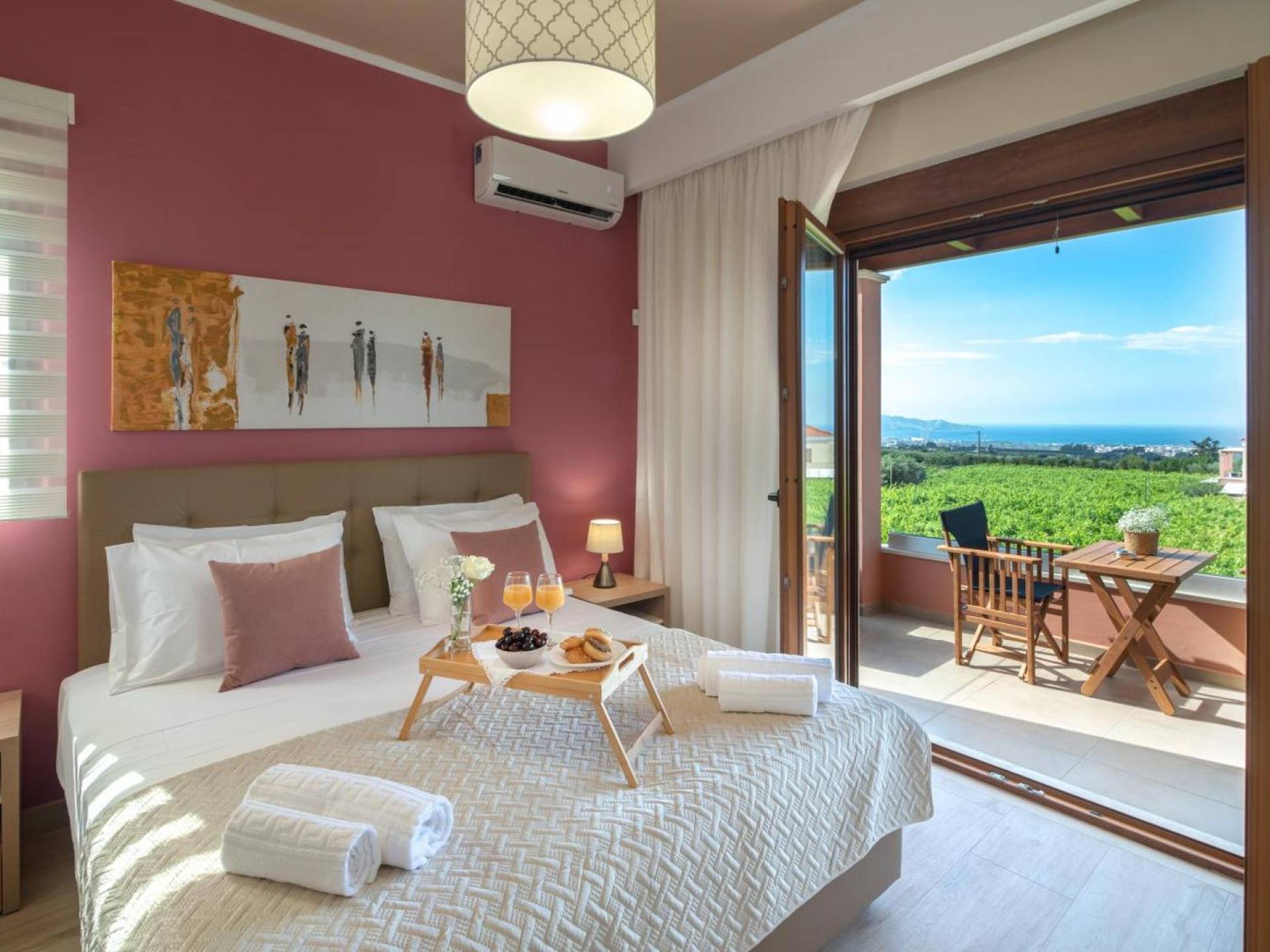 La villa está ubicada justo en el centro de Creta y está rodeada por veinte acres de viñedos orgánicos. Combina vistas al mar, vistas a la montaña y vistas panorámicas de la ciudad de Heraklion. Está en el lugar perfecto para aquellos que deseen explorar la isla y visitar hermosas playas, pueblos tradicionales o nuestras grandes ciudades, y muchos otros puntos de interés. ¡Es adecuado para parejas, niños y grupos grandes!