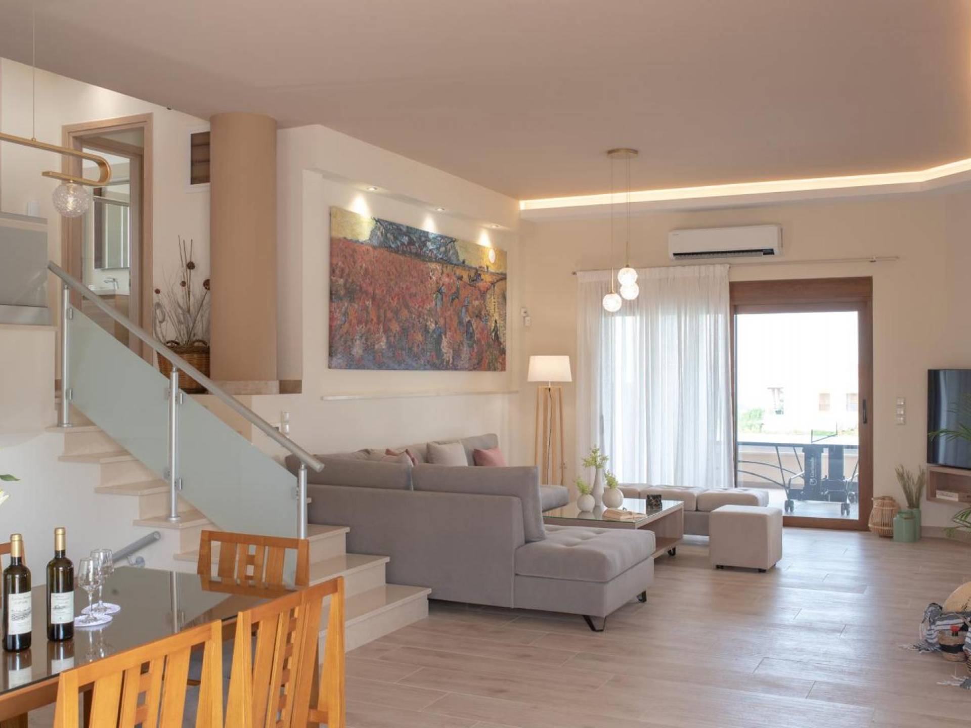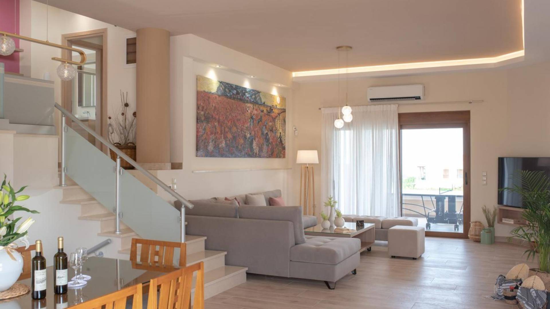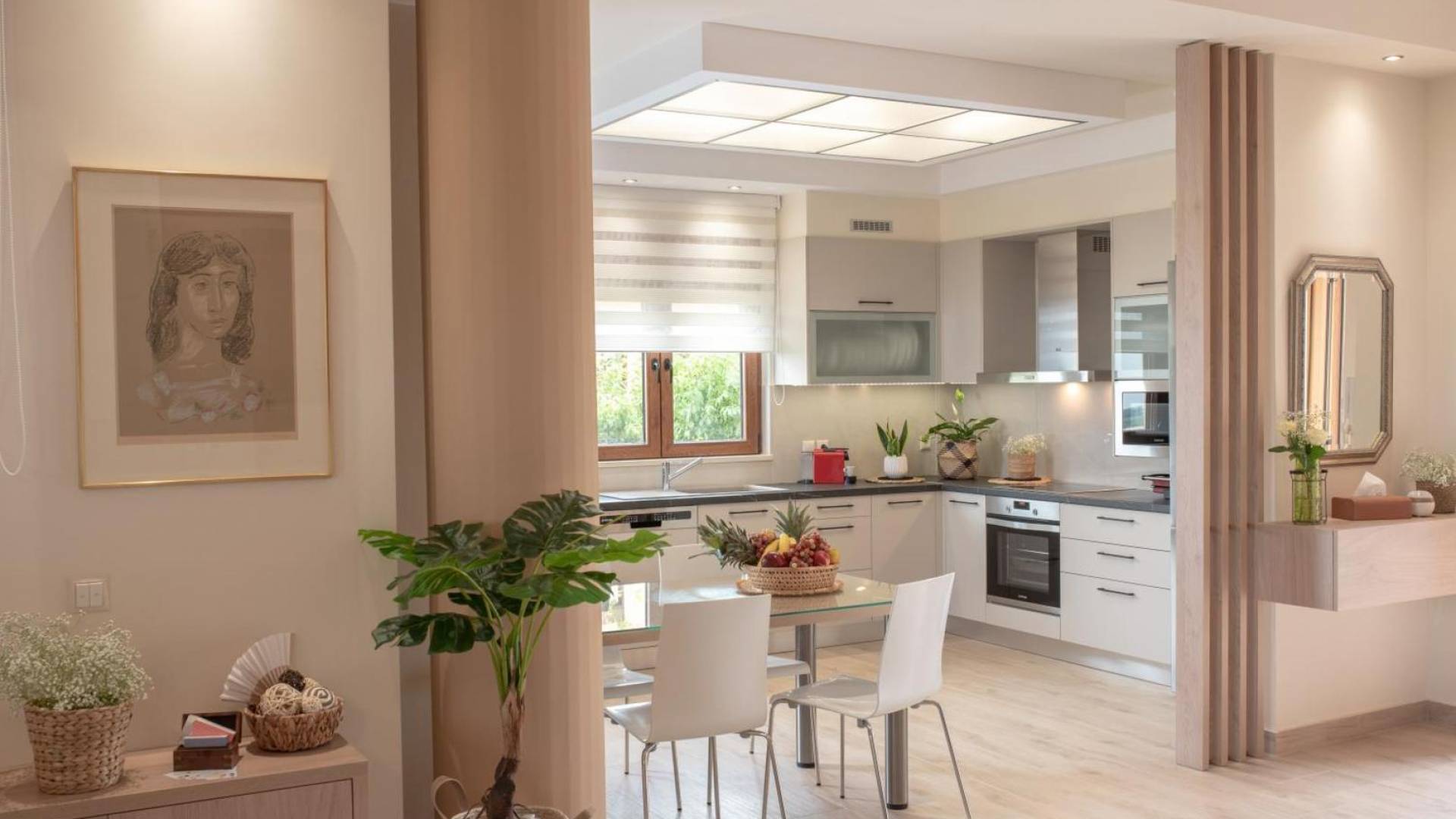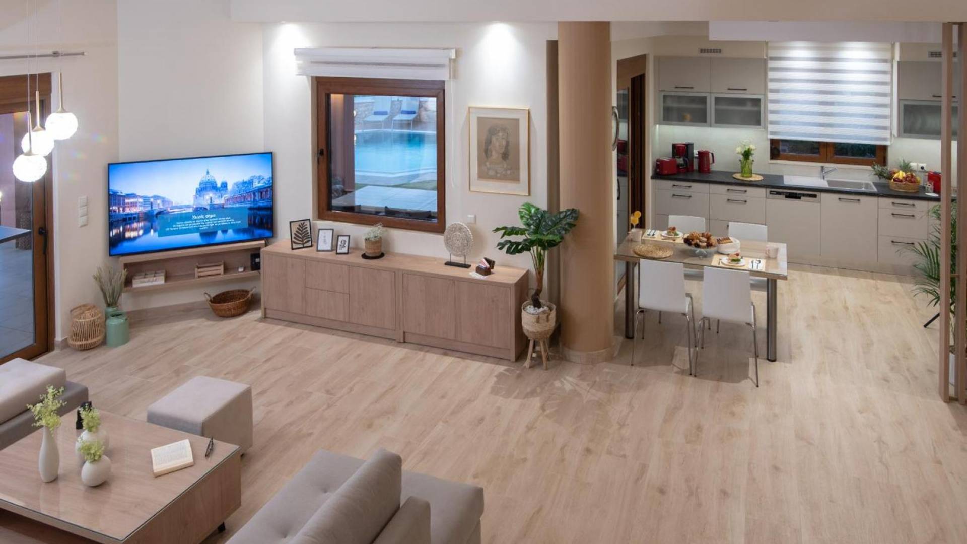 La villa está ubicada justo en el centro de Creta y está rodeada por veinte acres de viñedos orgánicos. Combina vistas al mar, vistas a la montaña y vistas panorámicas de la ciudad de Heraklion. Está en el lugar perfecto para aquellos que deseen explorar la isla y visitar hermosas playas, pueblos tradicionales o nuestras grandes ciudades, y muchos otros puntos de interés. ¡Es adecuado para parejas, niños y grupos grandes!