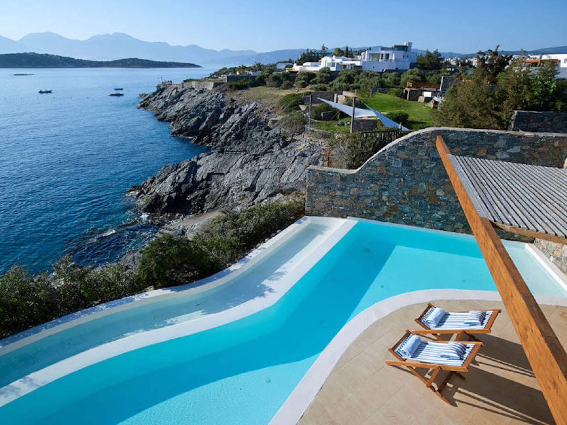 Graciosamente encaramado en una maravillosa ubicación frente al mar de la isla de Creta en Grecia, con vistas a los siempre cambiantes tonos azules y verdes de la bahía de Mirabello, Thalassa Suites Lasithi le invita a descubrir un remanso de privacidad y belleza. Ocho lujosas villas privadas adyacentes al St. Nicolas Bay Resort Hotel, con una ubicación ideal cerca del pintoresco puerto de Agios Nikolaos, en el camino a Elounda, que prometen unas vacaciones en villas de ensueño e inolvidables en Creta.