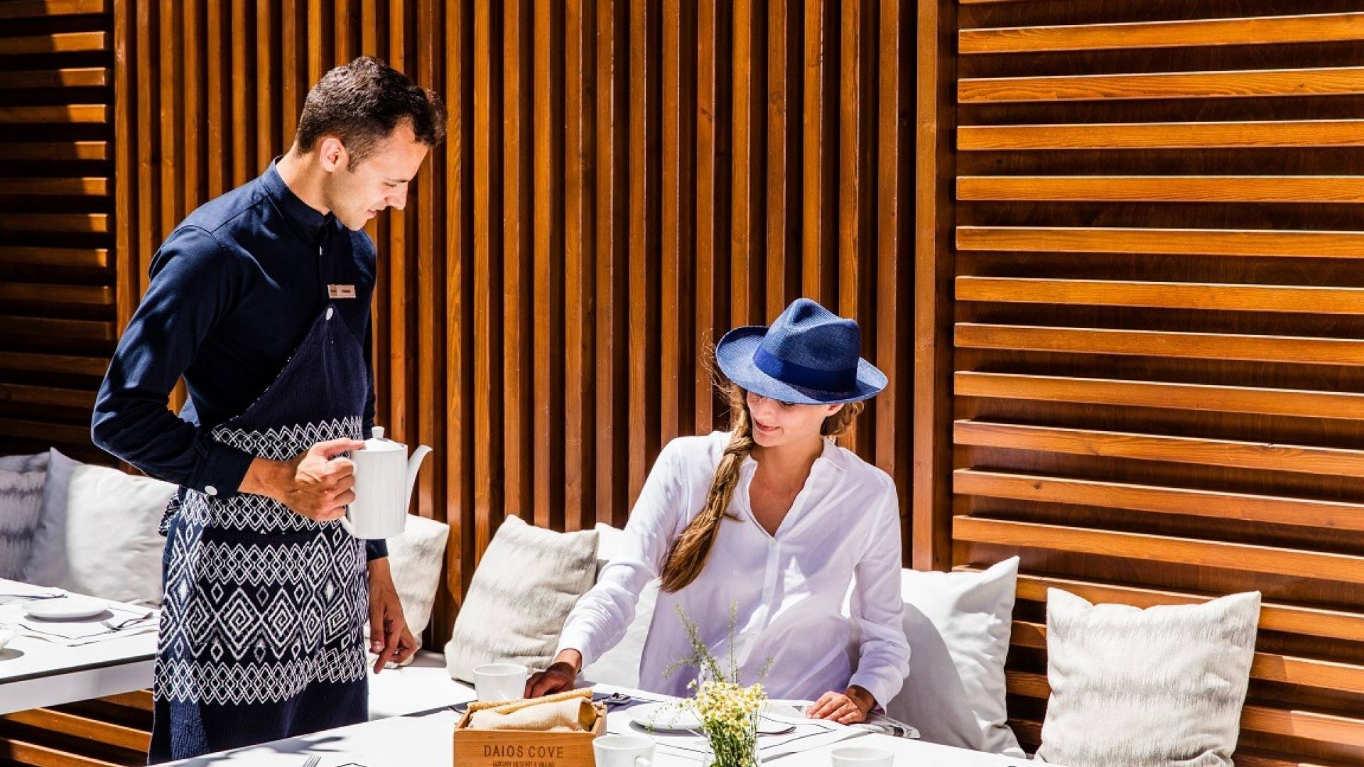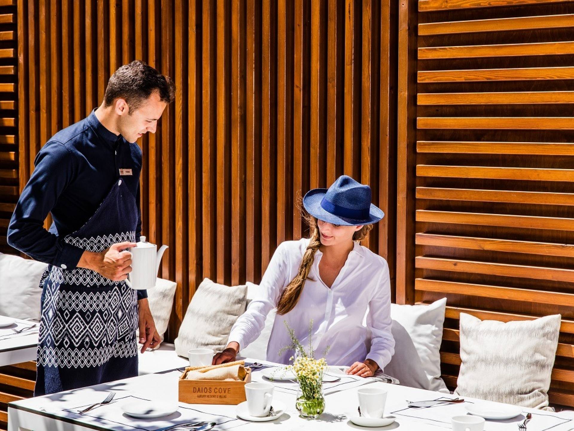 La atención al detalle y la estética exquisita juegan un papel integral en la filosofía de Daios Cove. El vestíbulo lleno de sol, por ejemplo, con sus obras de arte cuidadosamente seleccionadas y colocadas junto con el mobiliario contemporáneo resaltan el diseño ecléctico y llamativo del complejo. Daios Cove también ofrece una experiencia gastronómica excepcional en los 6 restaurantes y bares, donde podrá saborear de todo, desde exquisitos platos de la nueva cocina hasta delicias tradicionales con un toque moderno. Daios Cove Luxury Resort & Villas le da la bienvenida a vivir las vacaciones de su vida.