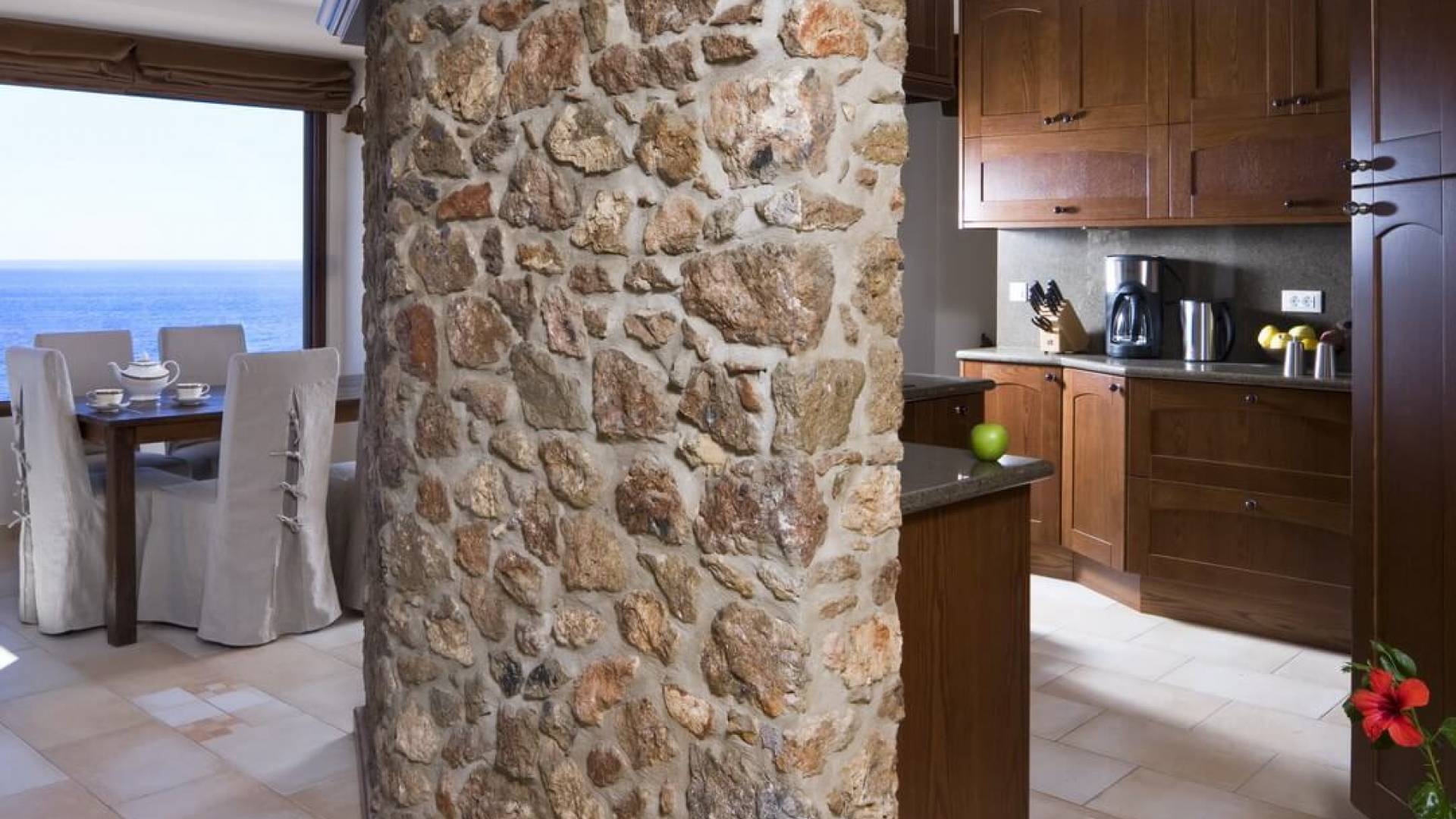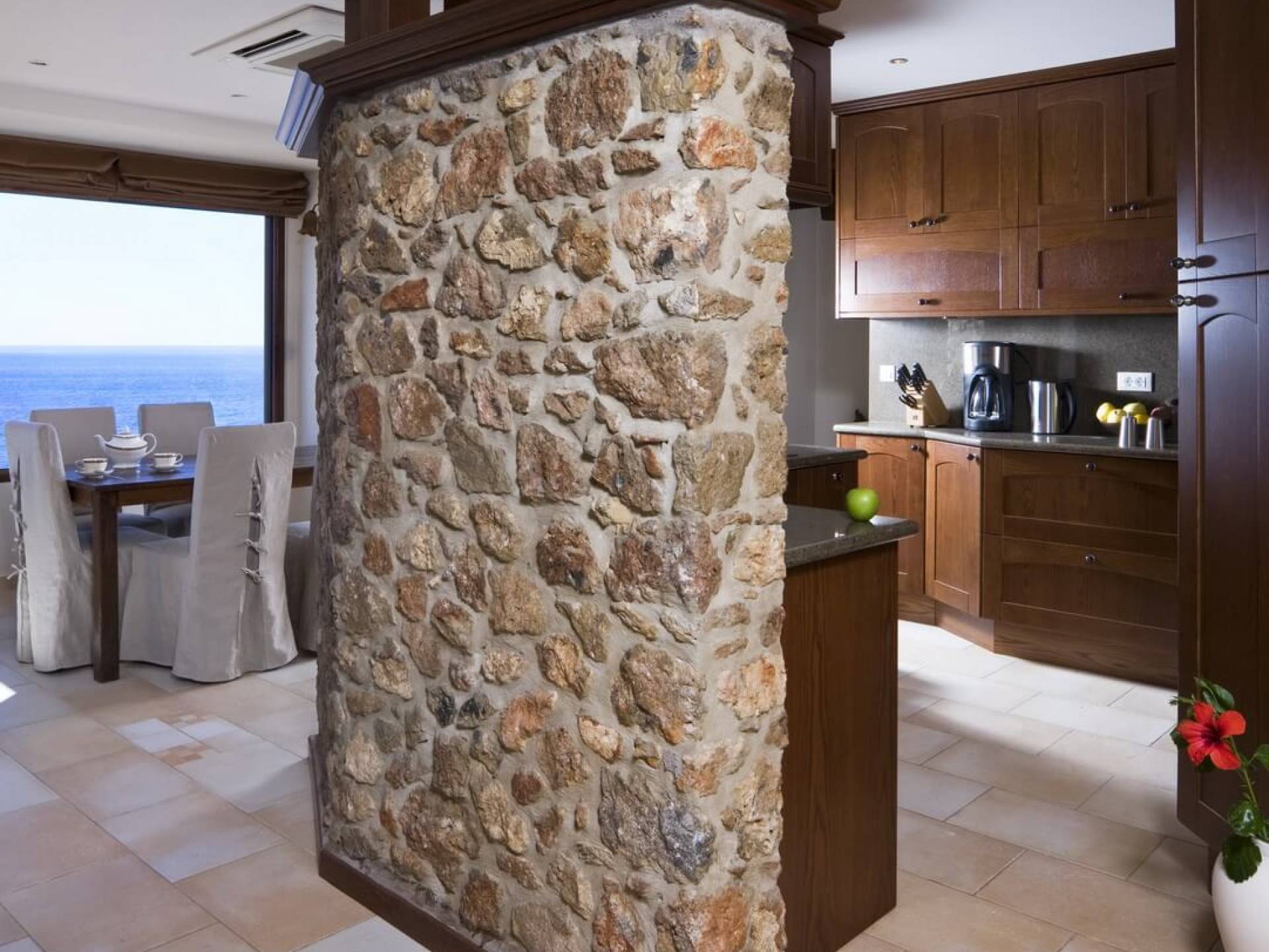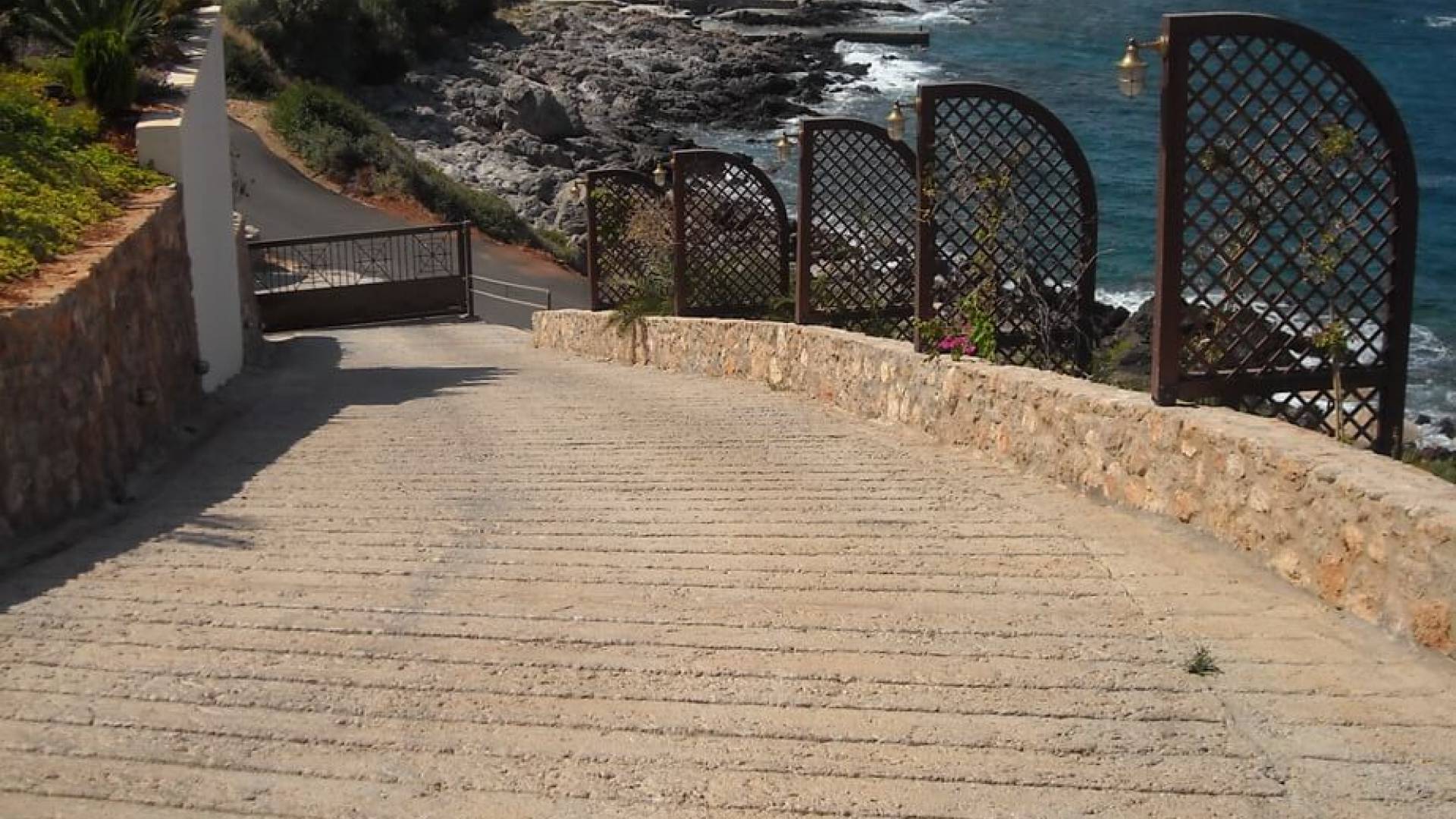 La decoración es una combinación fantástica de diseño moderno con estilo típico cretense. Villa consta de 3 pisos cada uno con su propio dormitorio, sala, comedor y cocina. La villa proporciona todo el equipamiento doméstico necesario. En el patio hay una piscina climatizada desde la que se puede ver el golfo de Mirabello, un jacuzzi y un bar en el patio. Un encantador cenador proporciona sombra a la cómoda mesa al aire libre y puede sentir la brisa fresca del mar. Solo necesita dar unos pasos hasta el agua y la playa designada del complejo.