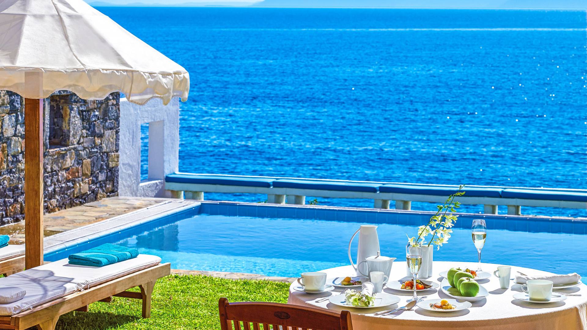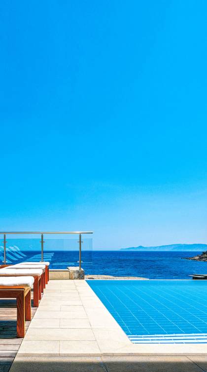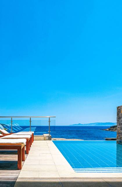 El Elounda Peninsula All Suite Hotel es el hotel más exclusivo de Grecia. Con una ubicación única en un tramo de tierra peninsular, domina la bahía de Mirabello y la extensión del mar Egeo. La vista es azul hasta donde alcanza la vista. Se llega al Elounda Peninsula All Suite Hotel por un camino privado que conduce a la sala de estar en el último piso. Sus amplias terrazas te hacen sentir como si estuvieras en el puente de mando de un buque insignia.