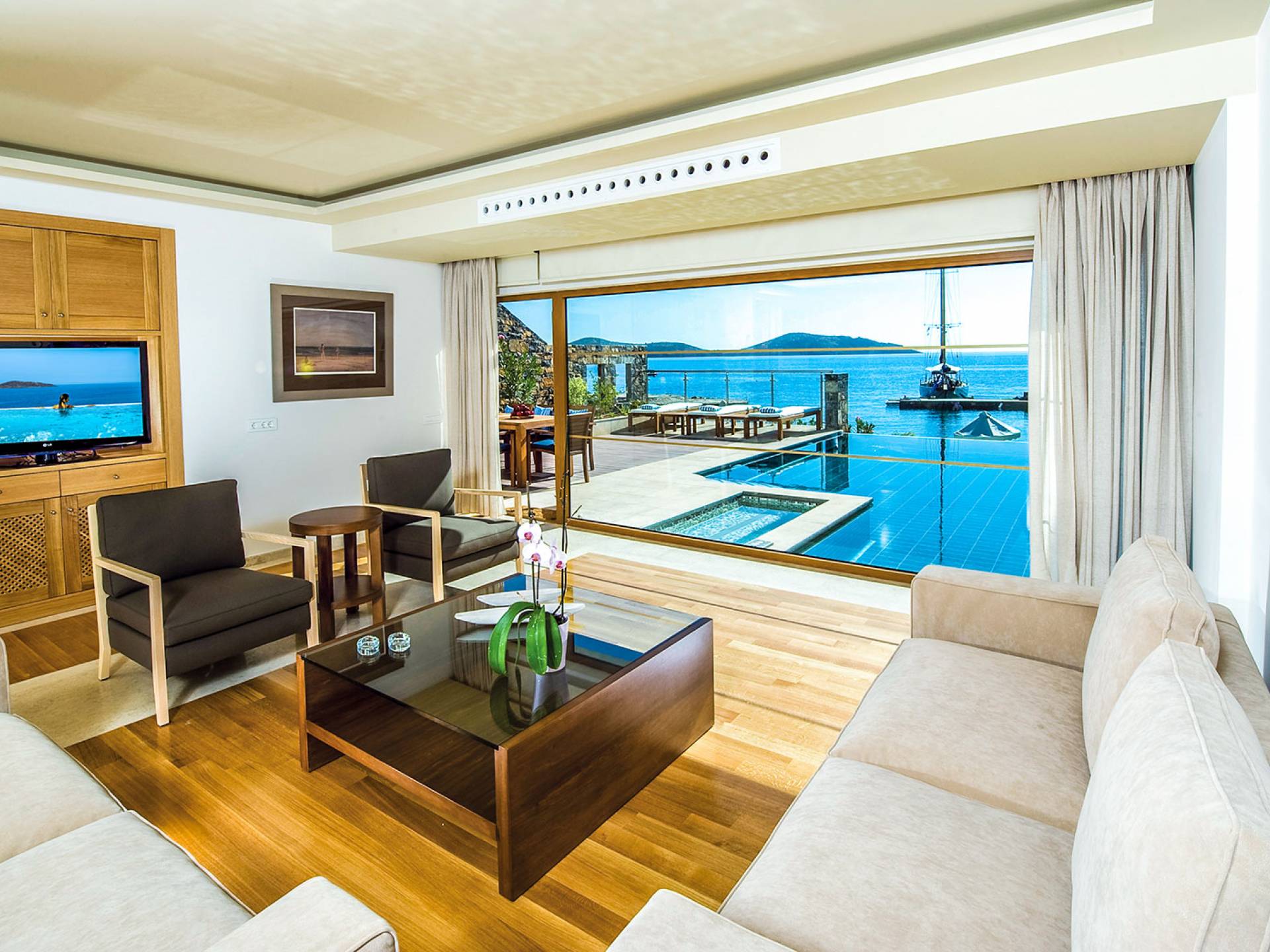 El Elounda Peninsula All Suite Hotel ofrece alojamiento excepcionalmente excepcional, diseñado y amueblado con los más altos estándares, proporcionando un ambiente verdaderamente lujoso. Todos los alojamientos tienen una vista ininterrumpida de la fascinante bahía de Mirabello y la piscina de agua de mar climatizada individual lleva la talasoterapia directamente a su terraza.
