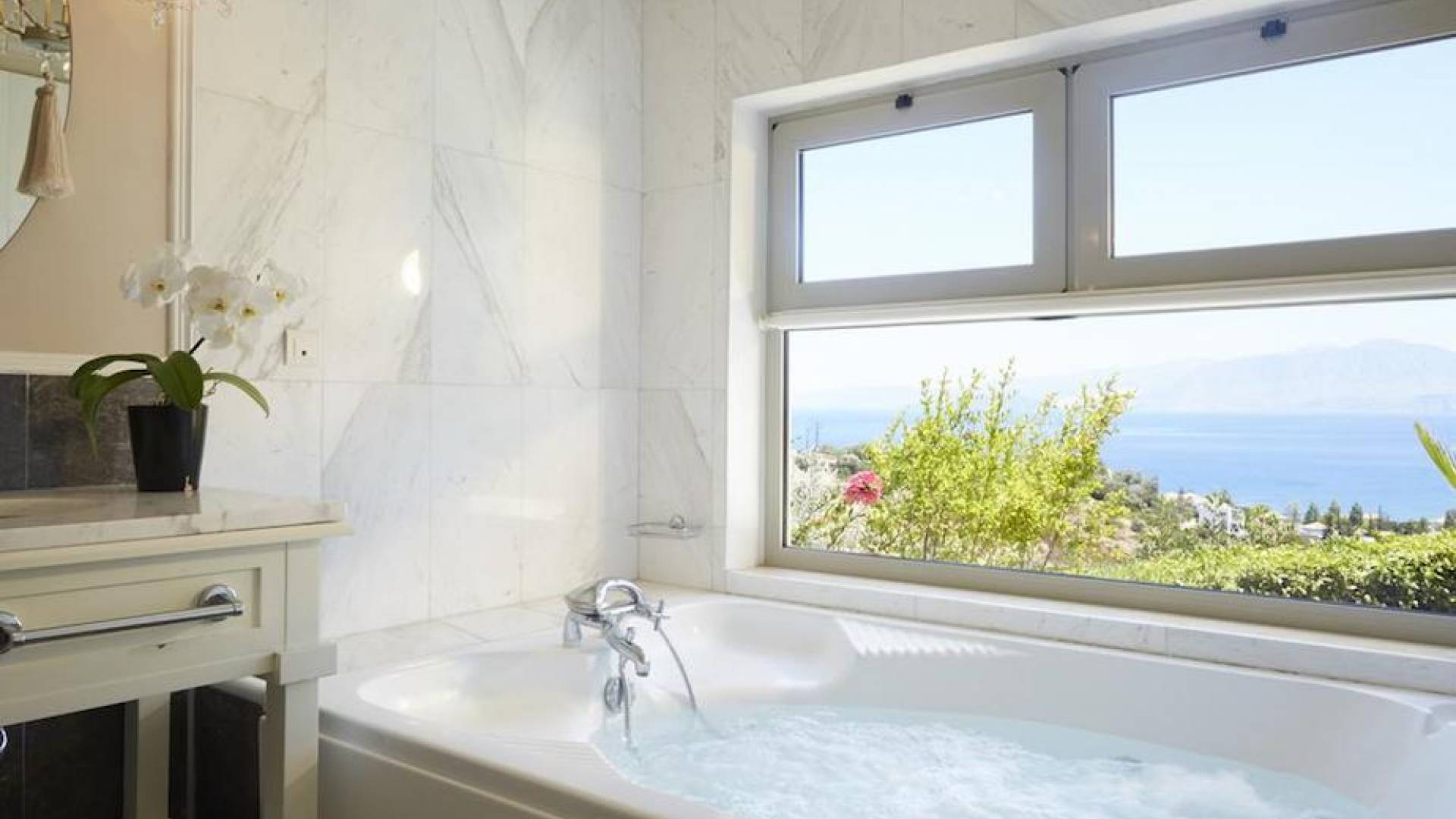 La belleza natural es impresionante — rodeada de colinas suaves y olivares, la zona ofrece vistas panorámicas a la bahía de Mirabello, especialmente mágicas al amanecer o al atardecer desde la terraza de una villa.