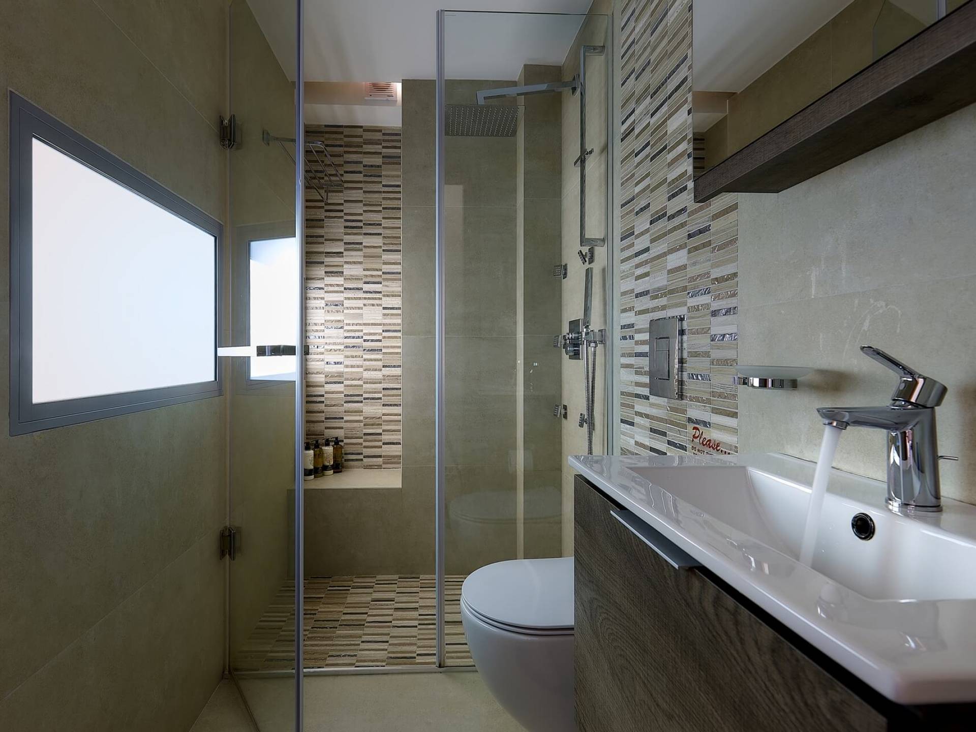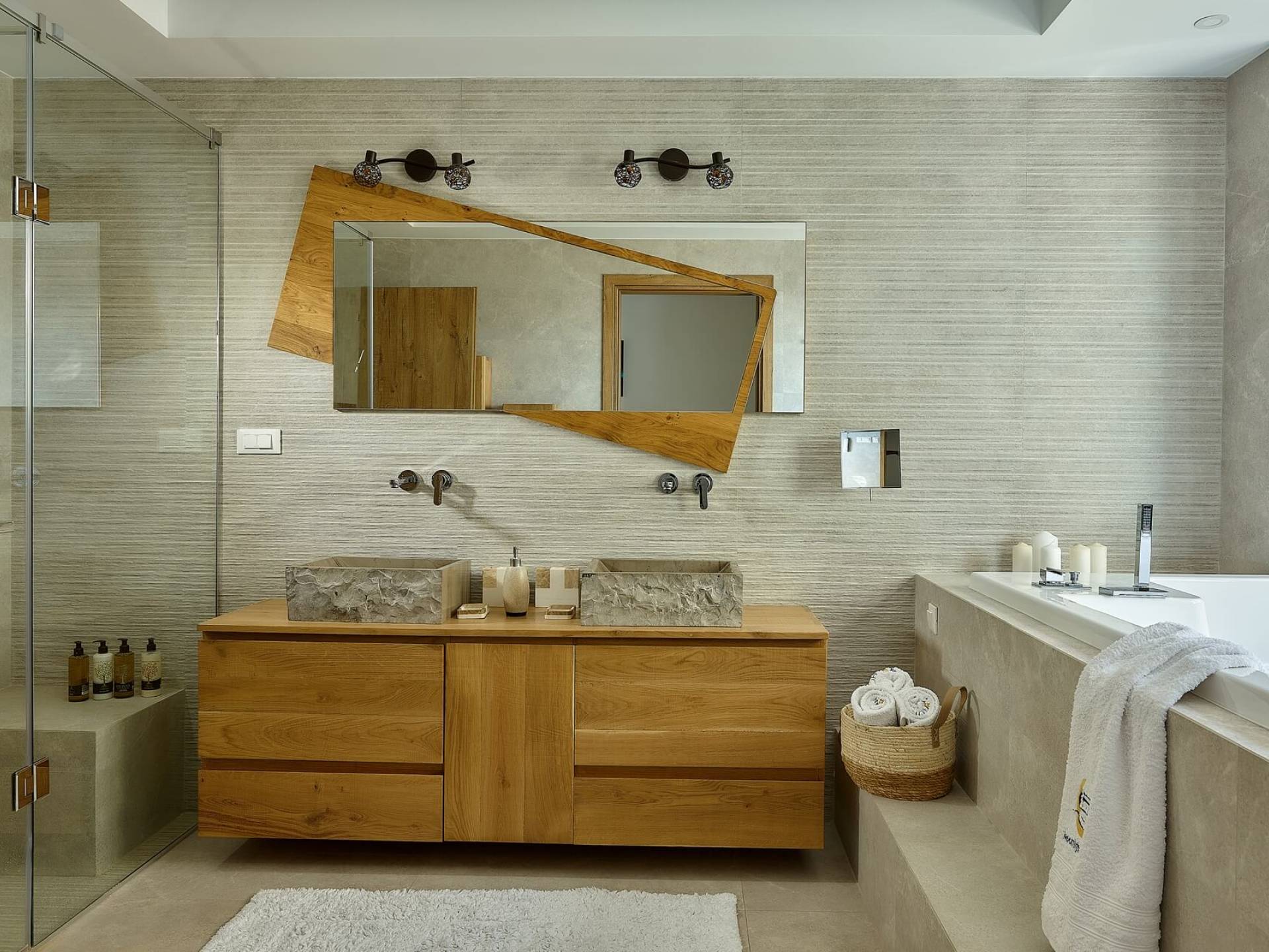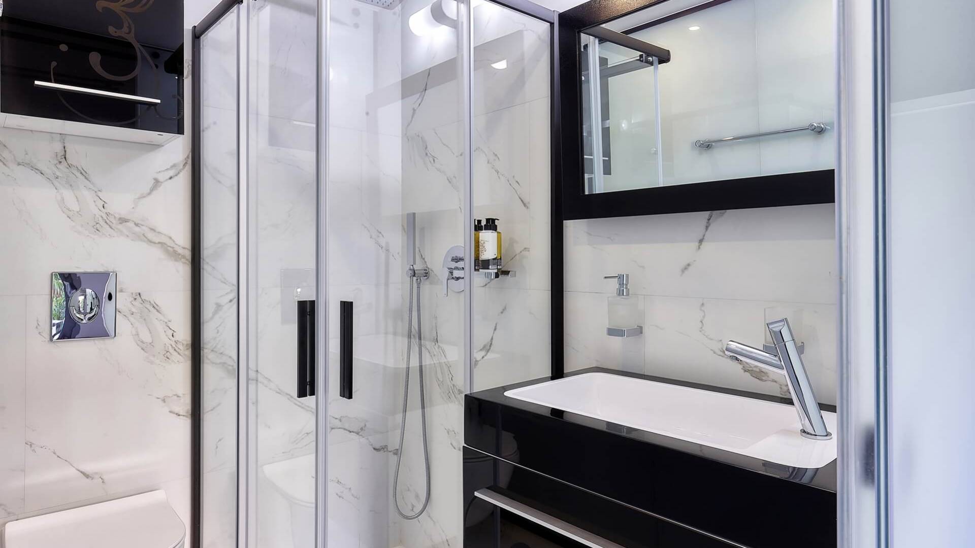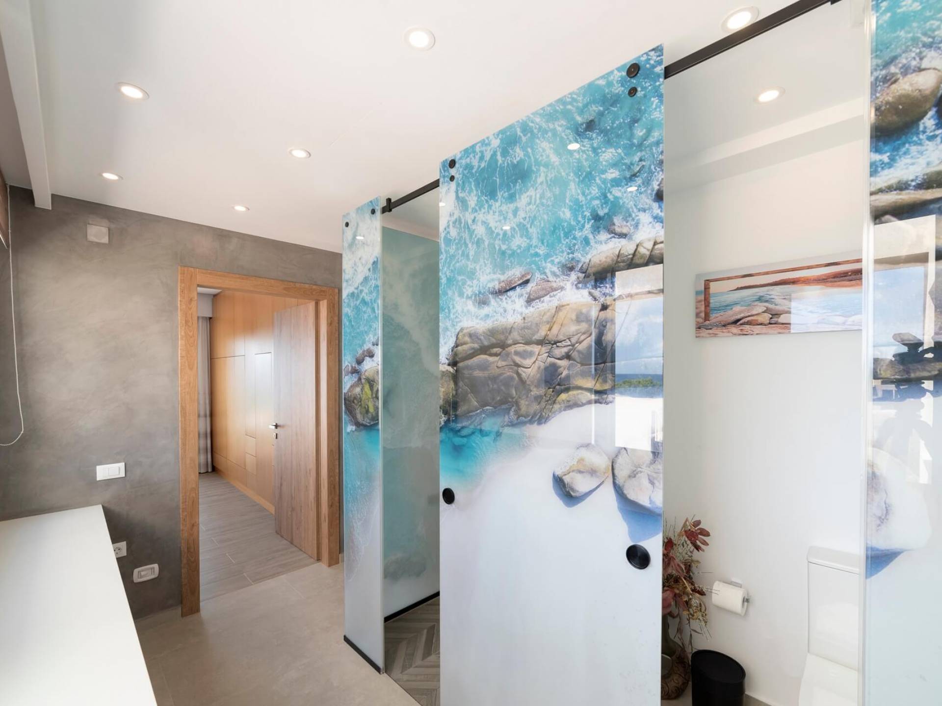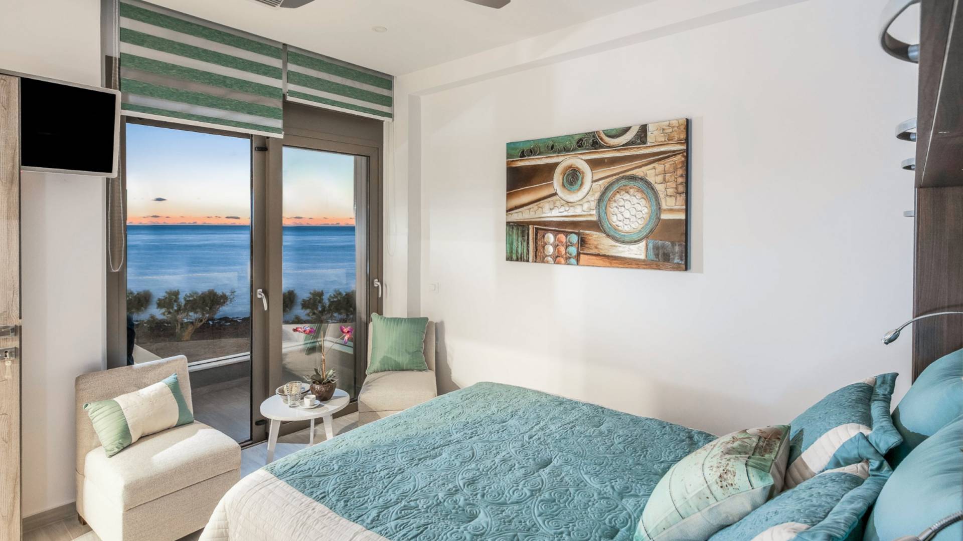 El complejo Moonlight Villas Crete consta de 9 dormitorios, 3 salas de estar, 4 cocinas de planta abierta totalmente equipadas y 7 baños completos. El baño principal de la villa más grande, Europa, tiene duchas con hidromasaje y un jacuzzi interior con cromoterapia y vista al mar. Los 8 dormitorios bellamente decorados y los 3 sofás cama de la sala de estar están equipados con ropa de cama, colchones y ropa de cama de primera calidad. Todas las camas dobles y extragrandes ofrecen colchones y colchones superiores de la empresa griega ecológica Cocomat. Dos baños (uno en el piso superior, el otro en el piso de la piscina) son accesibles para discapacitados y hay un ascensor que conduce al piso superior.
