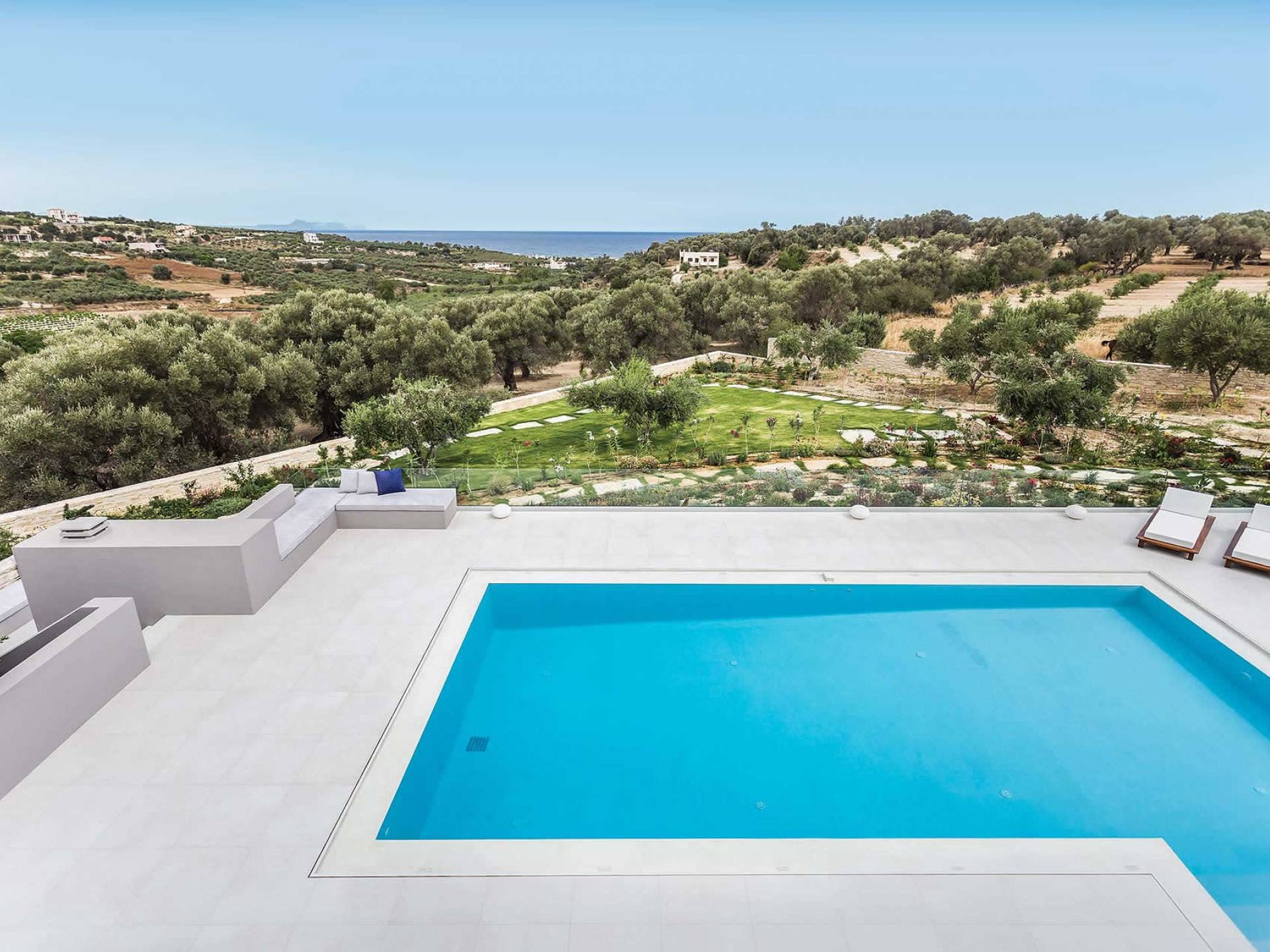 Villa White Grace Rethymno es una villa de lujo en alquiler con 5 dormitorios y piscina privada. Descansando en un maravilloso acantilado en el corazón del norte de Creta, Villa White Grace Rethymno atrae a los viajeros del mundo a un reino seductor de placeres sensuales. Un reino de clase y estilo sin pretensiones, que combina a la perfección los elementos de la tradición cretense con las limpias líneas blancas de la gracia mínima, el azul milagroso del mar Egeo y la noción de lujo elegante descalzo. La villa real de 5 dormitorios cerca de Rethymno evoca una sensación de absoluta felicidad y propone una escapada a un mundo de lujo y serenidad.