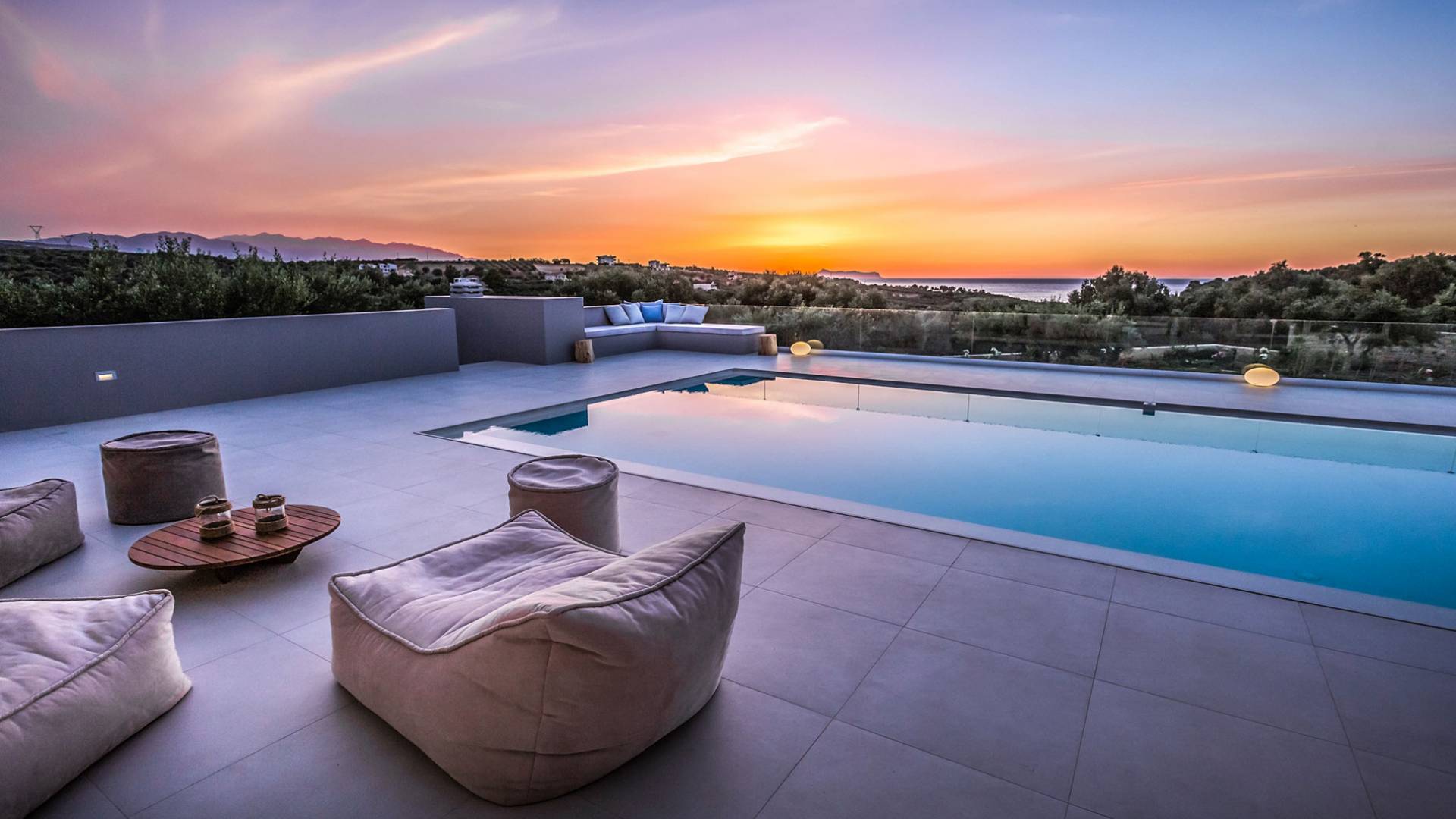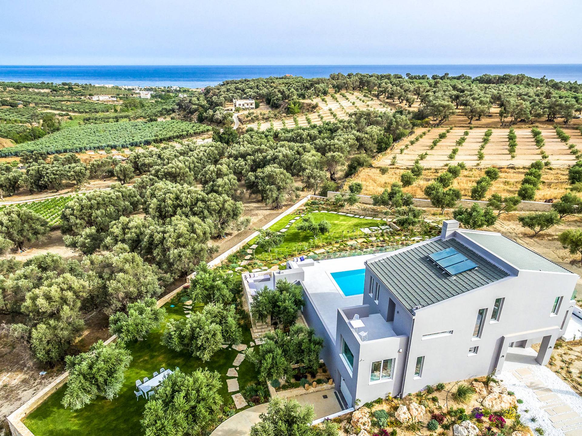Ubicado en una parcela de 4500 metros cuadrados, construido en 2016, a 1 km de las playas de arena dorada y a 9 km del fascinante casco antiguo de Rethymno, perdido en un paraíso de olivares, palmeras y jardines etéreos.
