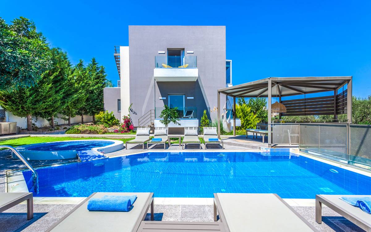 La lujosa Villa Kastellakia Rethymno, con su diseño y estética excepcionales, ofrece instalaciones y servicios de alta calidad para aquellos que prefieren pasar unas vacaciones idílicas en un entorno verde.