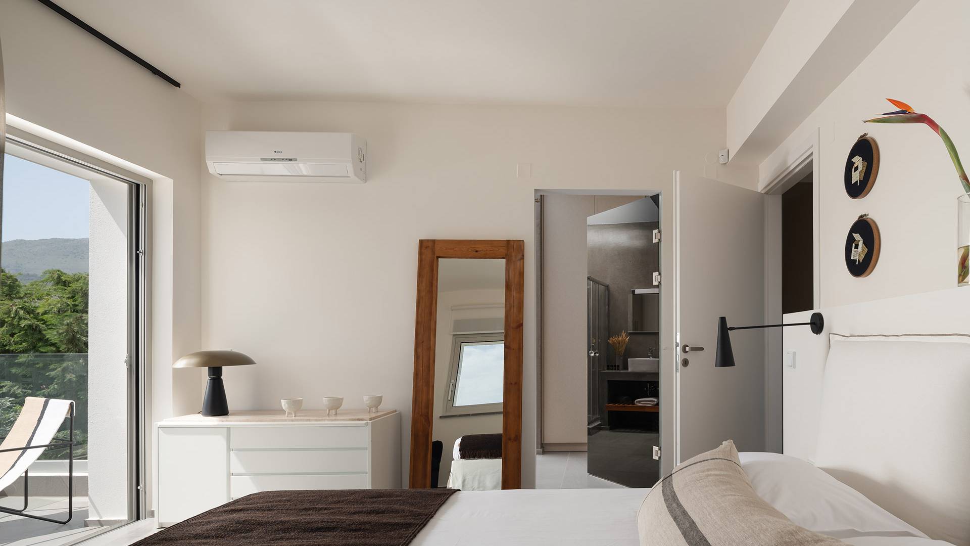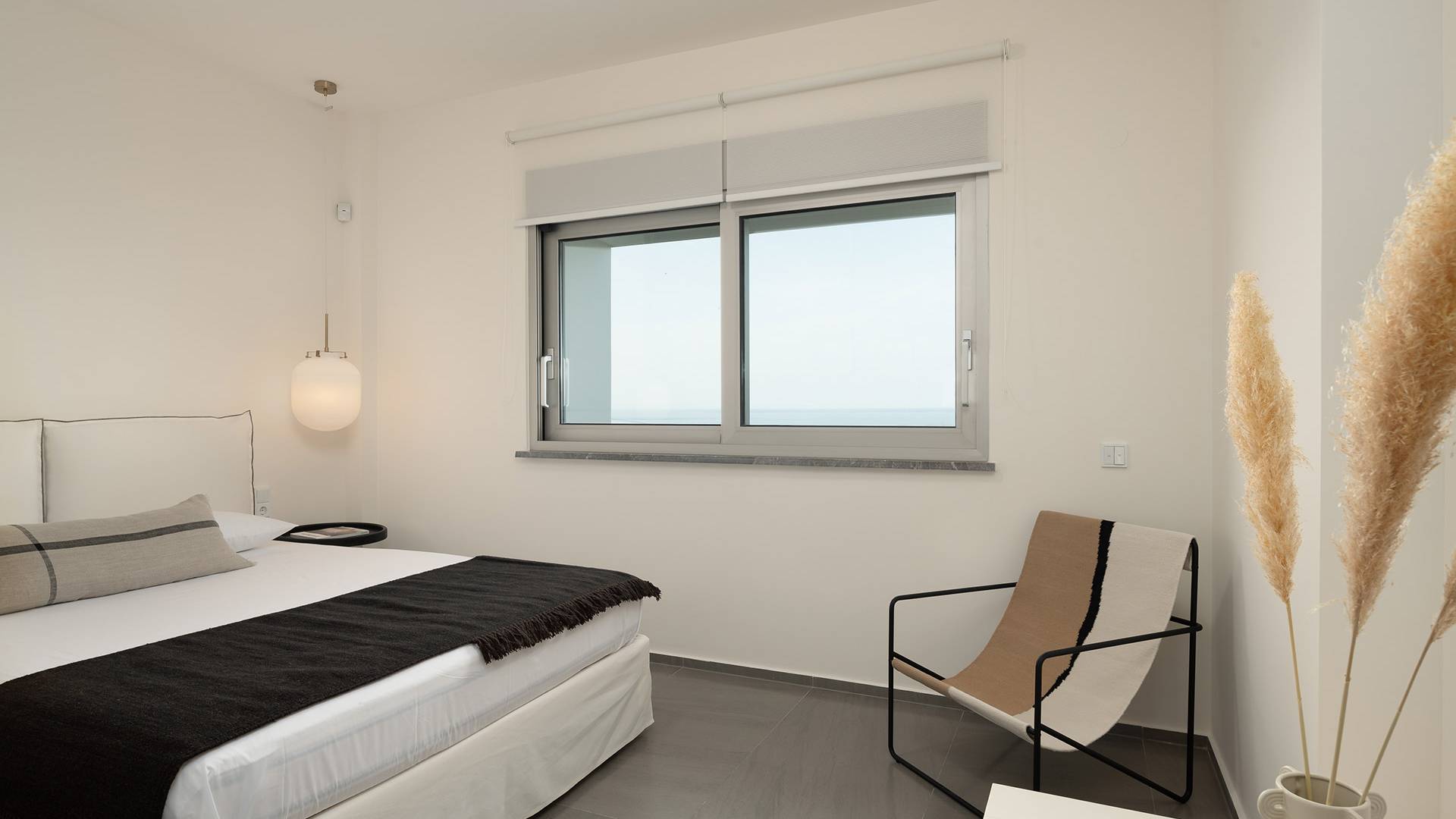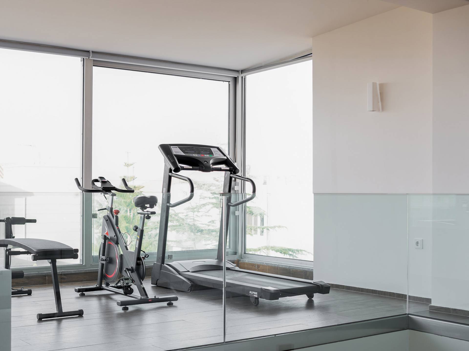 Al llegar al primer piso desde las escaleras, hay un salón con vista al mar que contiene un jacuzzi y equipo de gimnasio. En el lado derecho, encontrará el dormitorio principal con una cama doble que también tiene un baño en suite con cabina de ducha. Dos dormitorios más, uno con cama de matrimonio y otro con dos camas individuales, y el baño principal se encuentra en el mismo piso. Todas las habitaciones ofrecen balcón, aire acondicionado, grandes armarios y mosquiteros en las ventanas. Finalmente, en el primer piso, hay un cuarto de lavado con lavadora y secadora.