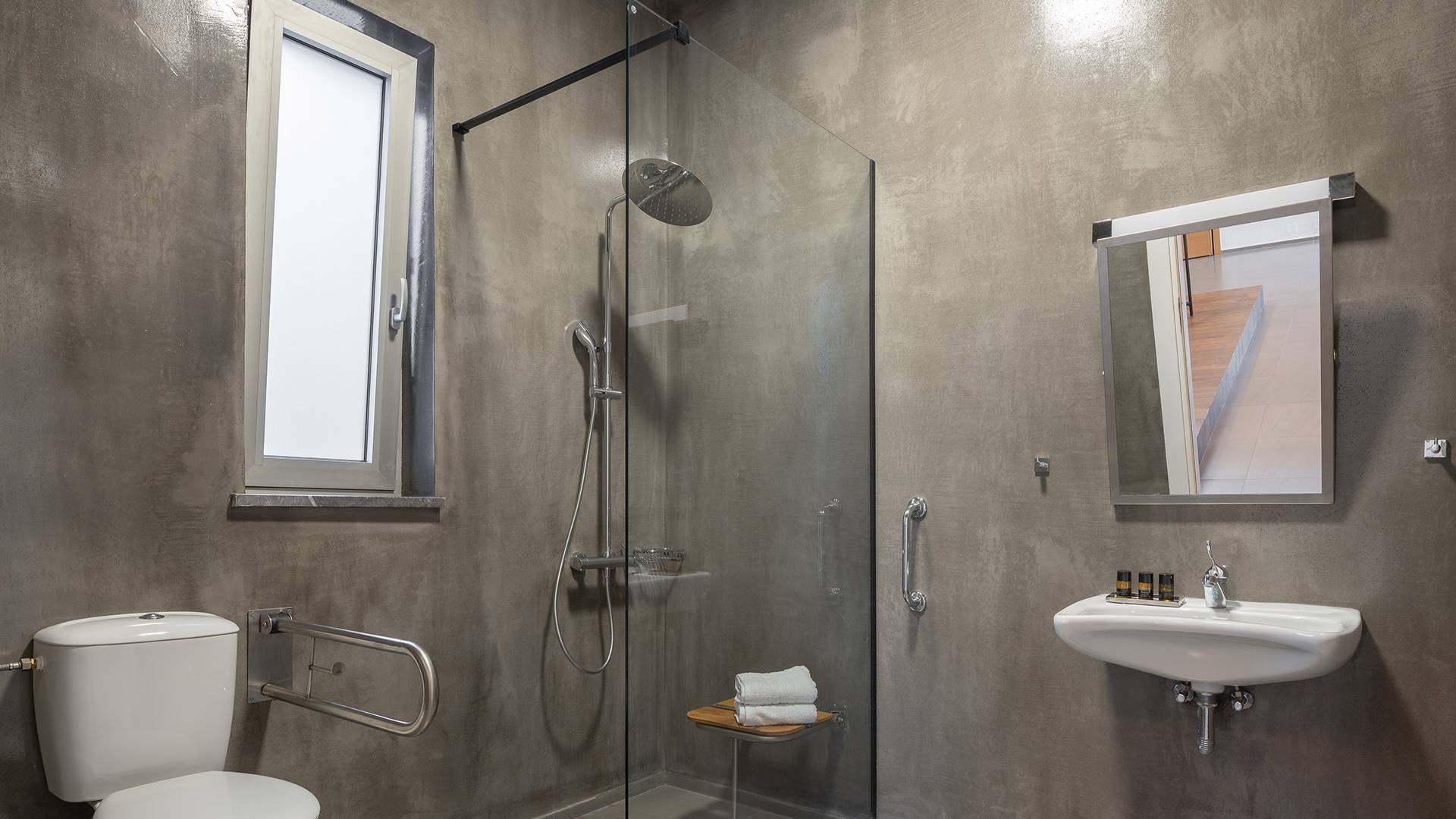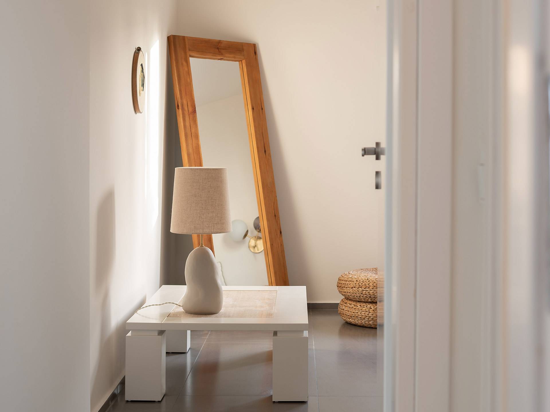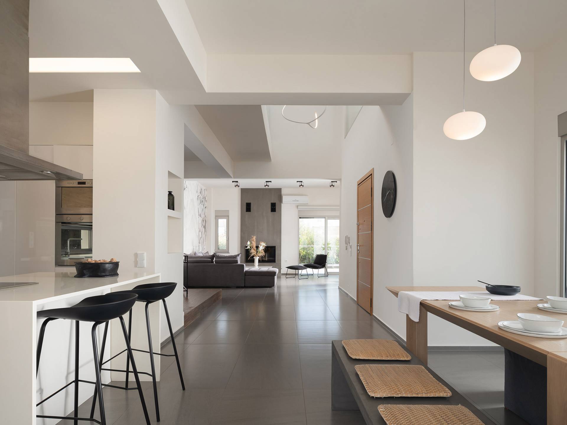Diseñada y amueblada con estilos minimalistas, la villa de dos pisos tiene capacidad para 8 personas en camas y hasta 10 personas si es necesario. Al ingresar a Kastellakia Villa Rethymno en la planta baja, hay una amplia área de planta abierta que consta de una sala de estar con chimenea y un televisor de alta definición de 42 pulgadas, además de un reproductor de DVD y Nintendo Wii, un espacio de oficina con un escritorio, un comedor interior y una sala modular. Cocina totalmente equipada con accesorios y electrodomésticos de primera calidad más una mesada de granito. Desde la sala de estar, hay acceso directo a la terraza principal, la zona de la piscina y el jardín. En la misma planta, hay un baño completo con ducha y un dormitorio doble que también están diseñados con todas las especificaciones para ser accesibles en silla de ruedas.