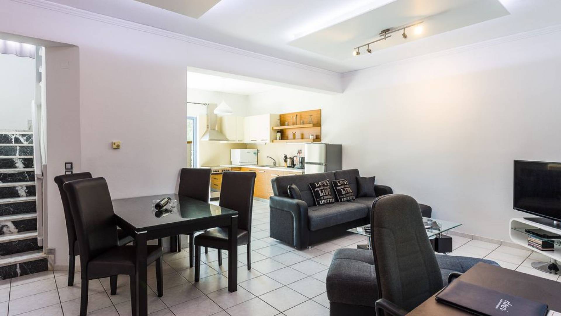 Anna Villa Rethymno es una villa de dos pisos de 75 m² con 1 dormitorio y puede acomodar a 3 personas en camas y hasta 5 personas si es necesario. Al ingresar a Anna Villa Rethymno en la planta baja, hay un área espaciosa de planta abierta que consta de la sala de estar con un televisor inteligente de 50 ”, el comedor interior y una cocina totalmente equipada con accesorios de primera calidad. Desde el área de la cocina, hay acceso directo al jardín y al área de la piscina.